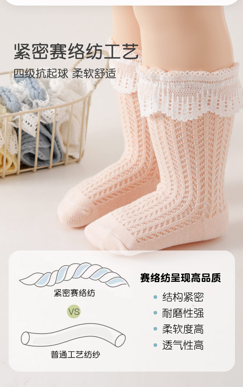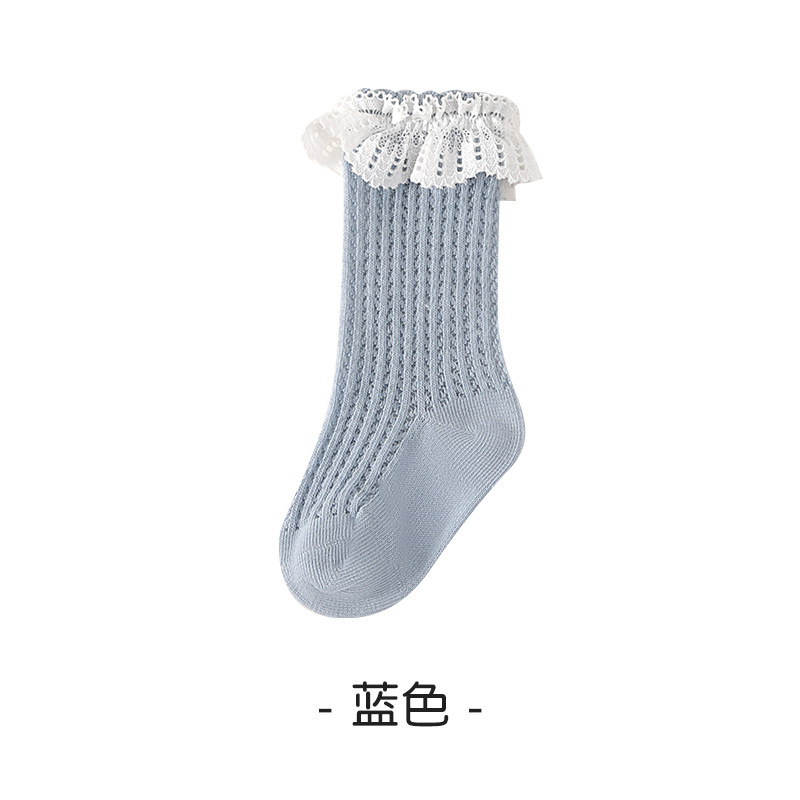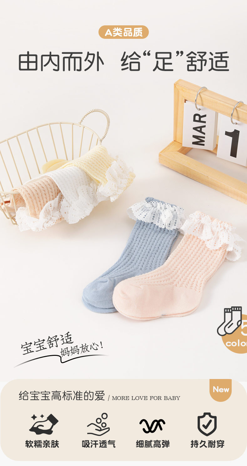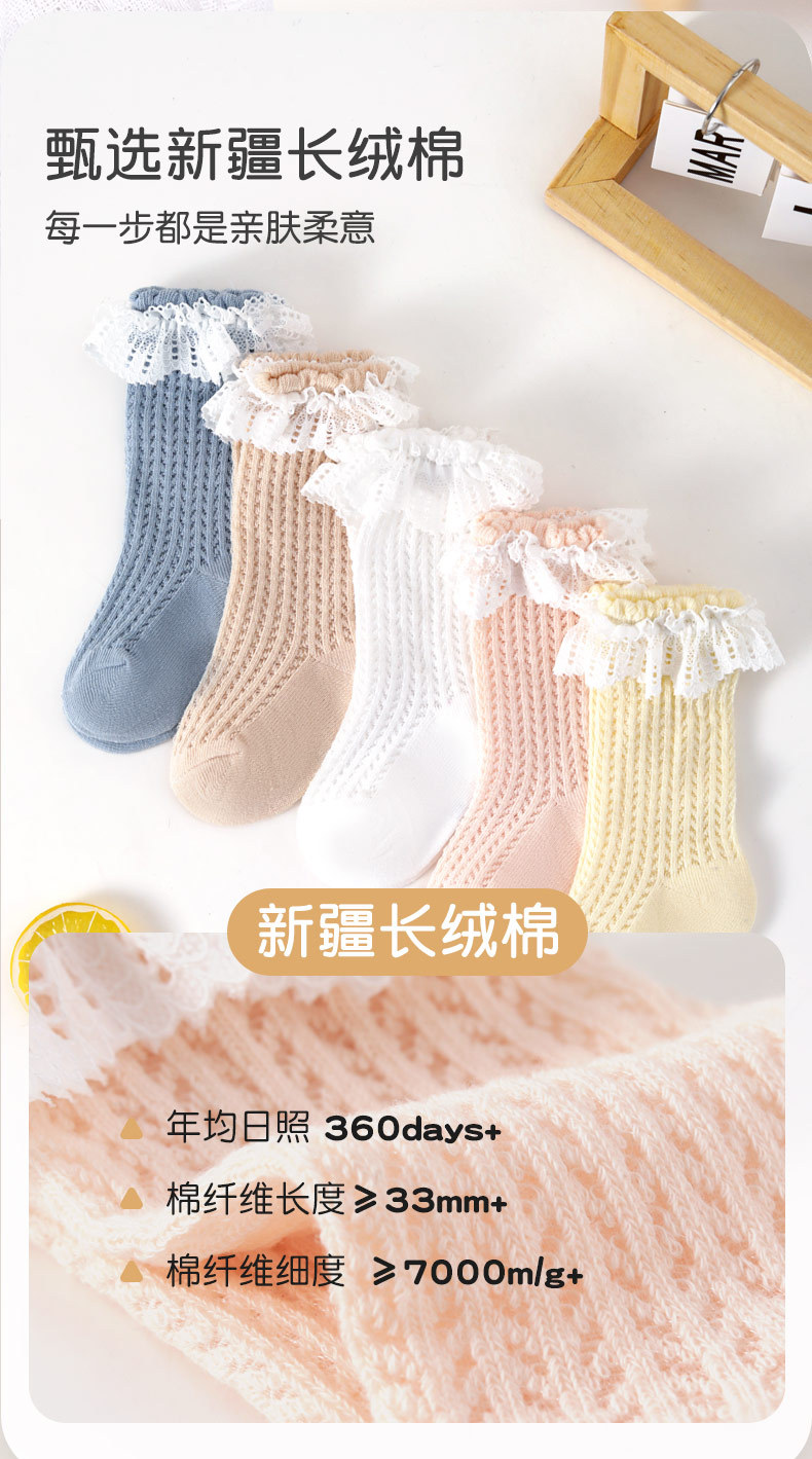 여름과 가을 큰 메쉬 레이스 아기 양말 얇은 통기성 귀여운 공주 스타일 아기 면 양말 높은 튜브 어린이 양말