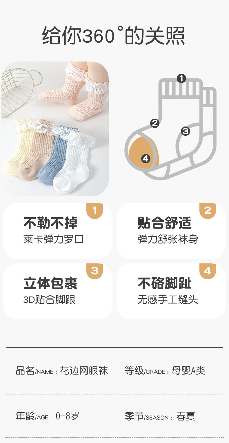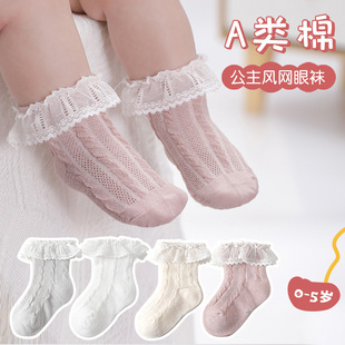 여름과 가을 큰 메쉬 레이스 아기 양말 얇은 통기성 귀여운 공주 스타일 아기 면 양말 높은 튜브 어린이 양말스토어 가기