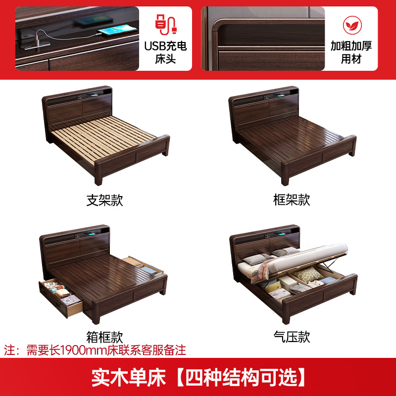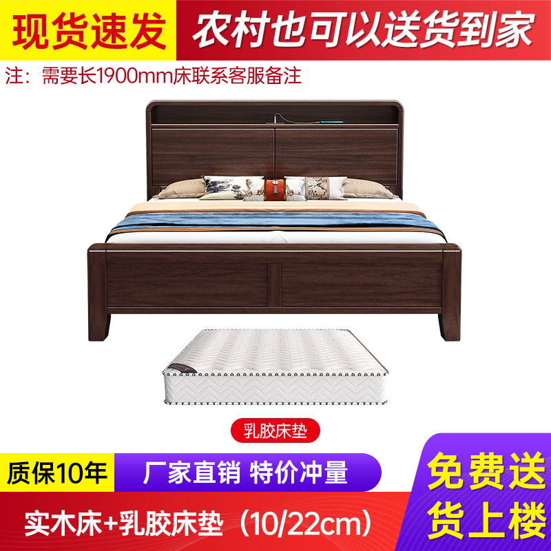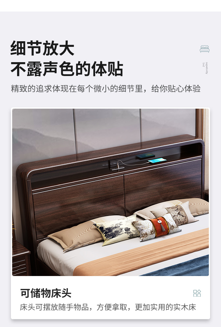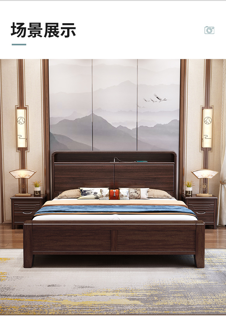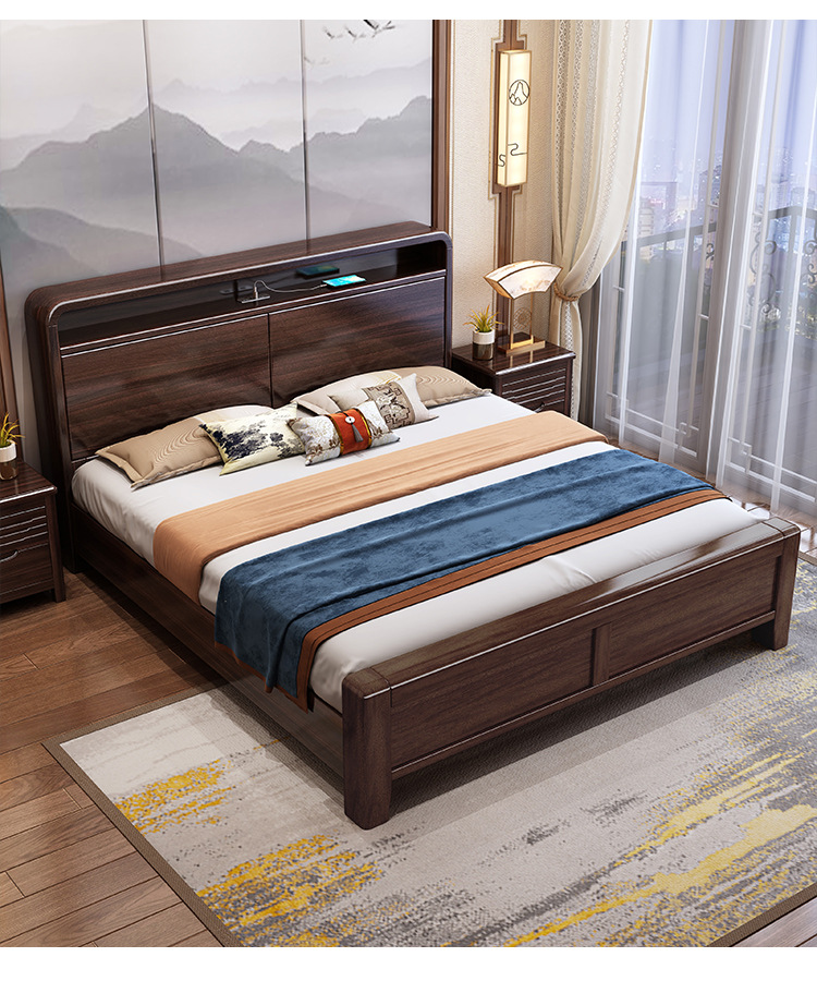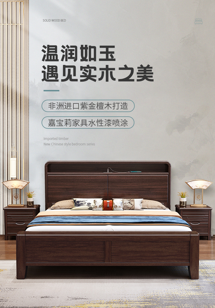 새로운 중국 스타일의 퍼플 골드 샌달 우드 솔리드 우드 침대 현대 간단한 1.8 m 더블 침대 두꺼운 충전식 1.5 m 저장 침대스토어 가기
