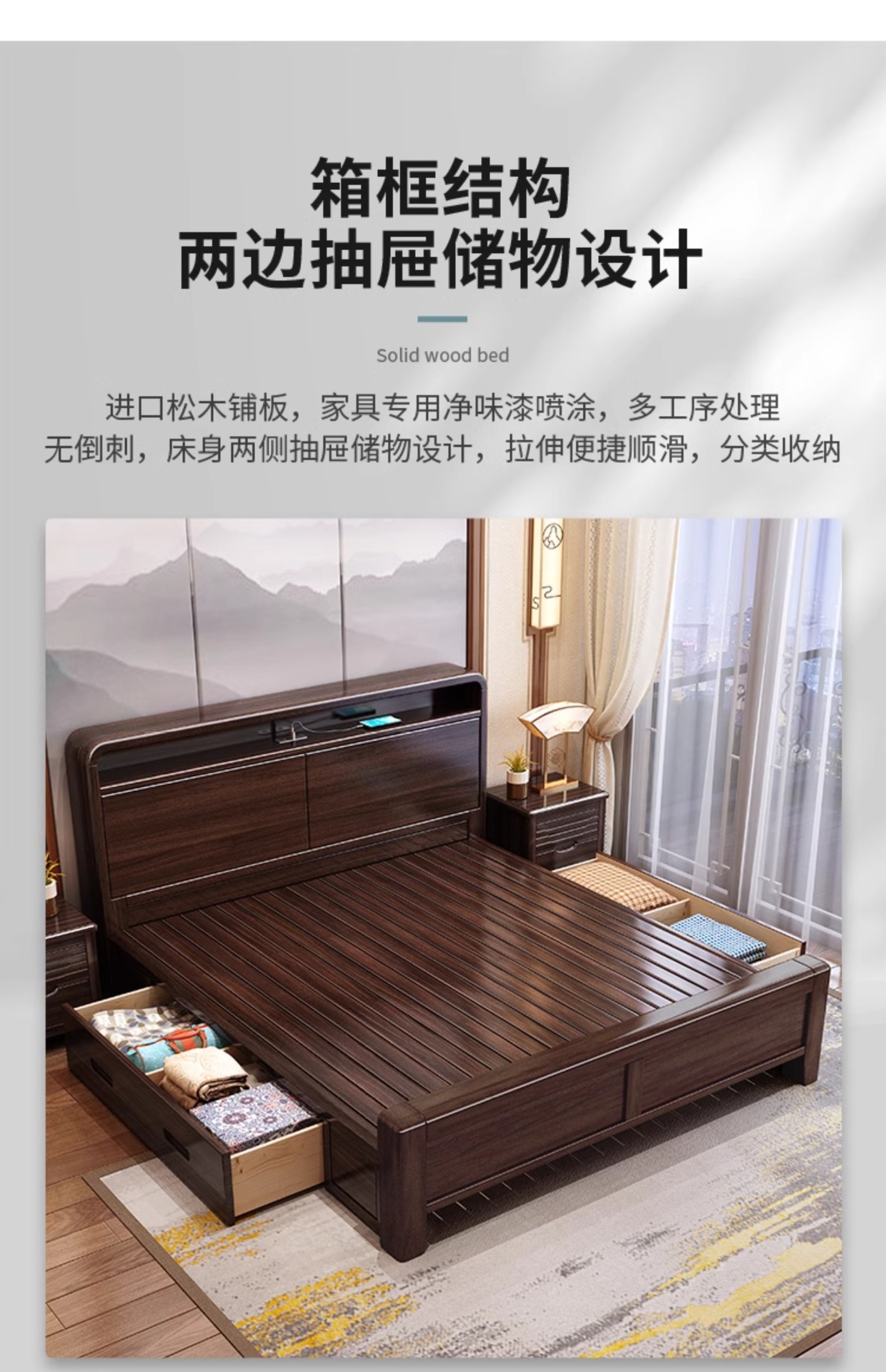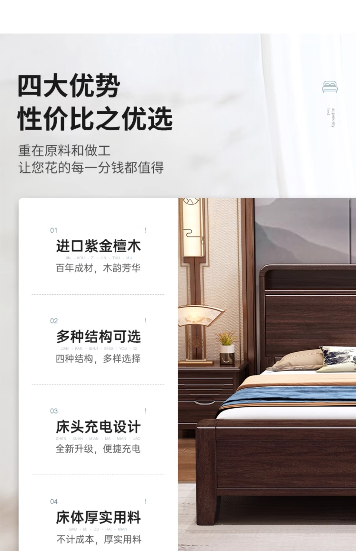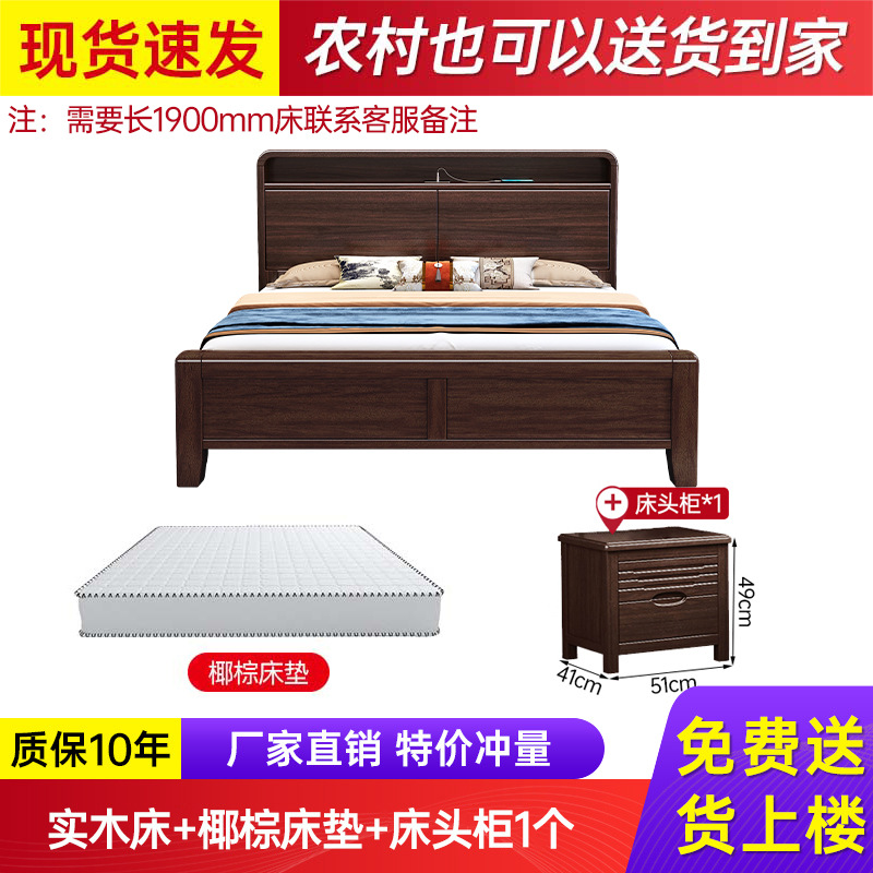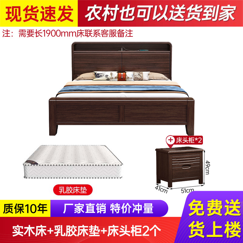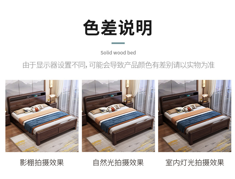 새로운 중국 스타일의 퍼플 골드 샌달 우드 솔리드 우드 침대 현대 간단한 1.8 m 더블 침대 두꺼운 충전식 1.5 m 저장 침대스토어 가기