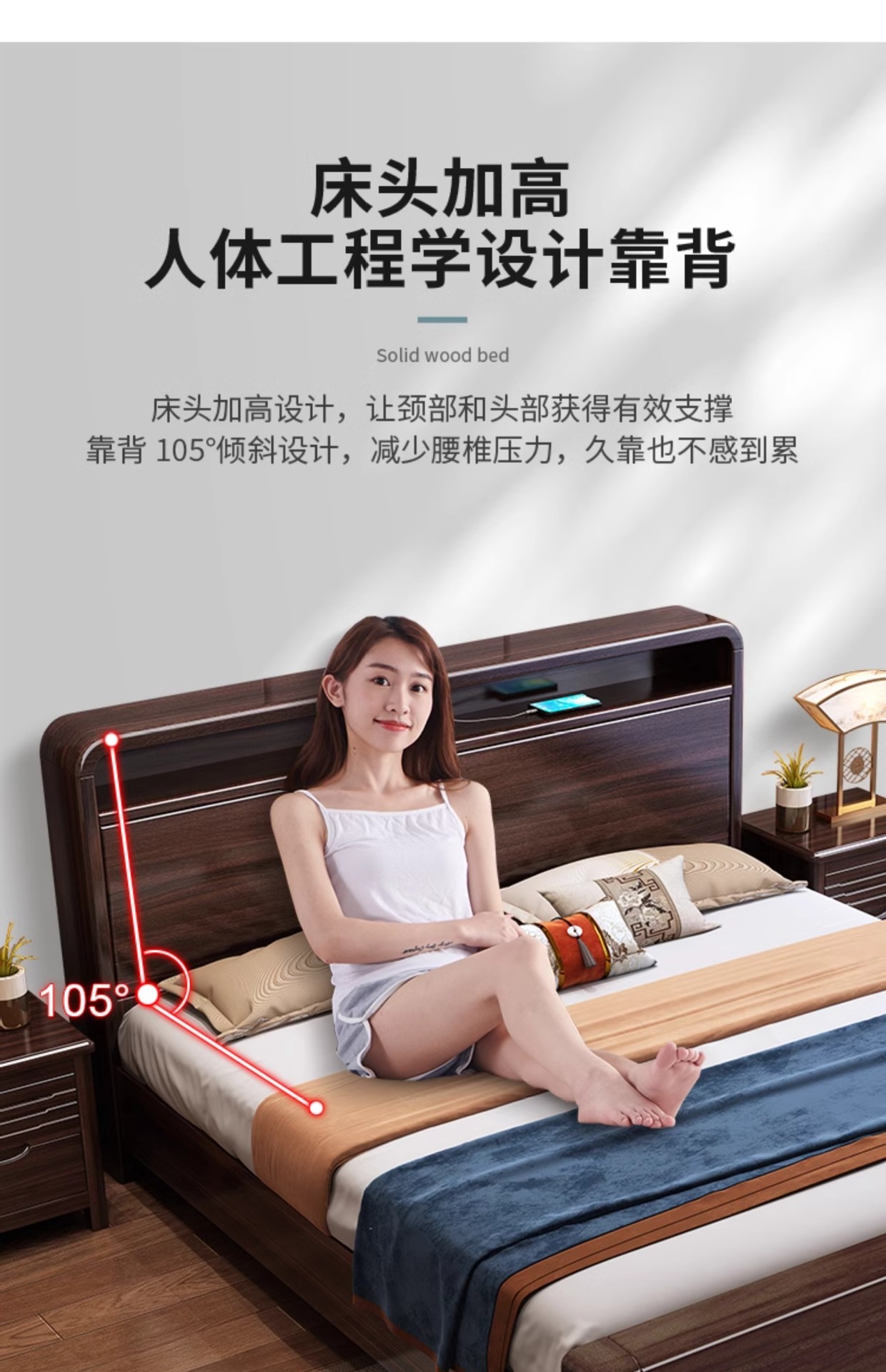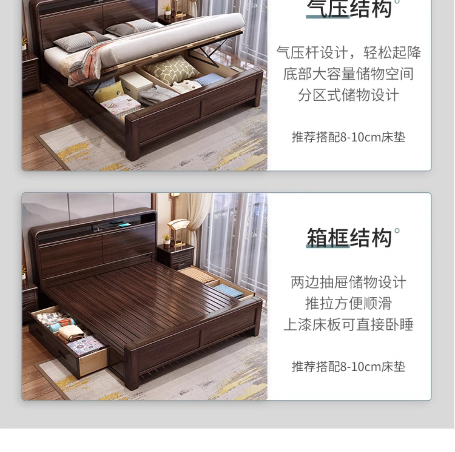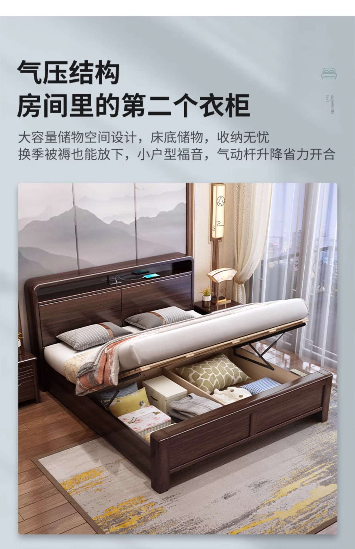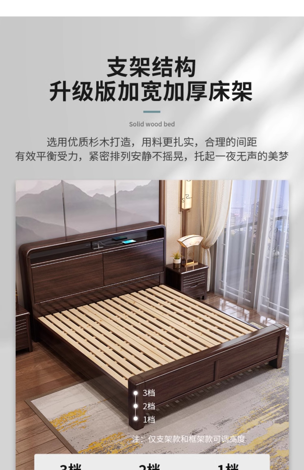 새로운 중국 스타일의 퍼플 골드 샌달 우드 솔리드 우드 침대 현대 간단한 1.8 m 더블 침대 두꺼운 충전식 1.5 m 저장 침대스토어 가기