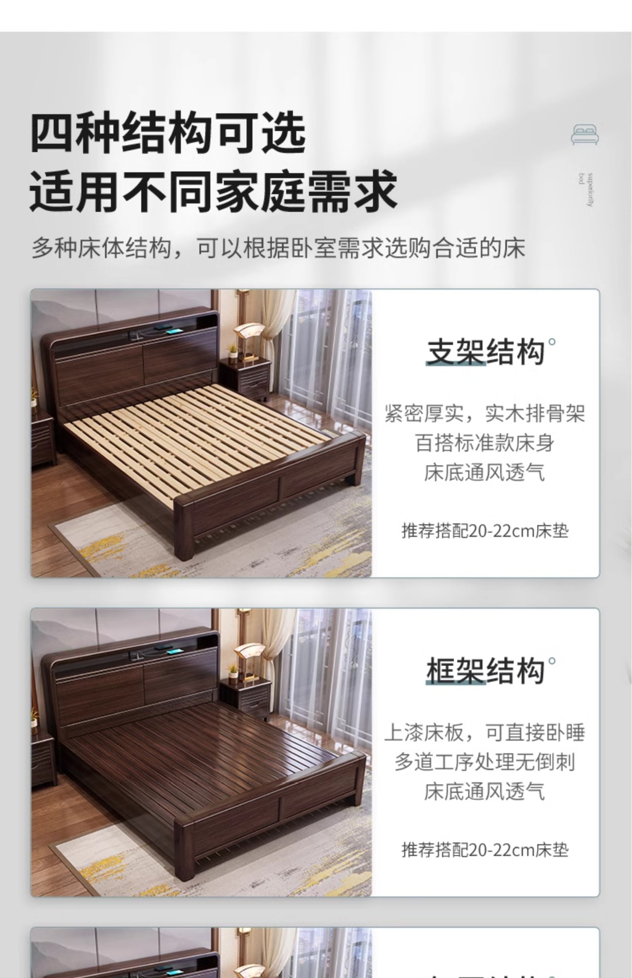 • [레드 골드 샌달우드] 침대 + 코코넛 야자 매트리스 + 침대 옆 탁자 2개