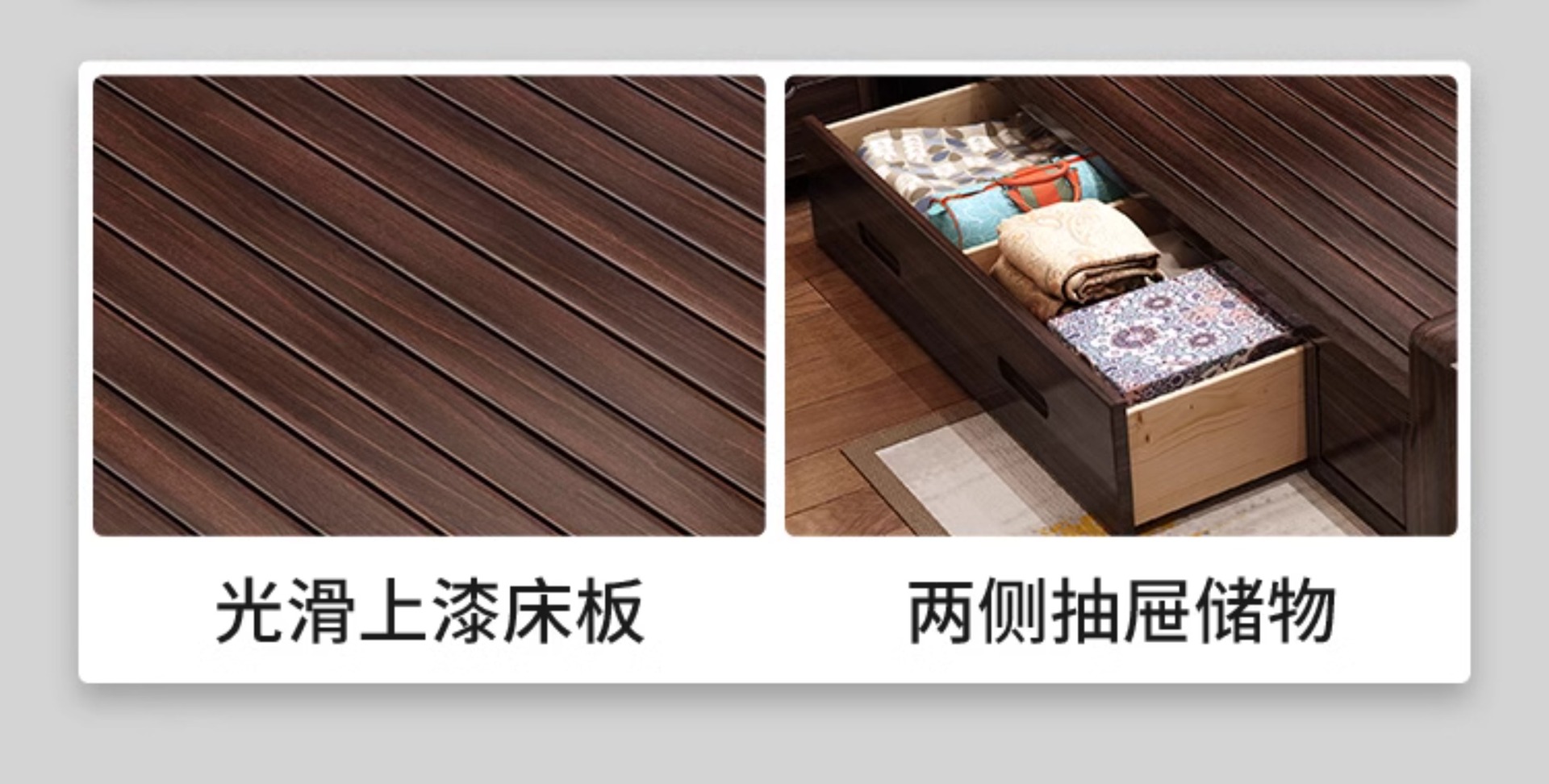 • [레드 골드 샌달우드] 원목 침대 + 침대협탁 2개