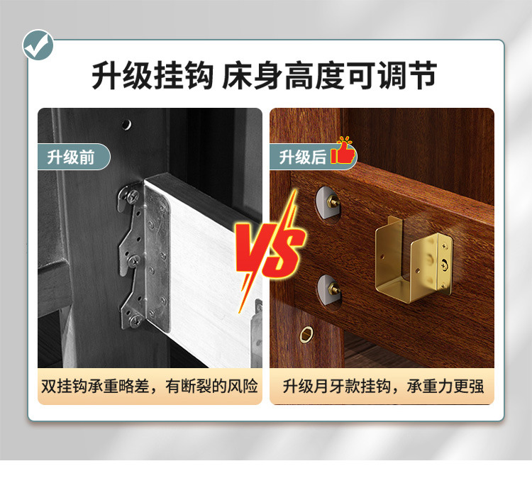 • [레드 골드 샌달우드] 침대 + 코코넛 야자 매트리스 + 침대 옆 탁자 1개