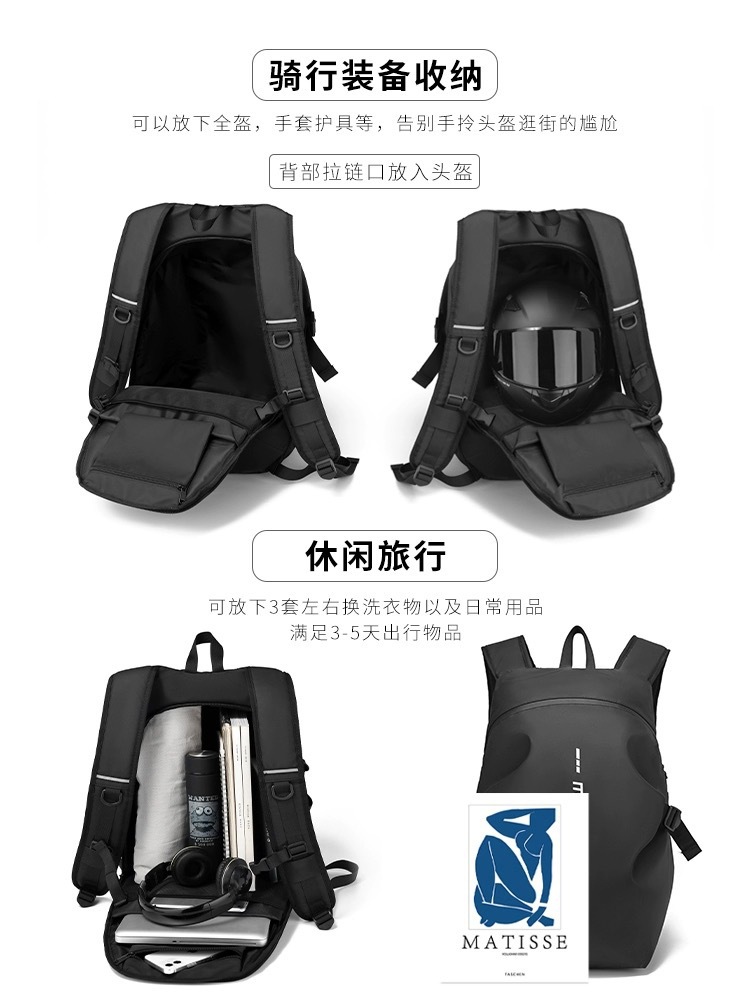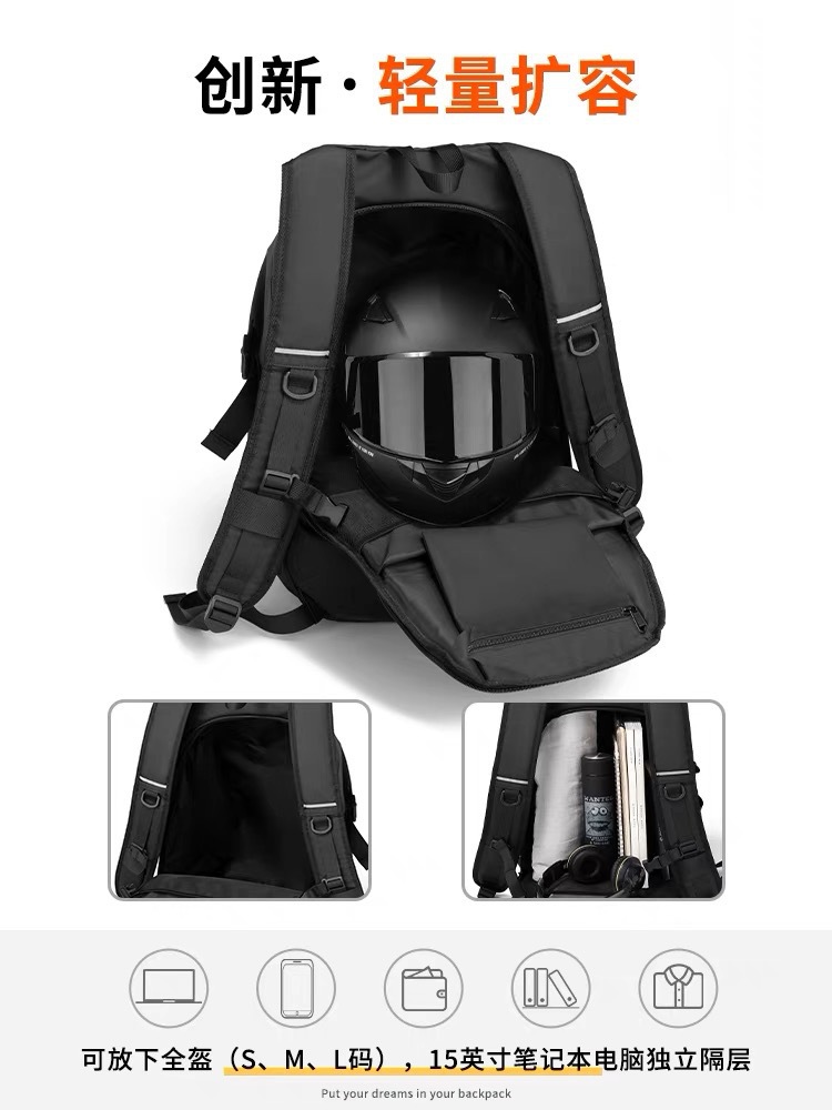 재고 헬멧 가방 야외 스포츠 승마 대용량 배낭 다기능 방수 통근 배낭 오토바이 스쿨백