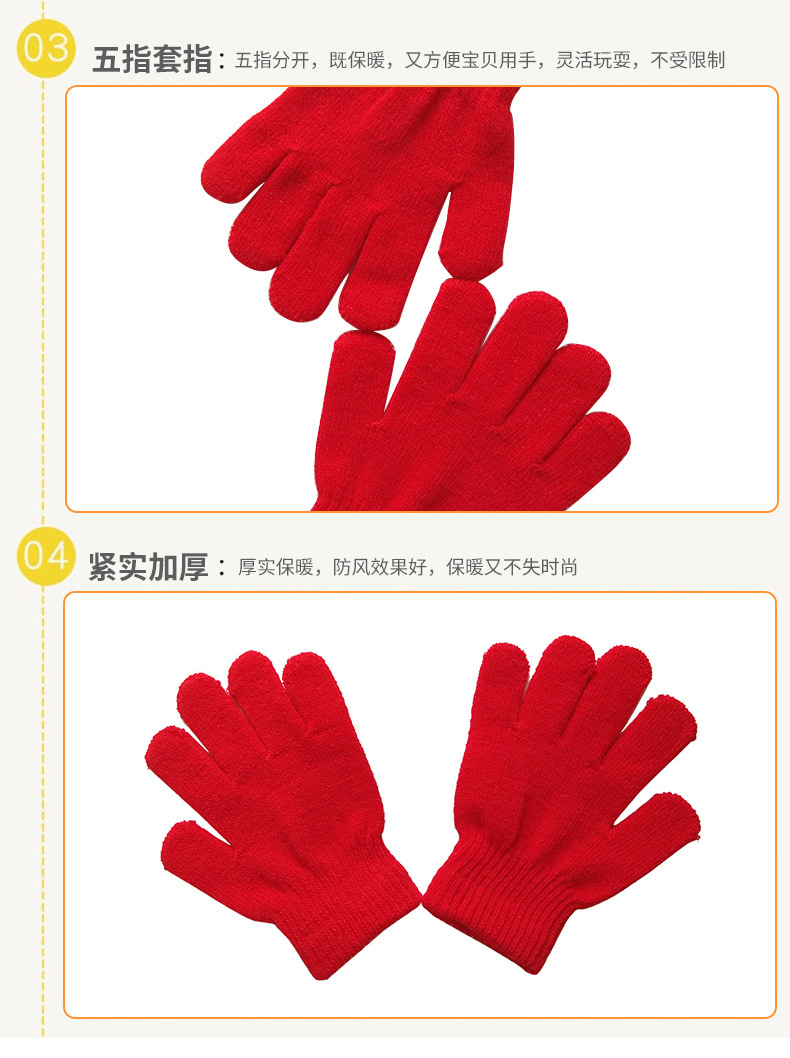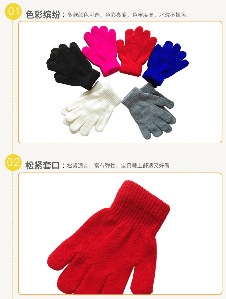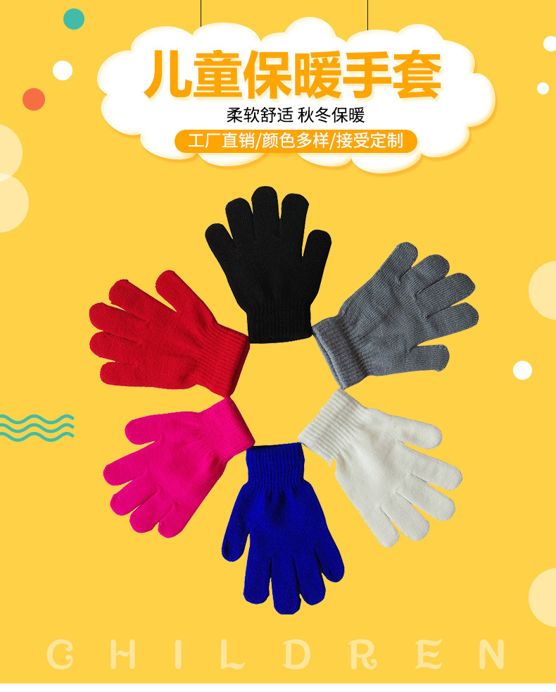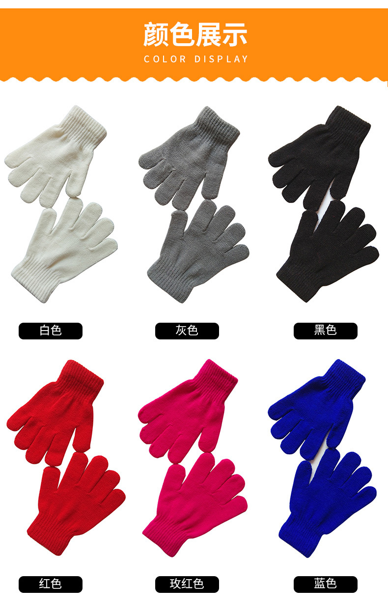 5-10세 어린이용 니트 보온 장갑, 단색, 초등학생용, 아크릴 혼방, 벨벳 안감, 인기 상품, 두꺼운 보온 장갑