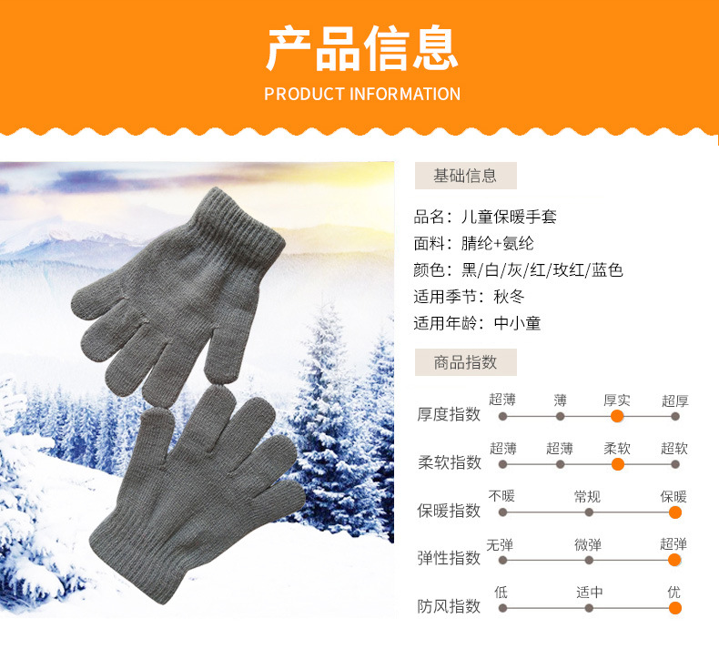 5-10세 어린이용 니트 보온 장갑, 단색, 초등학생용, 아크릴 혼방, 벨벳 안감, 인기 상품, 두꺼운 보온 장갑스토어 가기
