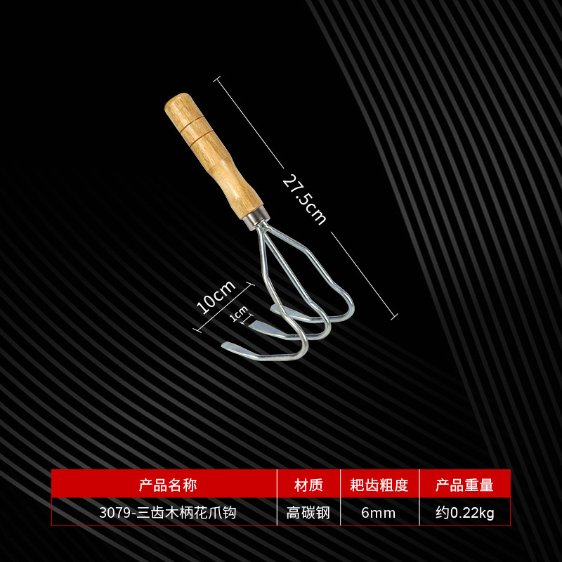 • 2509-XL-106-원예 나무 손잡이 3톱니 갈퀴