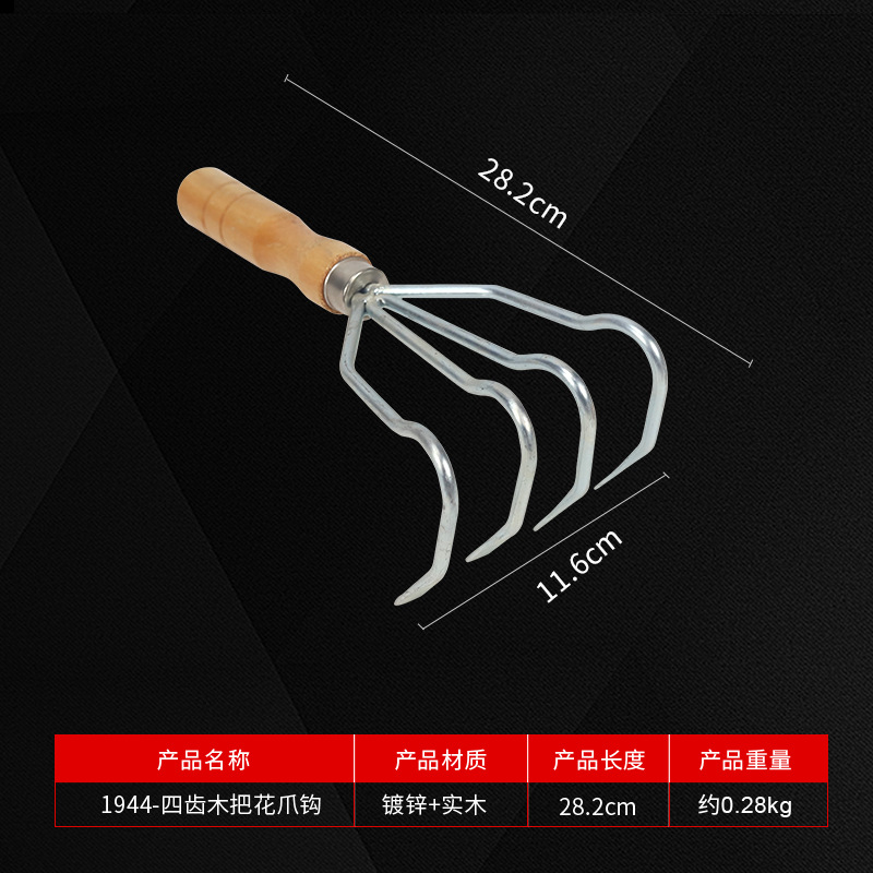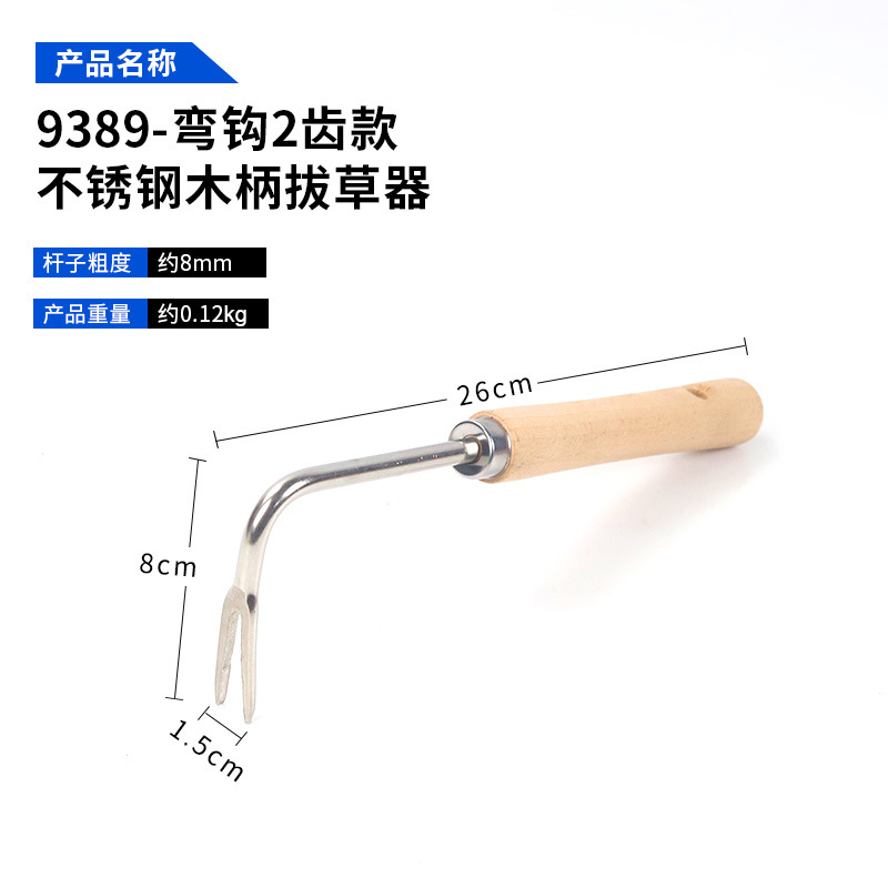 • 9389-후크 2톱니 스테인레스 스틸 나무 손잡이 잡초 제거기