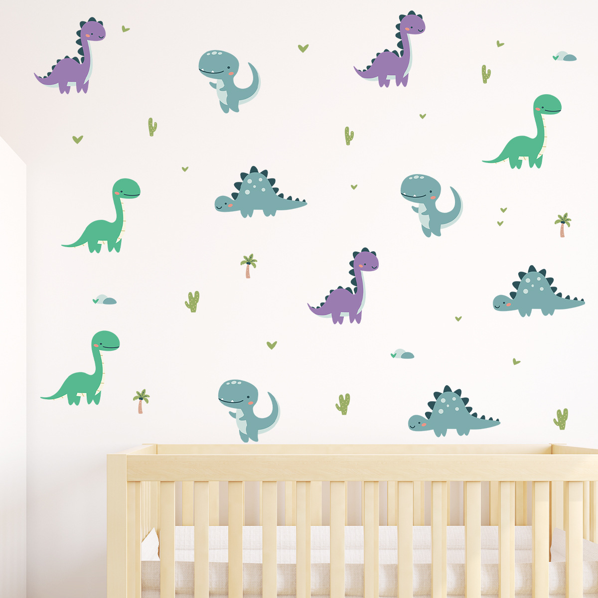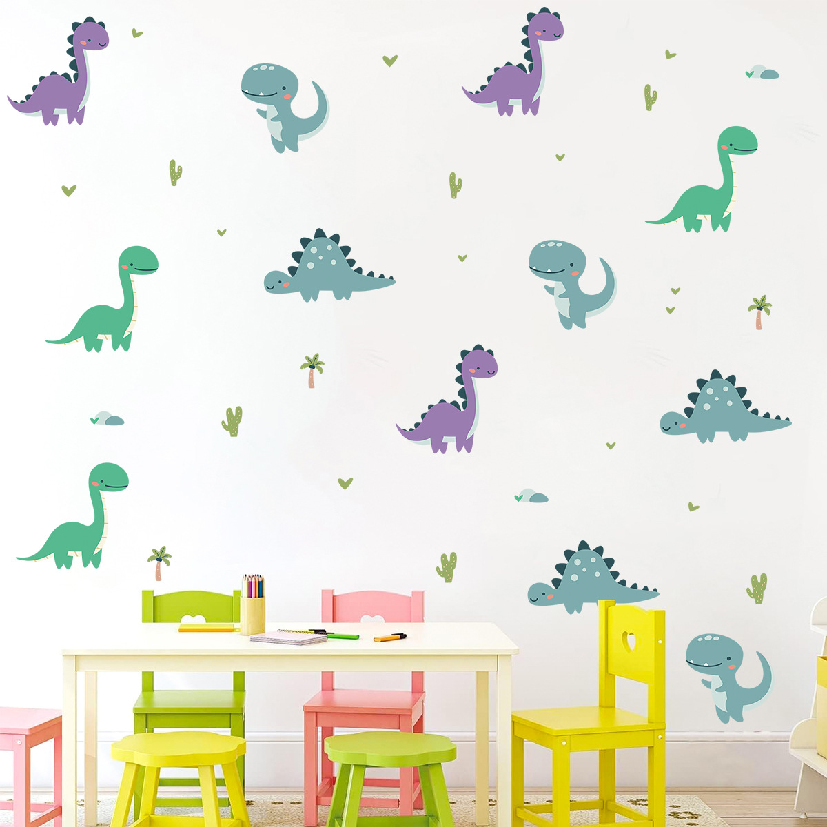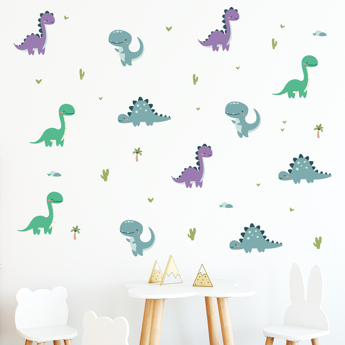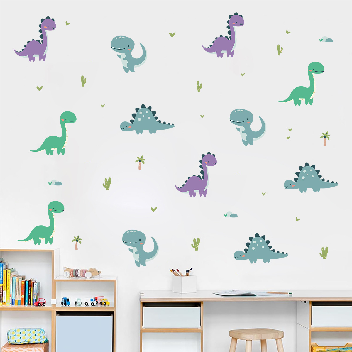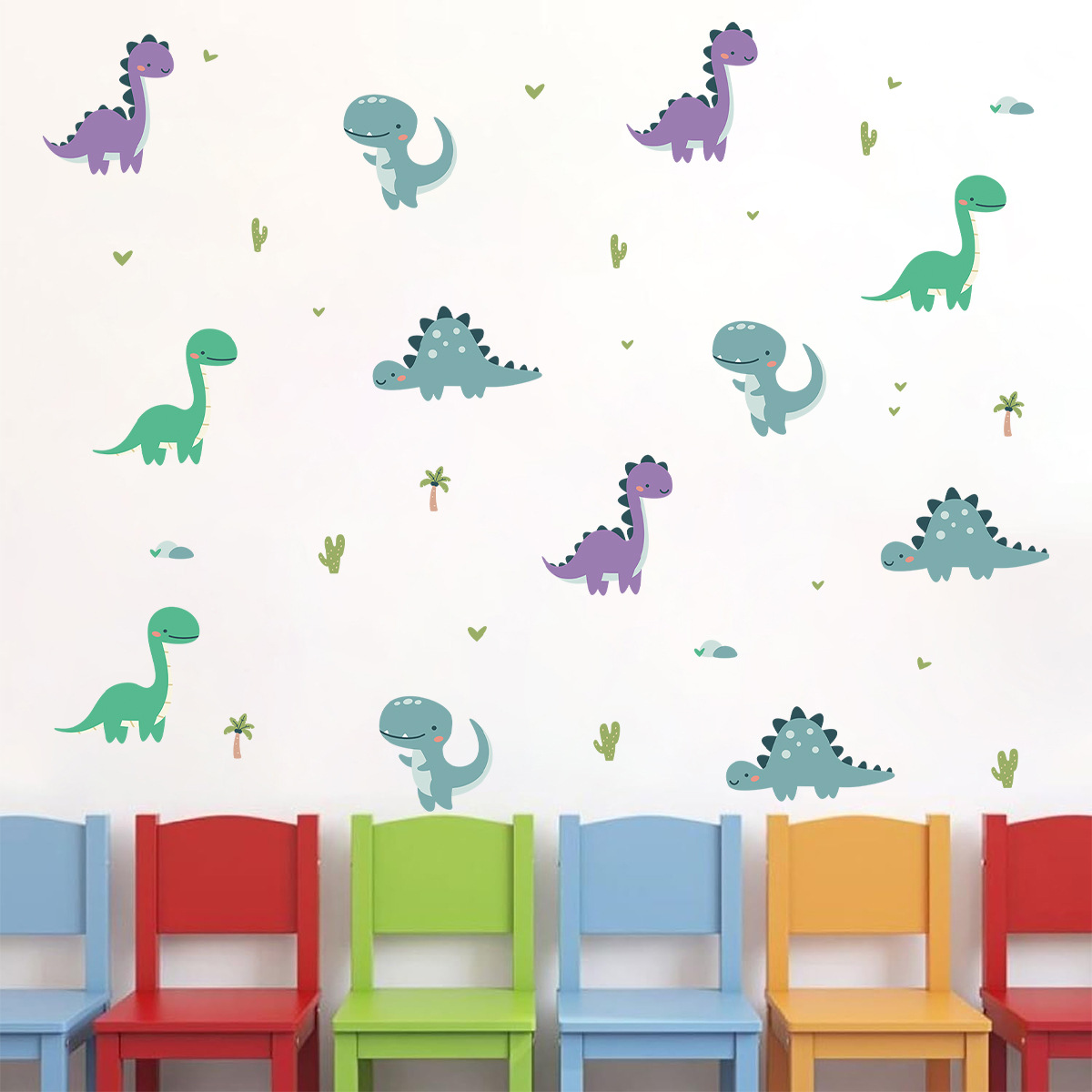 만화 색상 작은 공룡 자기 접착 벽 스티커 어린이 방 배경 벽 유치원 장식 스티커 BR0813C스토어 가기