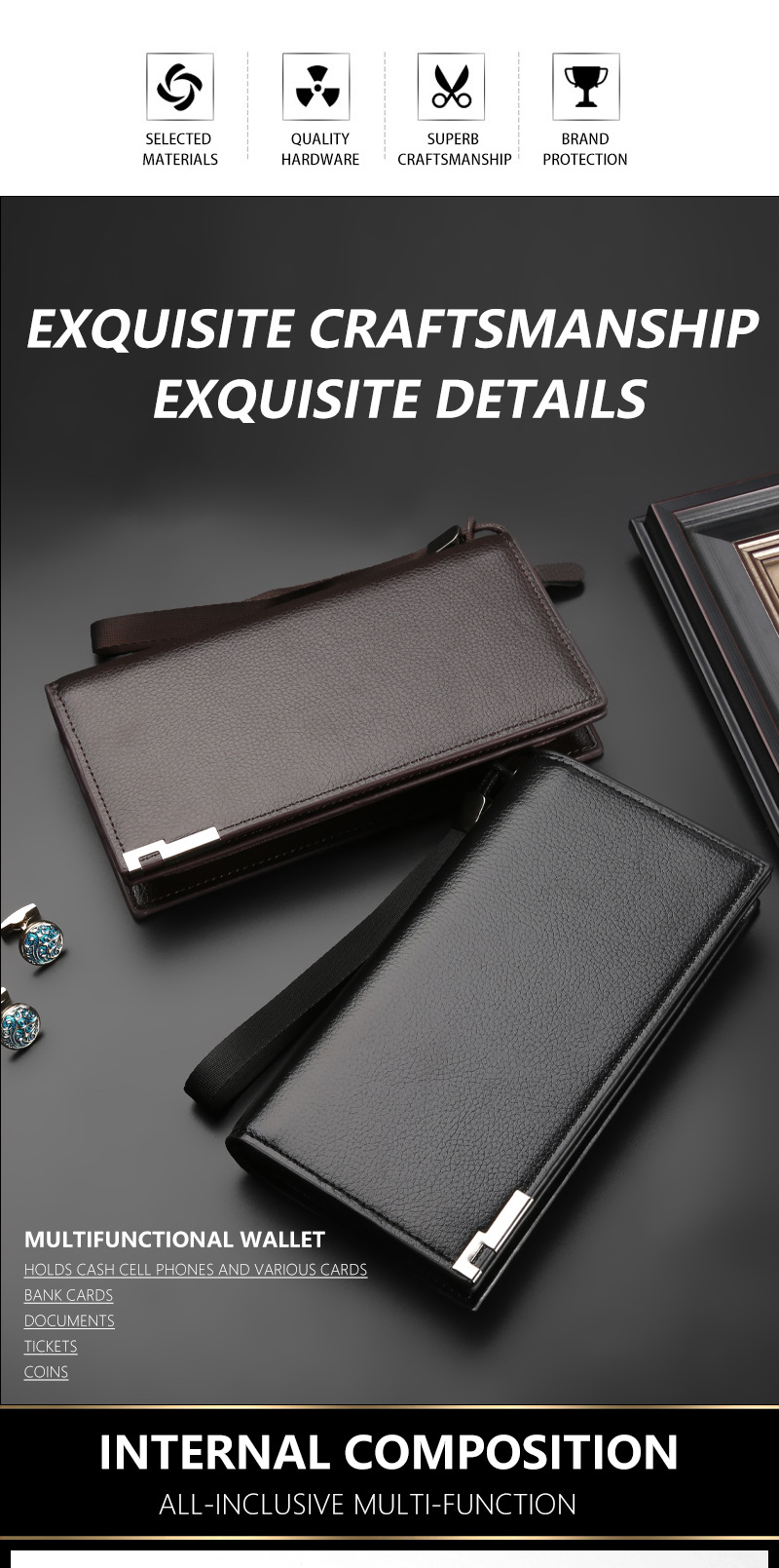 남성 지갑 도난 방지 브러시 안티 데기 긴 지퍼 멀티 카드 슬롯 라이트 럭셔리 비즈니스 지갑 카드 가방스토어 가기