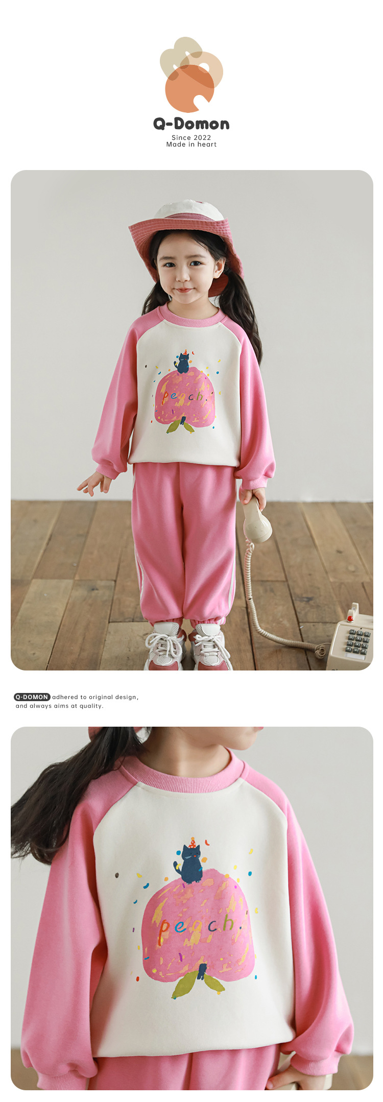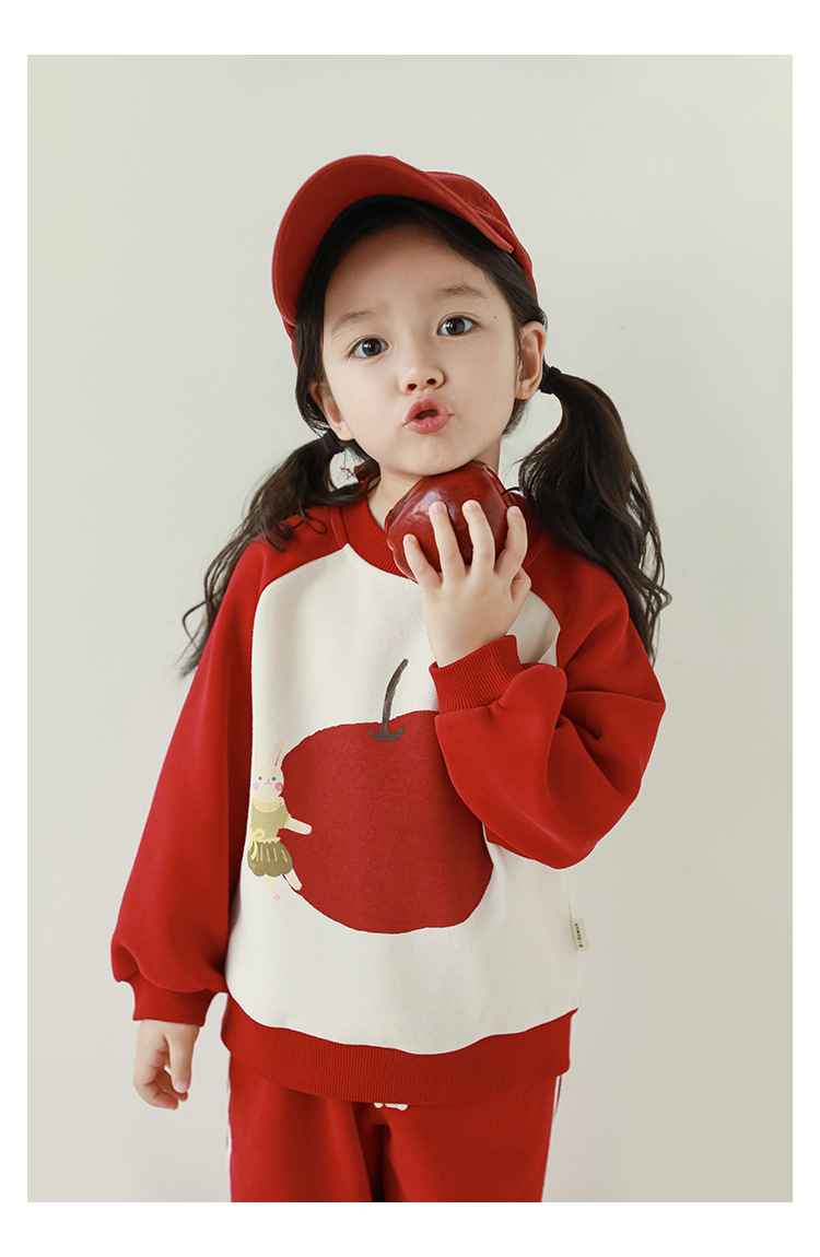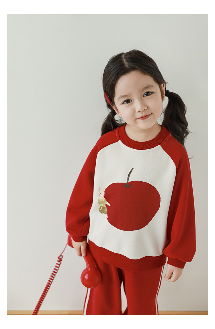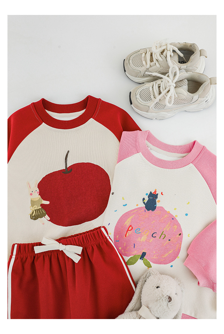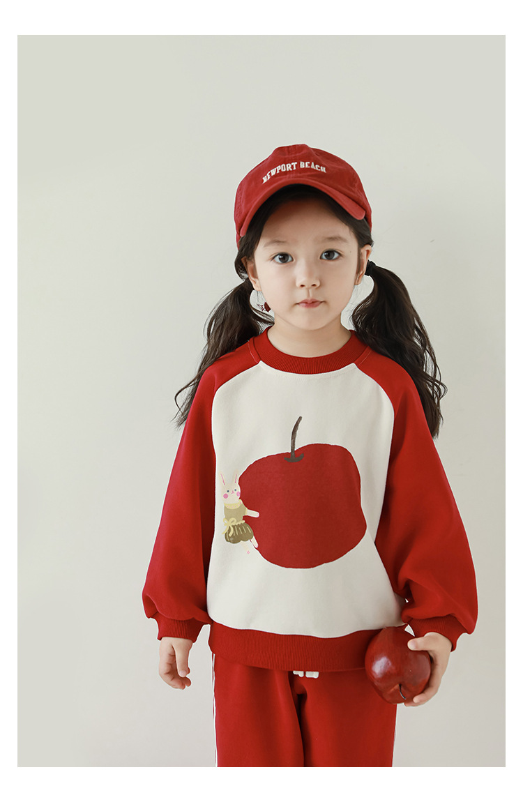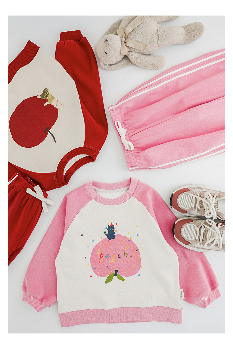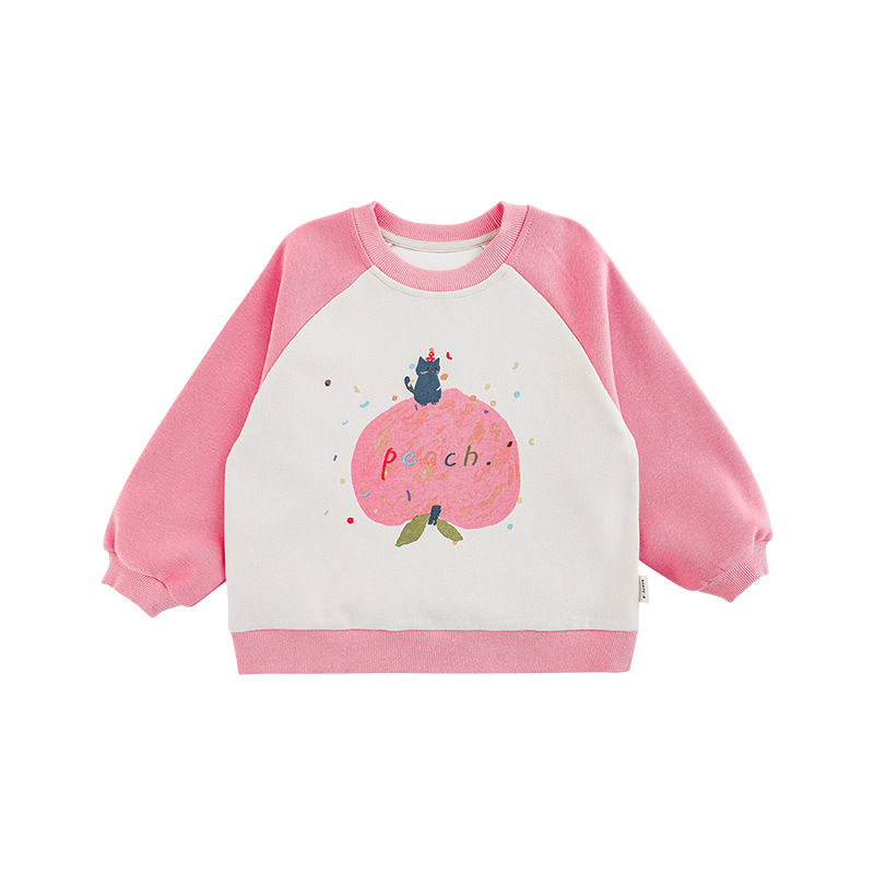 Qiu Duo Meng 여아용 패셔너블하고 귀여운 프린트 래글런 슬리브 스웨트셔츠 2025 봄 가을 신상 아동용 스타일리시한 만화 캐릭터 상의스토어 가기