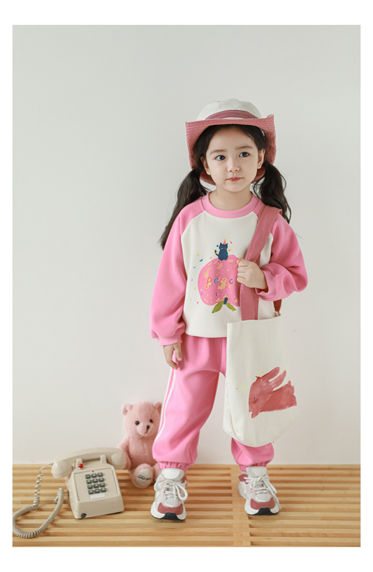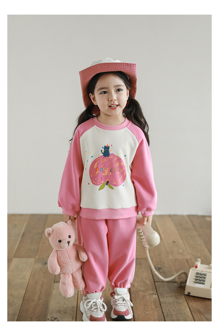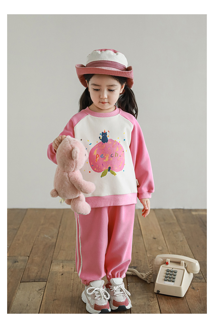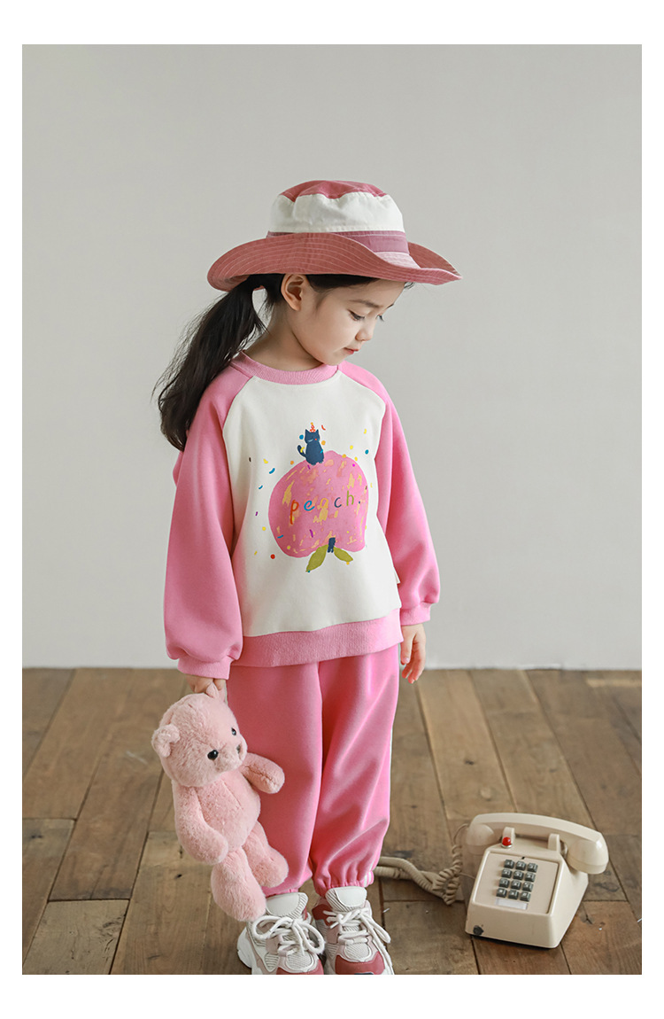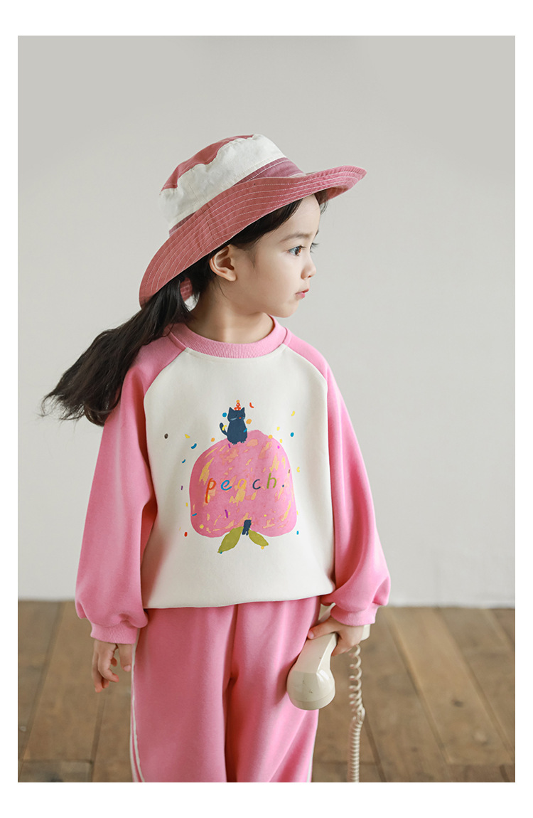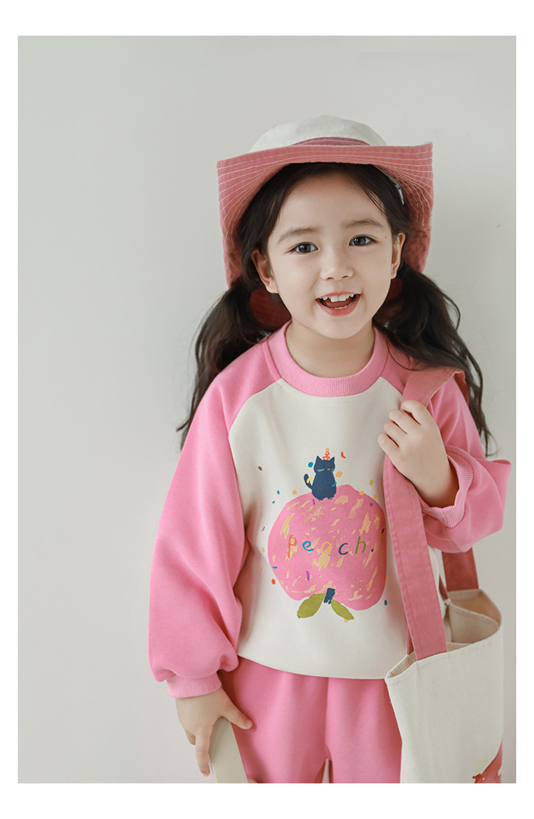 Qiu Duo Meng 여아용 패셔너블하고 귀여운 프린트 래글런 슬리브 스웨트셔츠 2025 봄 가을 신상 아동용 스타일리시한 만화 캐릭터 상의