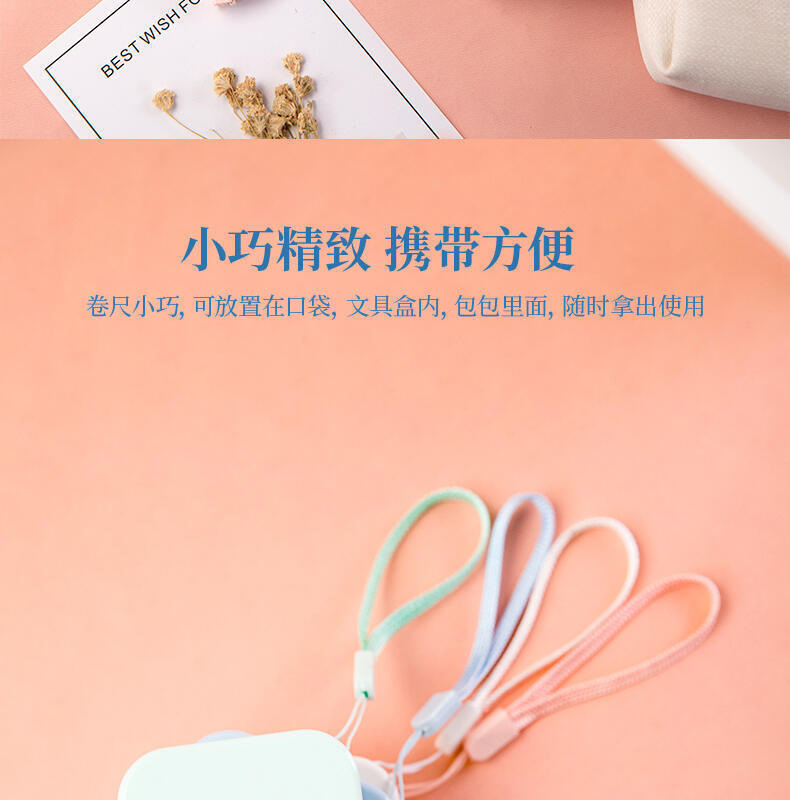 Deli 79652 가죽 테이프 측정 2 미터 신선한 아트 미니 테이프 측정 자동 클램핑 양면 스케일 테이프 측정스토어 가기