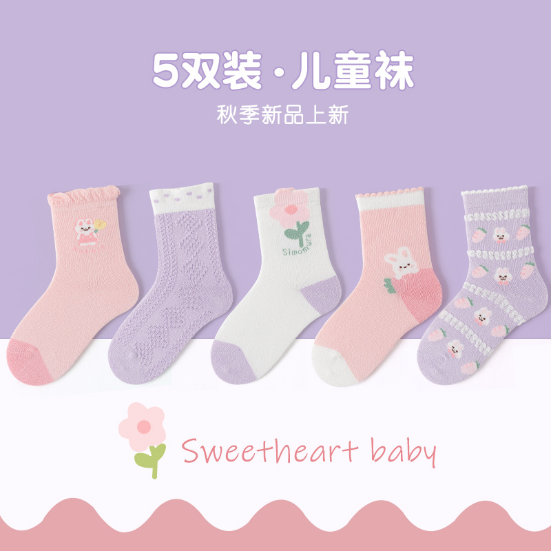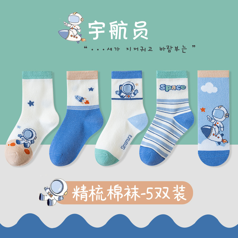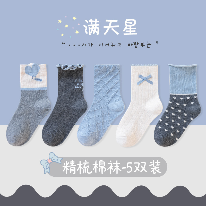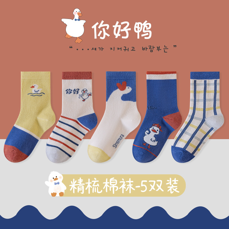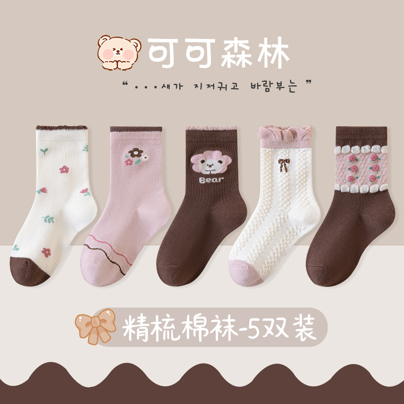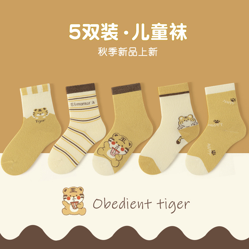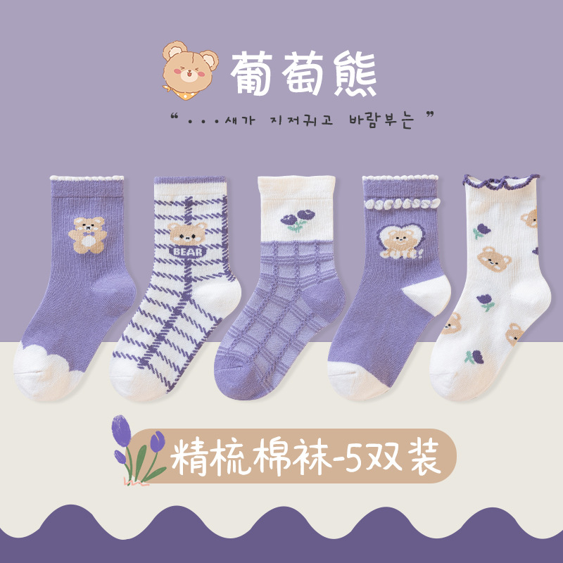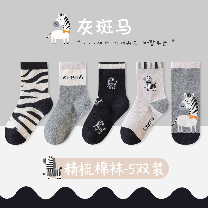 어린이용 A급 면 양말, 가을 겨울용 남아 여아 양말, 단색 만화 중목 양말, 마사지 바닥 어린이 양말 도매스토어 가기