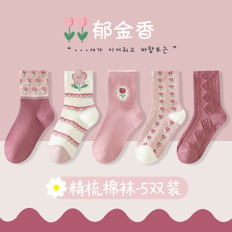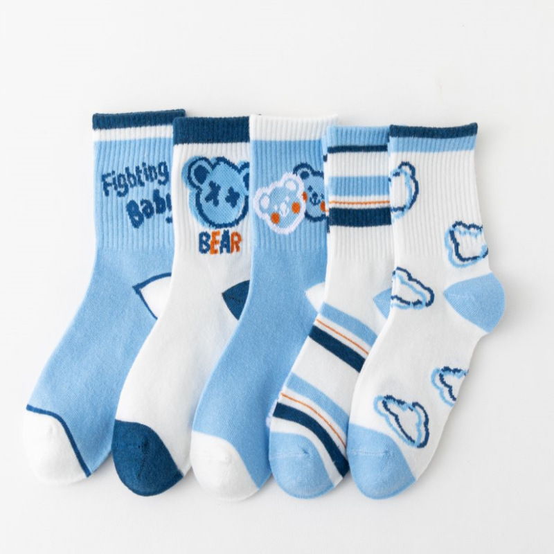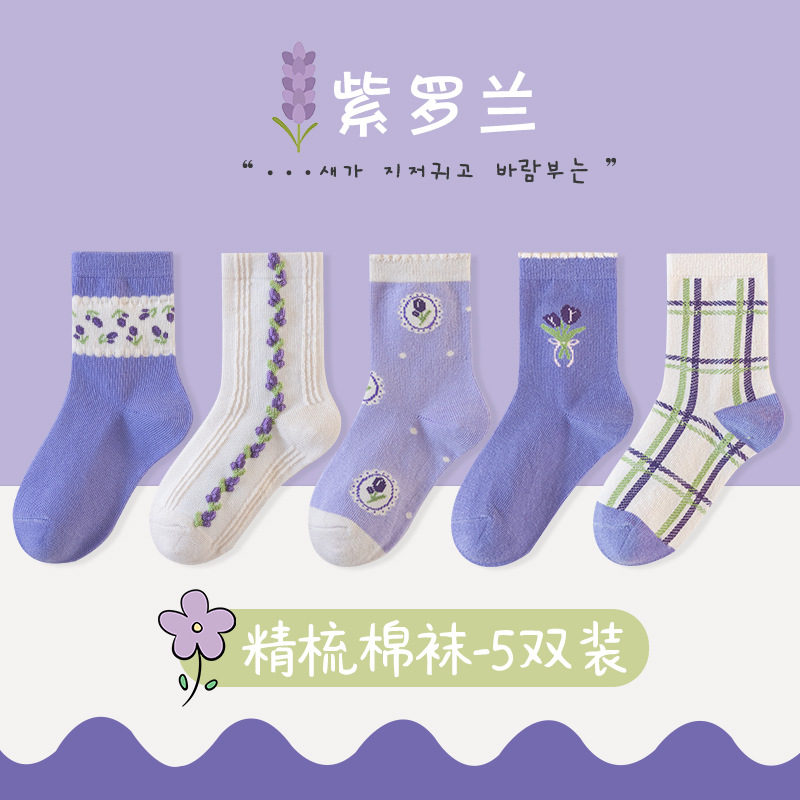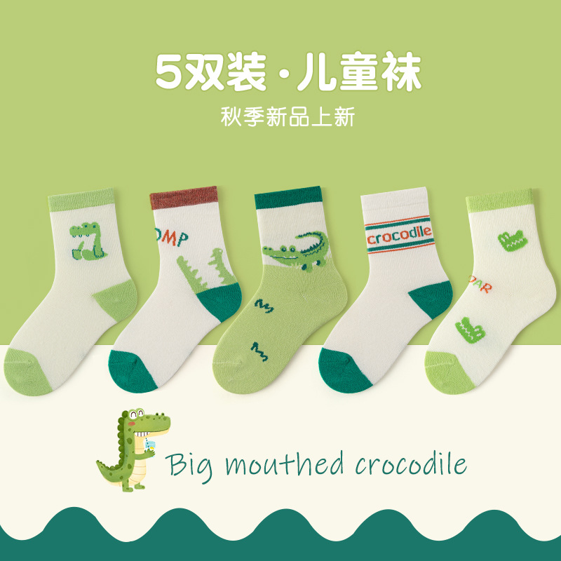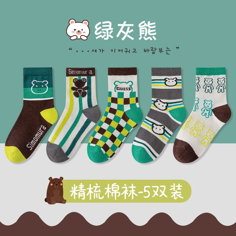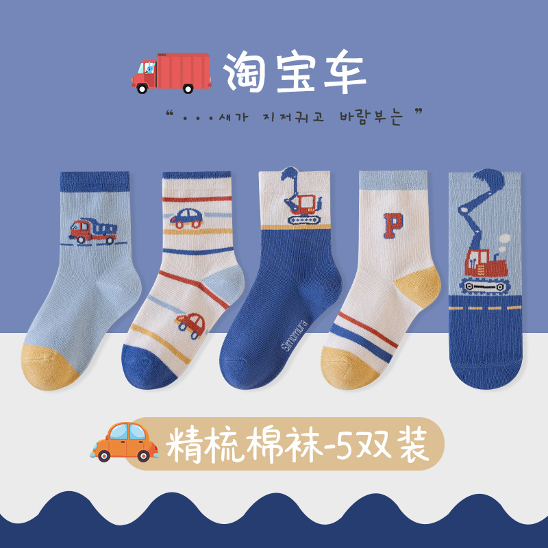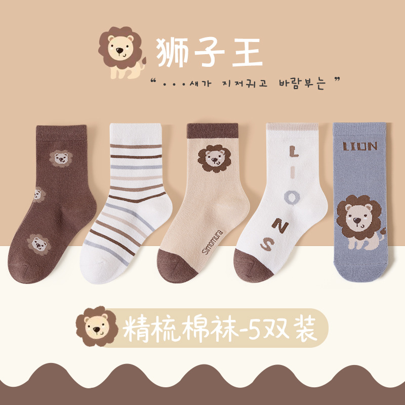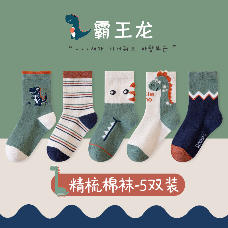 어린이용 A급 면 양말, 가을 겨울용 남아 여아 양말, 단색 만화 중목 양말, 마사지 바닥 어린이 양말 도매스토어 가기