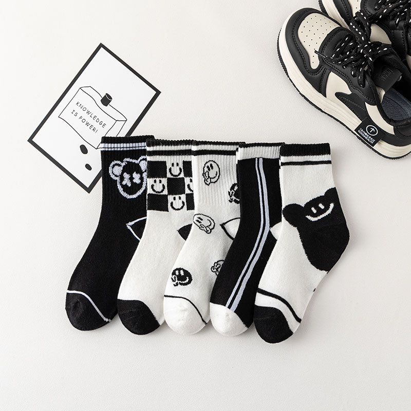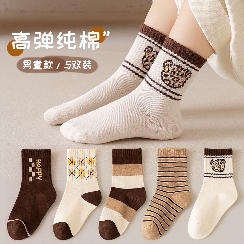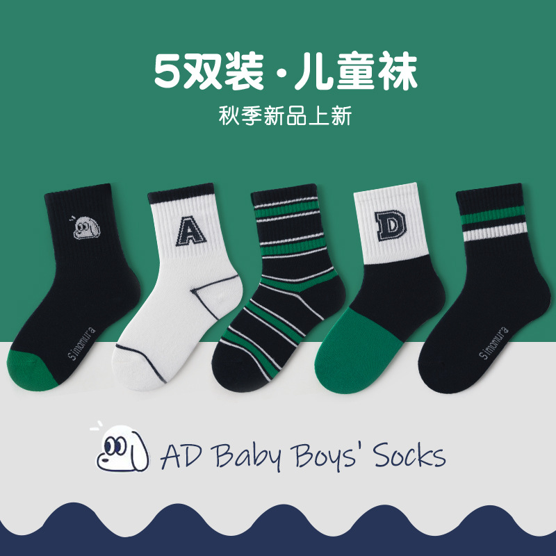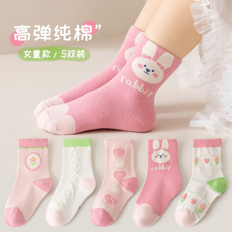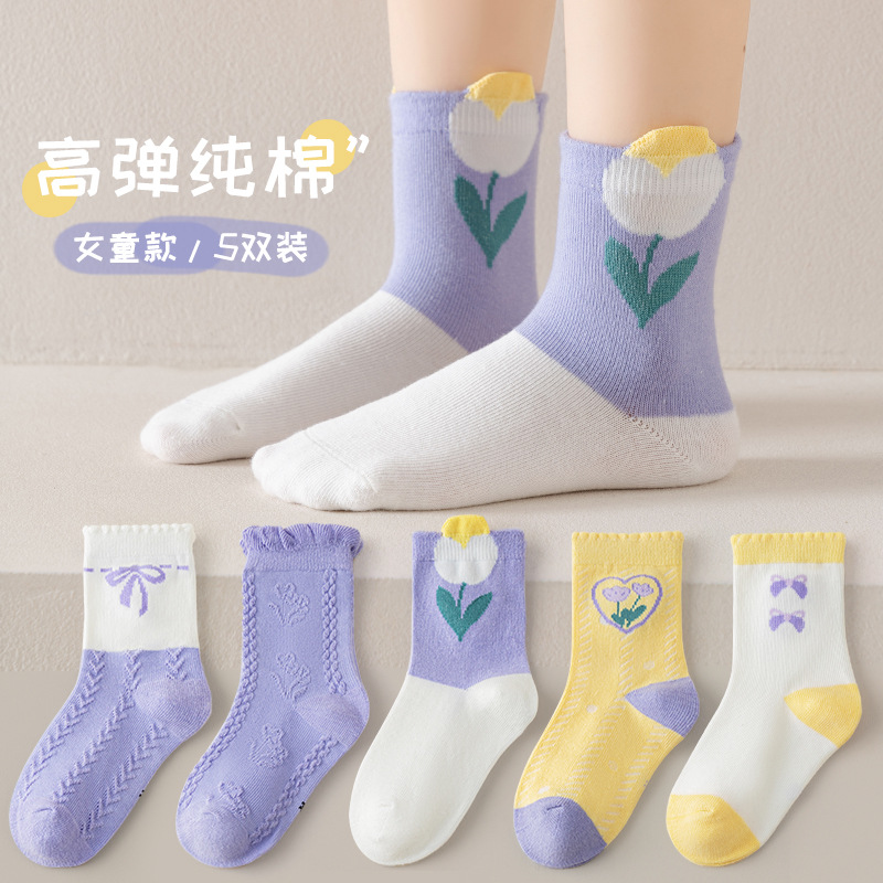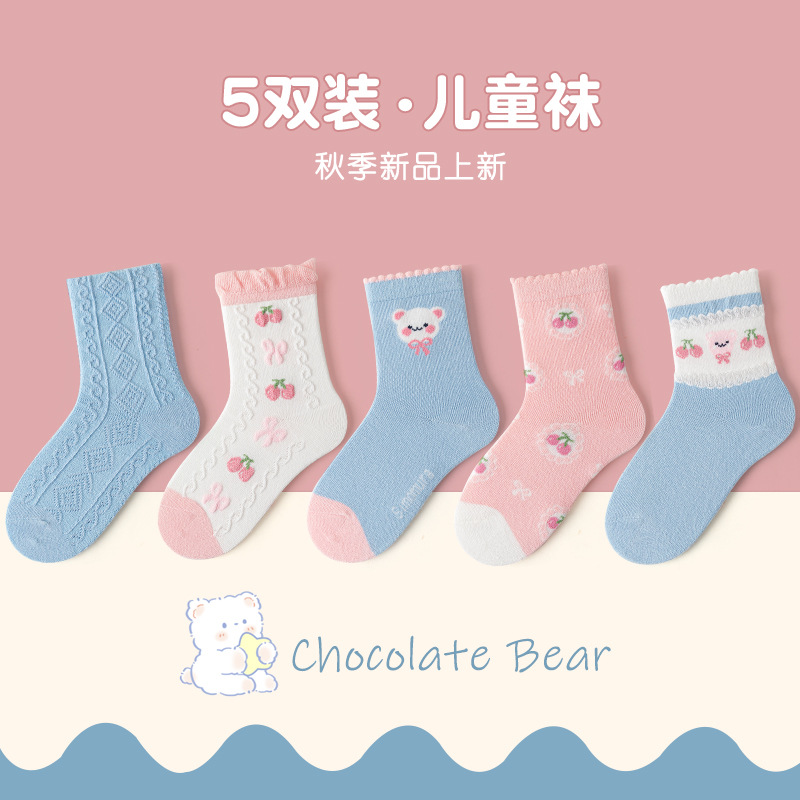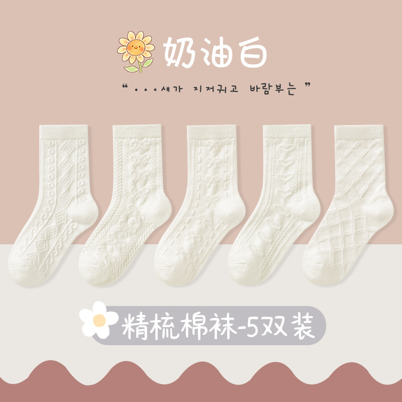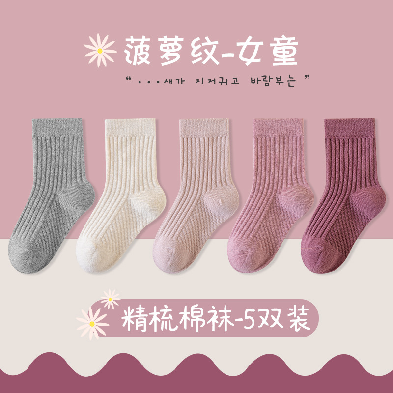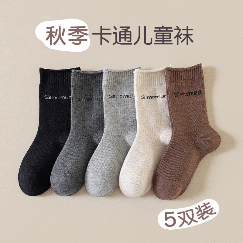 어린이용 A급 면 양말, 가을 겨울용 남아 여아 양말, 단색 만화 중목 양말, 마사지 바닥 어린이 양말 도매