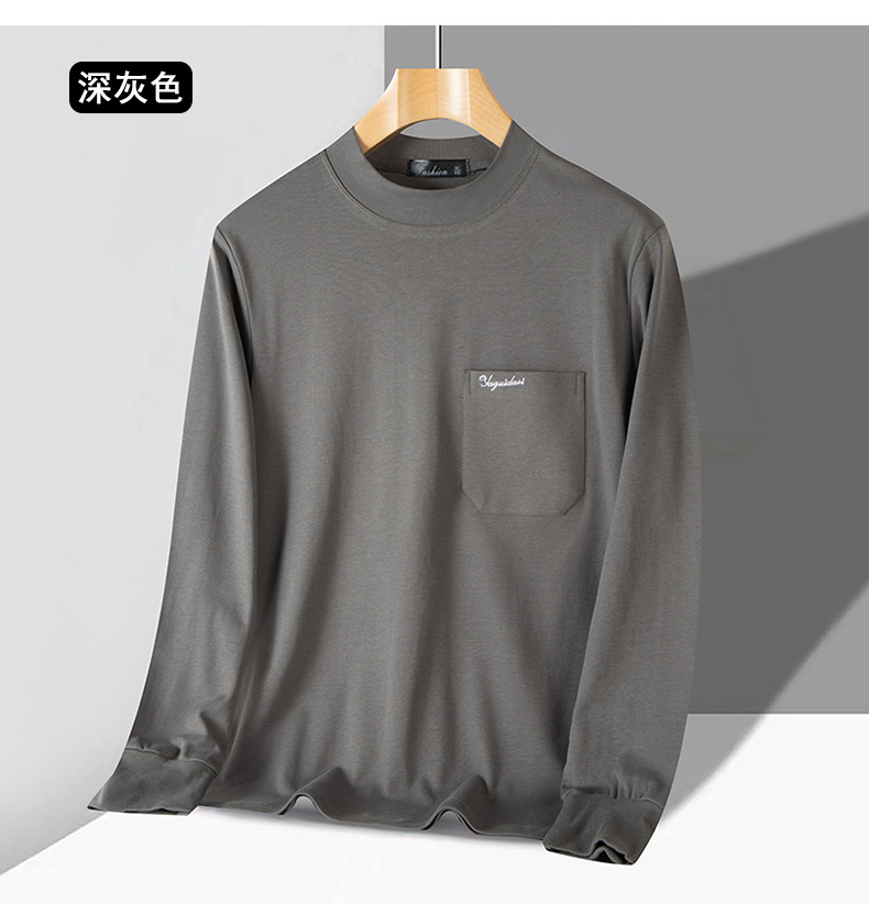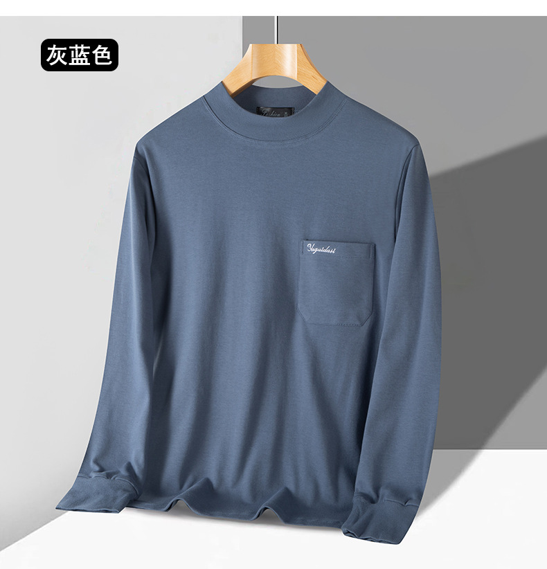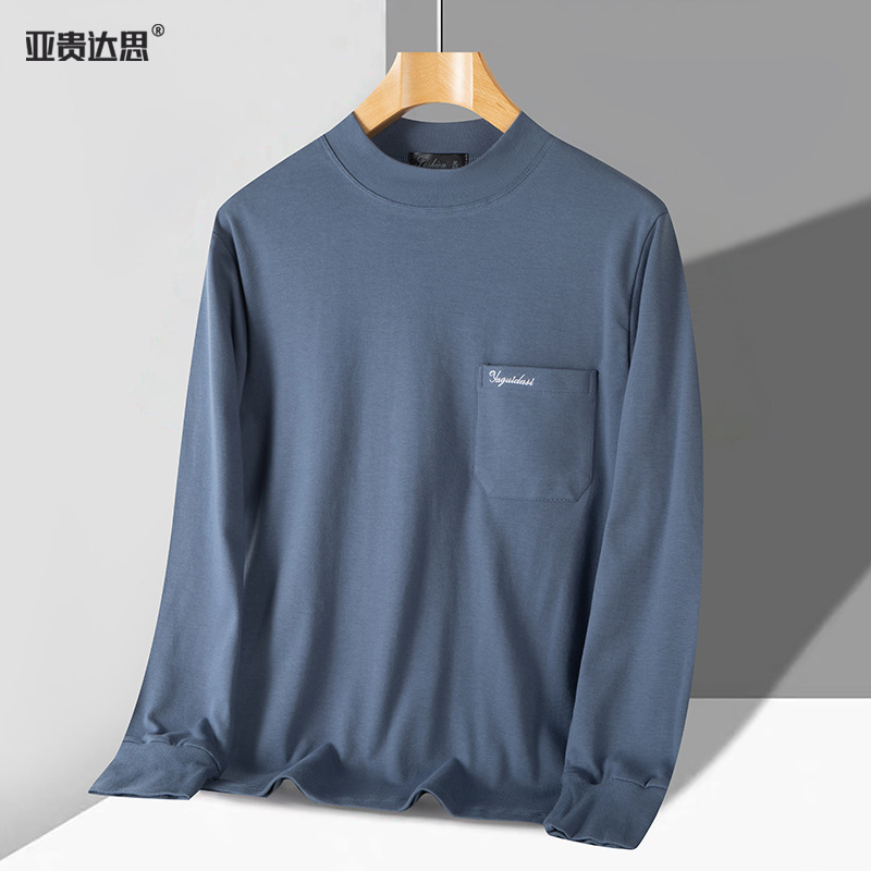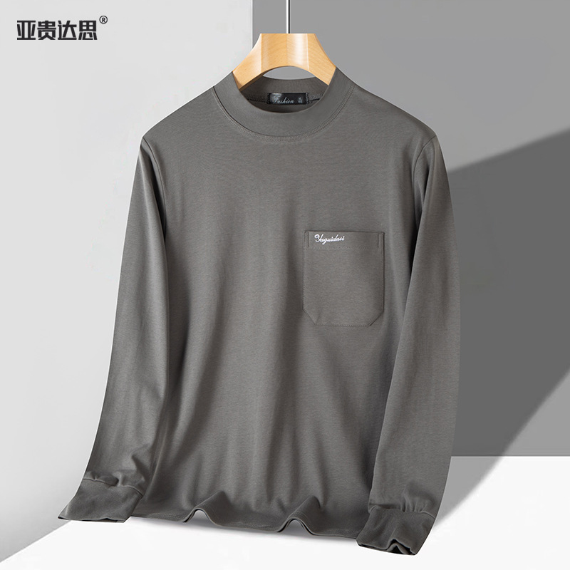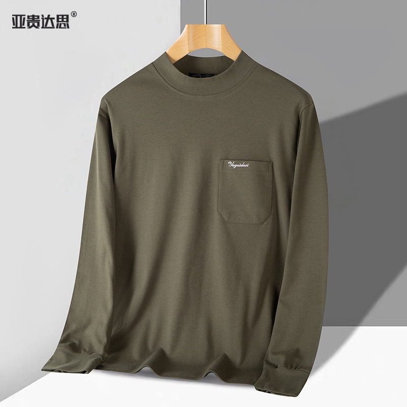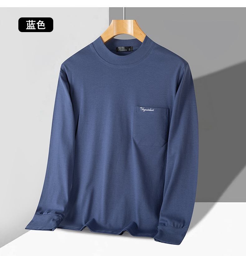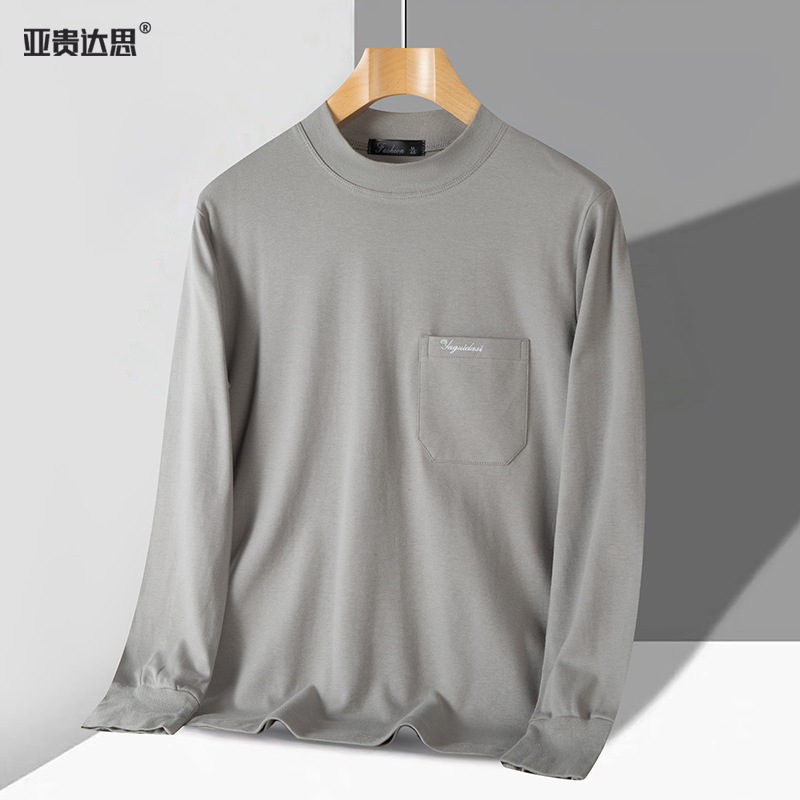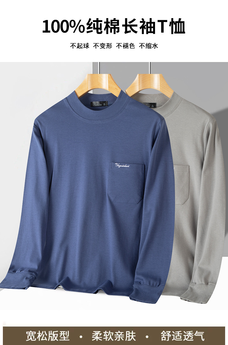 아빠의 긴팔 티셔츠 면 중년 및 노인 가을 옷 반 높이 칼라 중년 외복 탑 봄과 가을 남성면스토어 가기