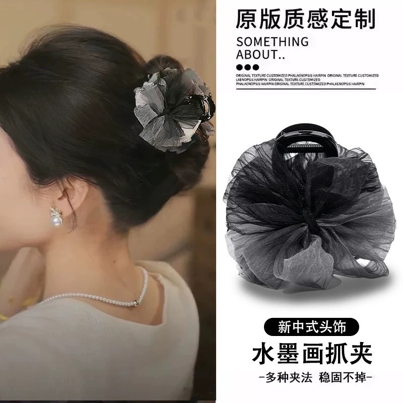 새로운 중국 스타일 헤드웨어 잉크 페인팅 클립 여성의 2024 새로운 스타일 활 상어 클립 중간 하프 헤어 클립 헤드웨어