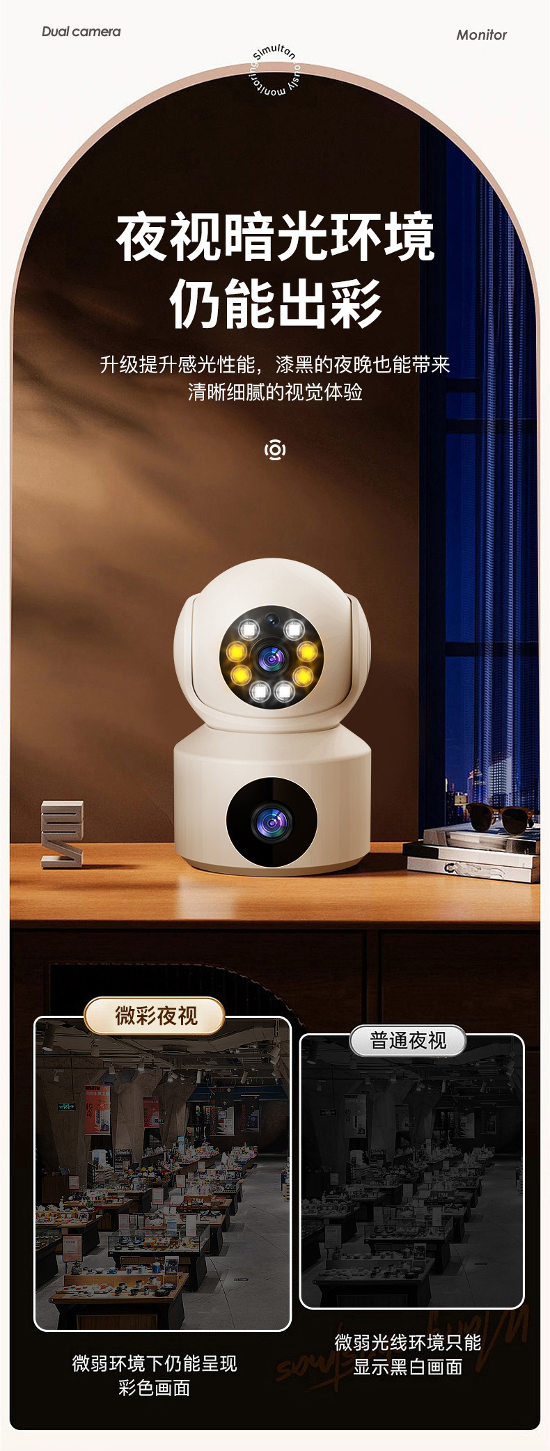 양안 쉐이크 헤드 머신 야간 투시 듀얼 사진 감시 카메라 무선 나이트 비전 HD 감시 카메라 4 백만 이미지스토어 가기