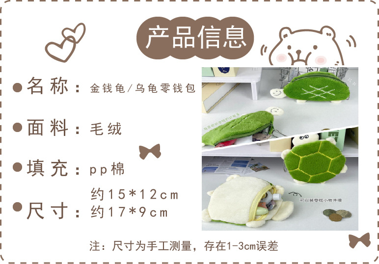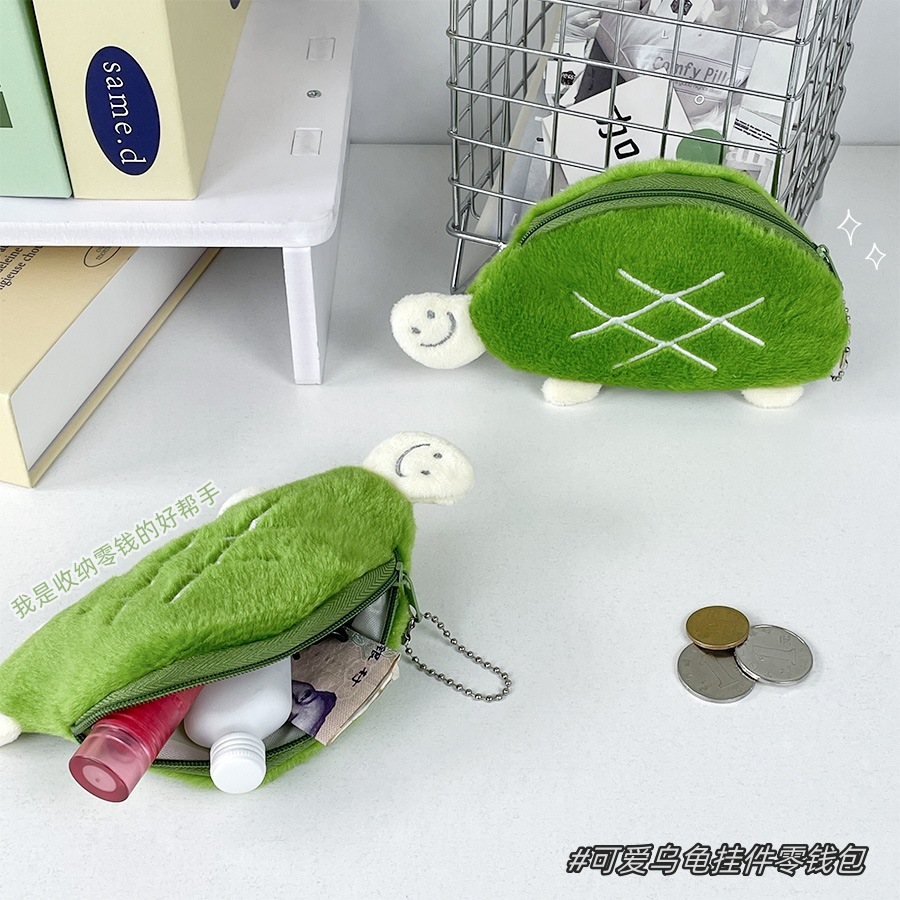 귀여운 돈 거북이 플러시 동전 지갑 녹색 거북이 어린이 동전 가방 잔해물 보관 가방 키 체인 펜던트 도매