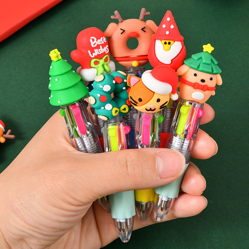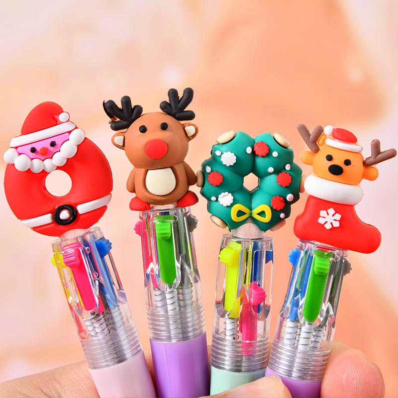 국경 크리스마스 창조적 인 귀여운 만화 4 색 미니 볼펜 오일 펜 학생 문구 선물 상품 도매