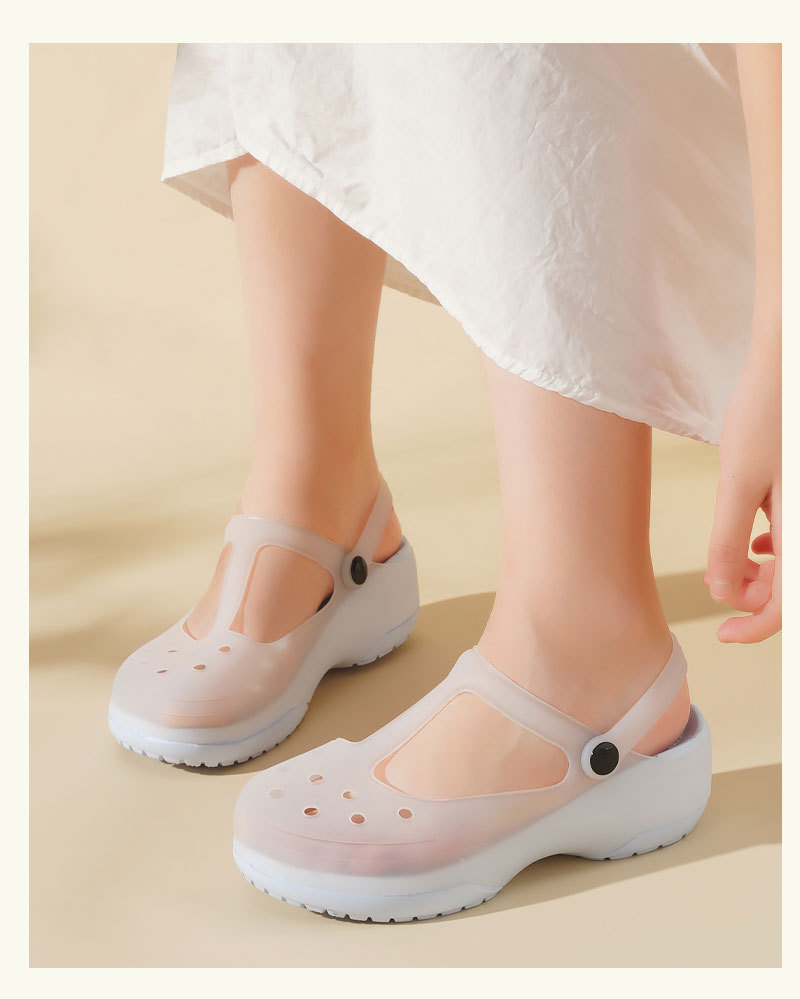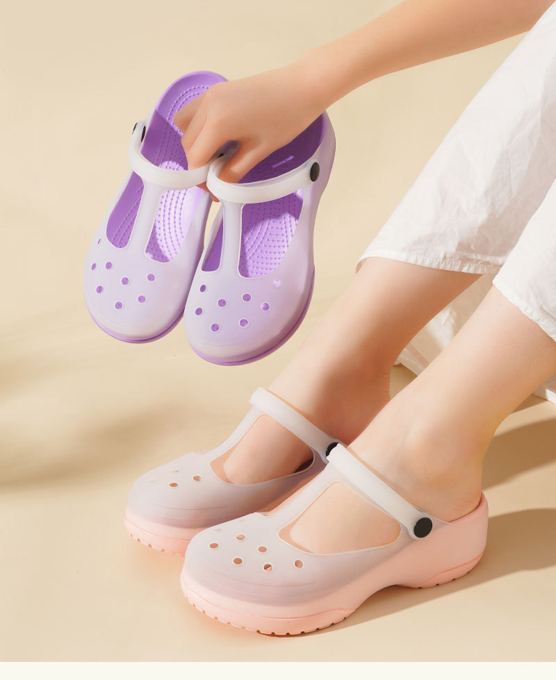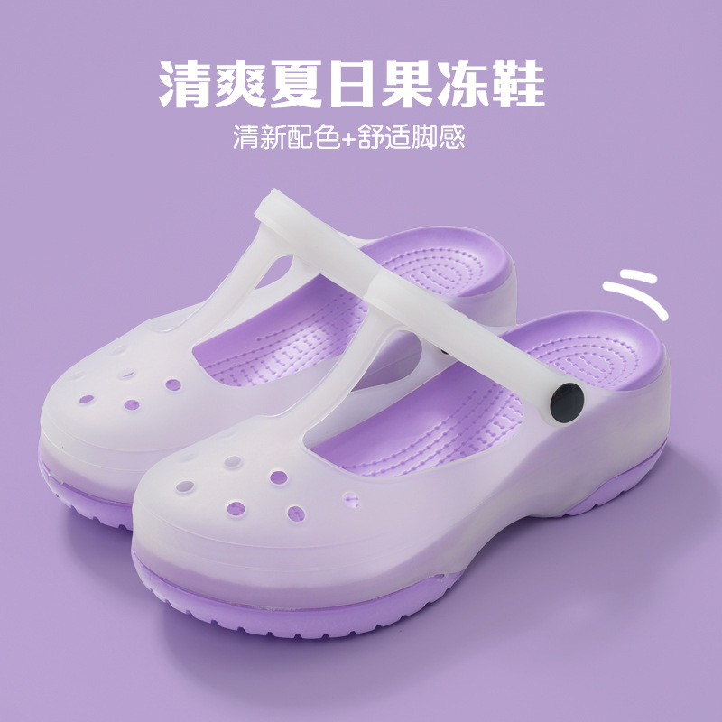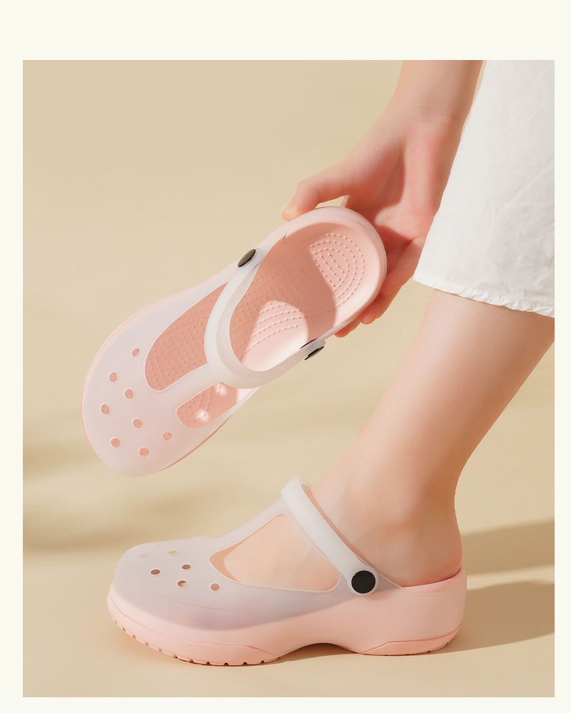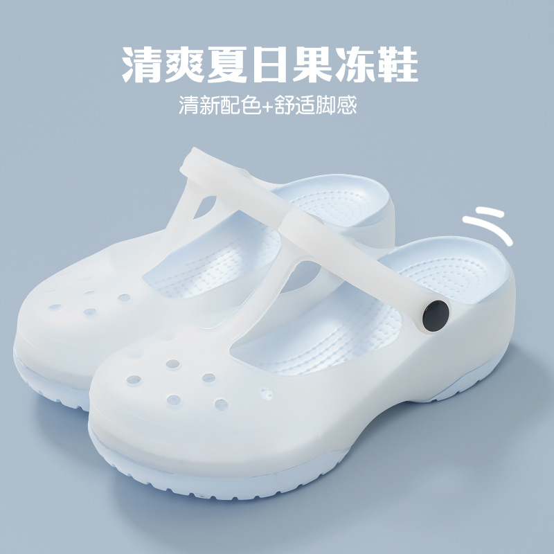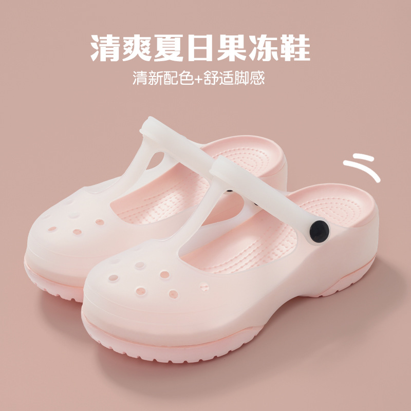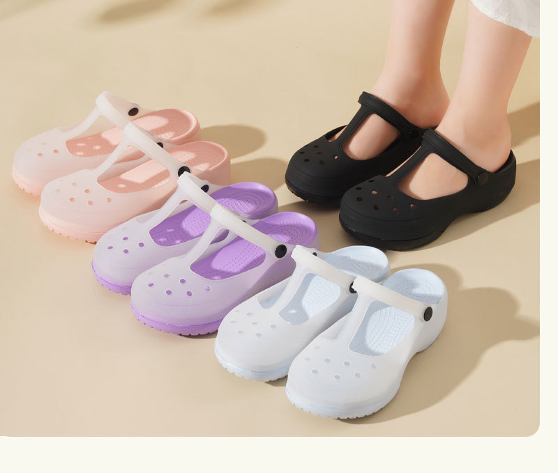 새로운 간호사 구멍 신발 여성 임산부 샌들 여름 미끄럼 방지 두꺼운 젤리 비치 신발 외부 착용 부드러운 밑창 슬리퍼