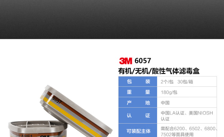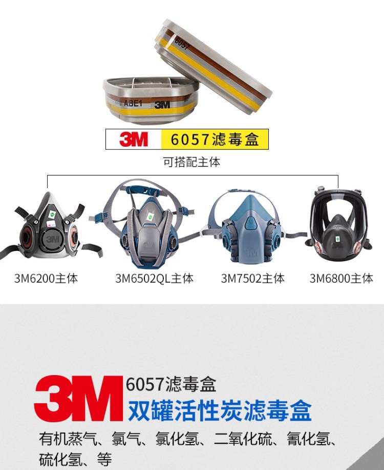 3M 필터 박스 6057 항 유기 무기 염소 염화 수소산 가스 안티 바이러스 액세서리 활성탄 필터 박스스토어 가기