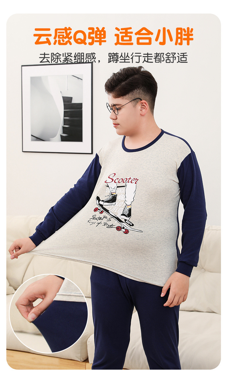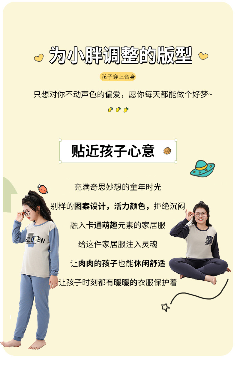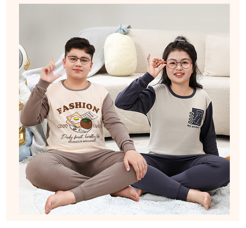 십대 순면 플러스 비료 가을 옷 가을 바지 통통한 어린이 봄과 가을 느슨한 파자마 세트 중 큰 어린이의 가을 및 겨울 가정 옷스토어 가기