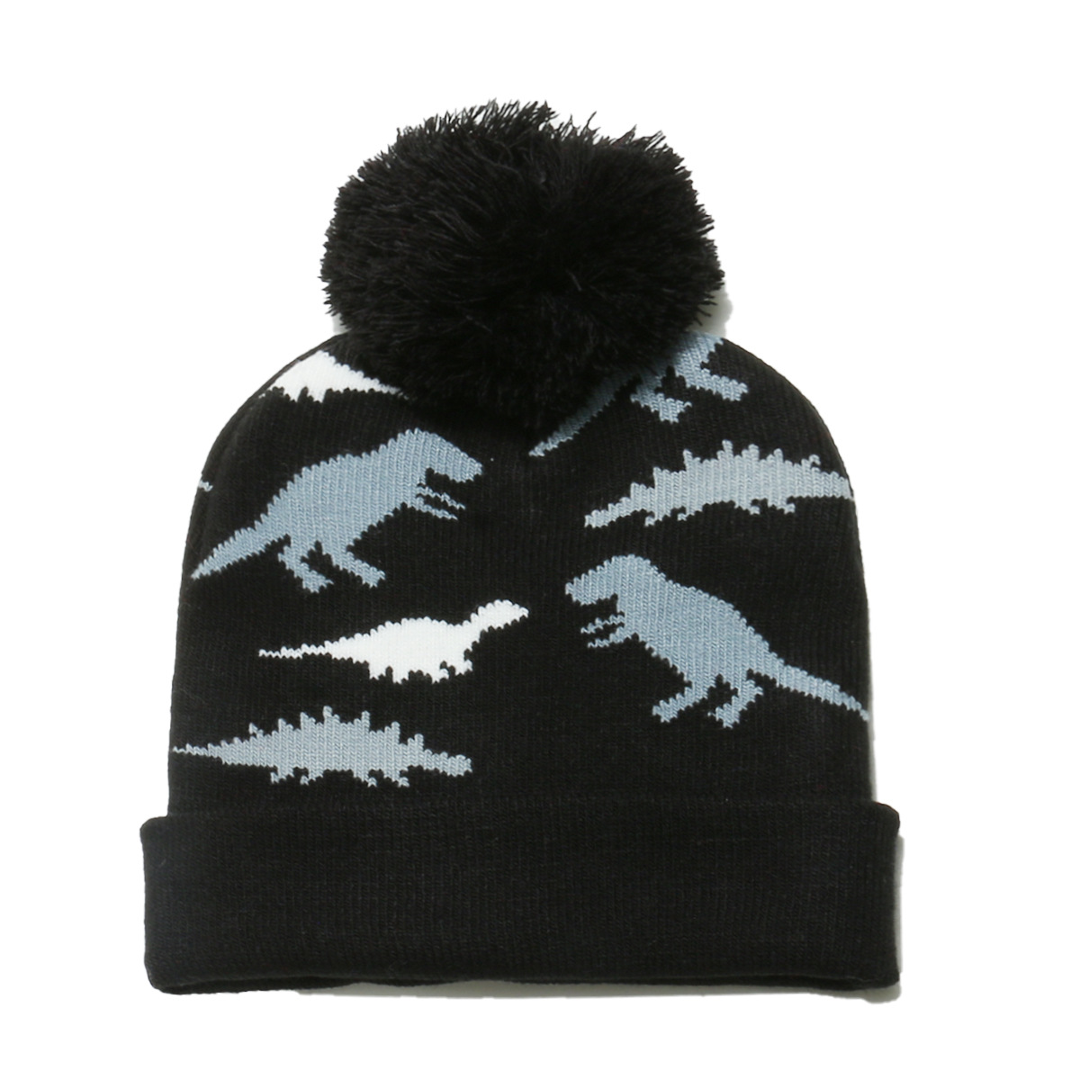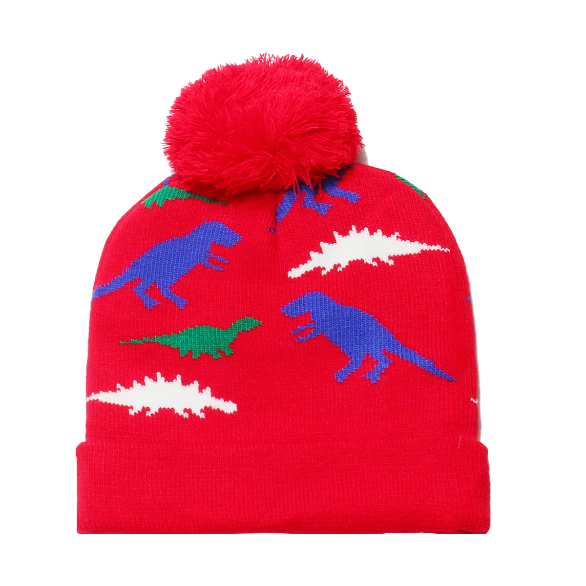 2024 가을과 겨울 새로운 어린이 울 모자 귀여운 소년 공룡 자카드 울 볼 니트 모자 따뜻한 겨울 모자 어린이