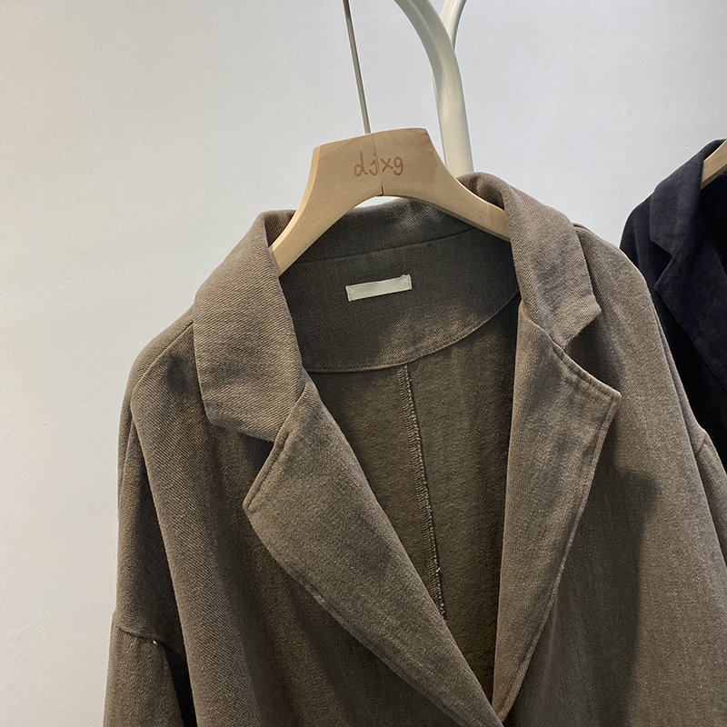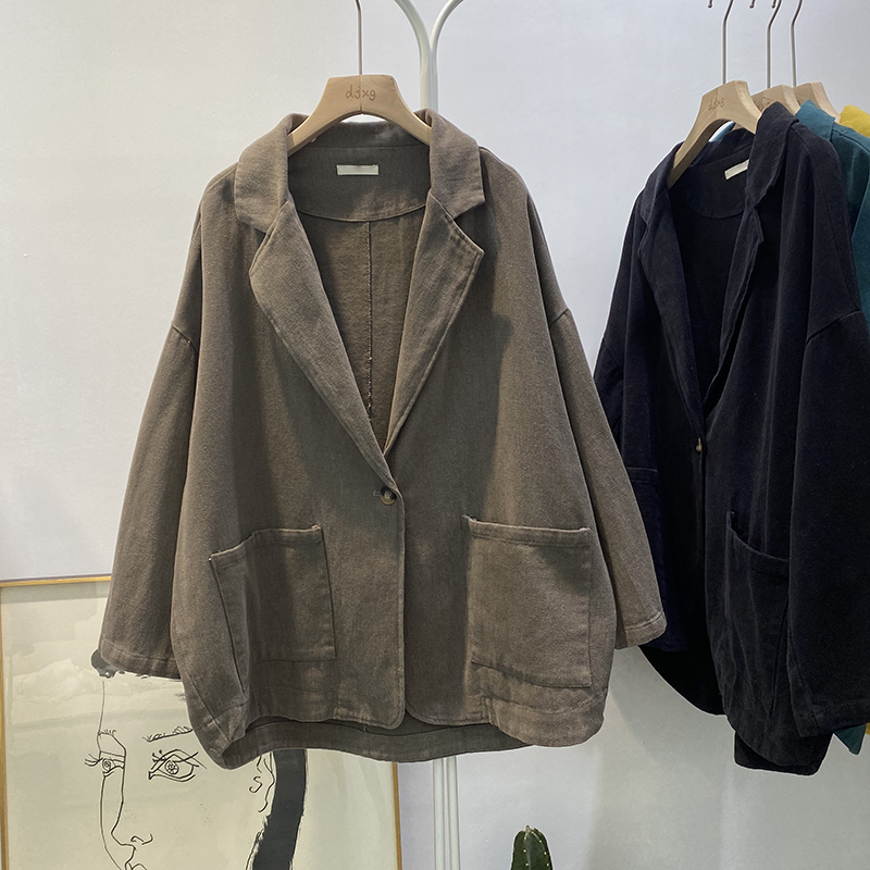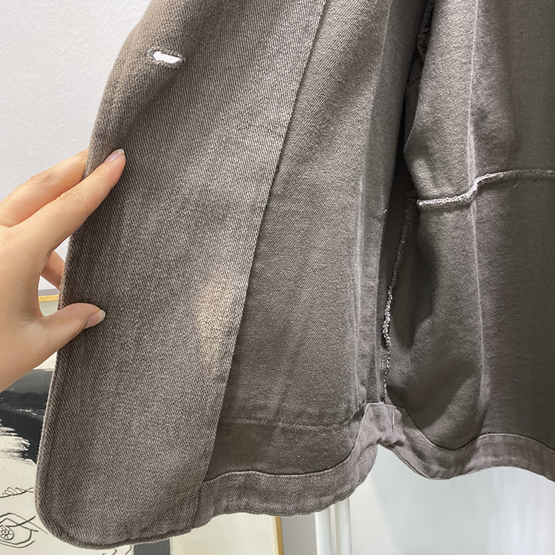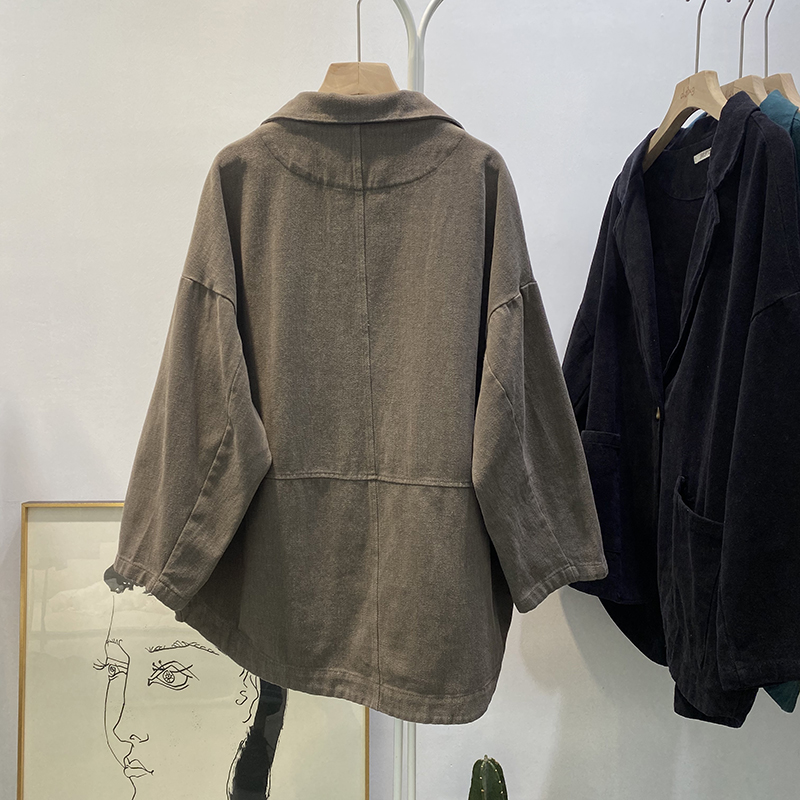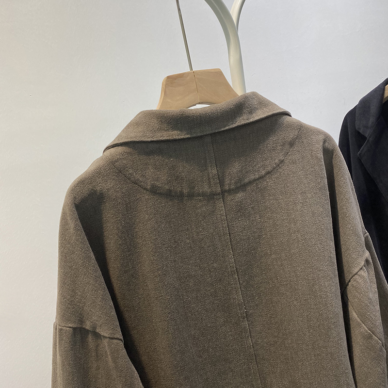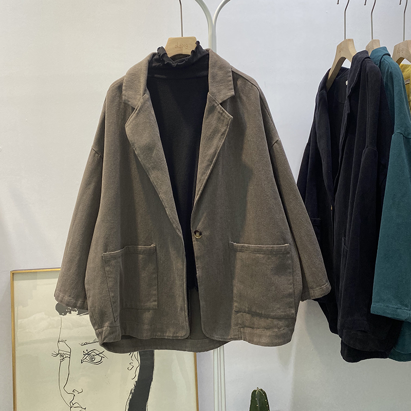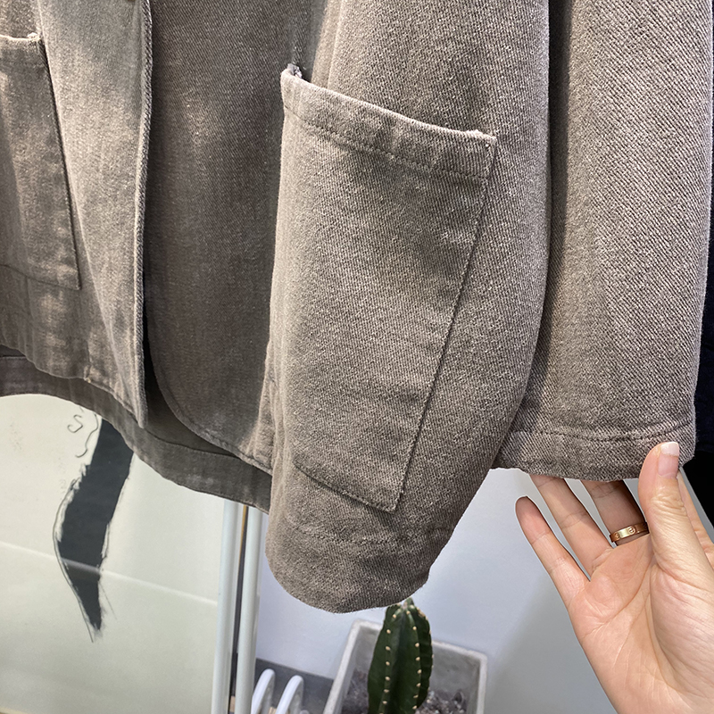 빈티지 트윌 코튼 재킷 여성용 긴팔 2024 가을 느슨한 작은 세트 V-넥 재킷 트렌디 재킷스토어 가기