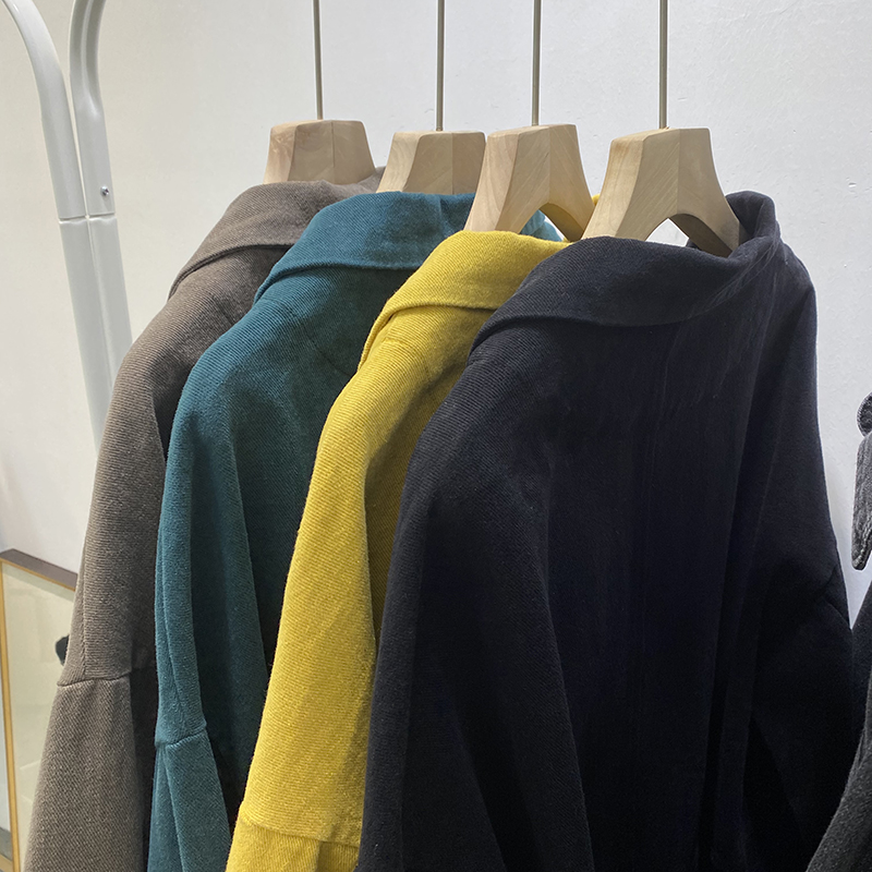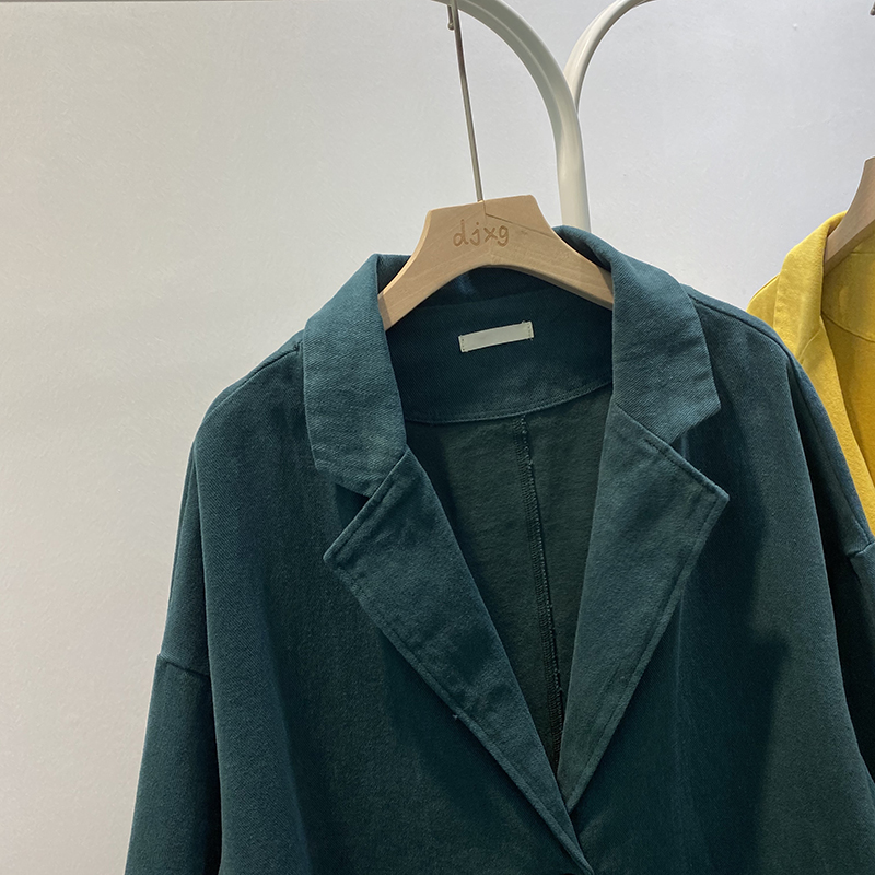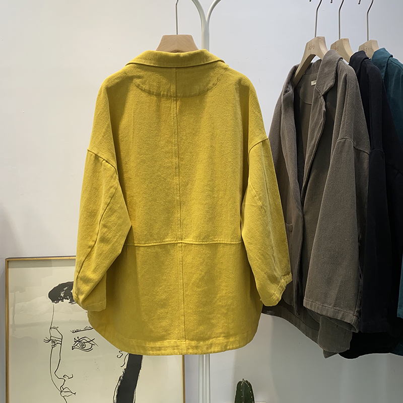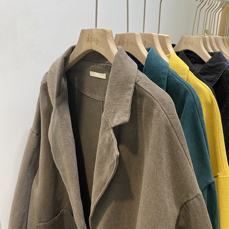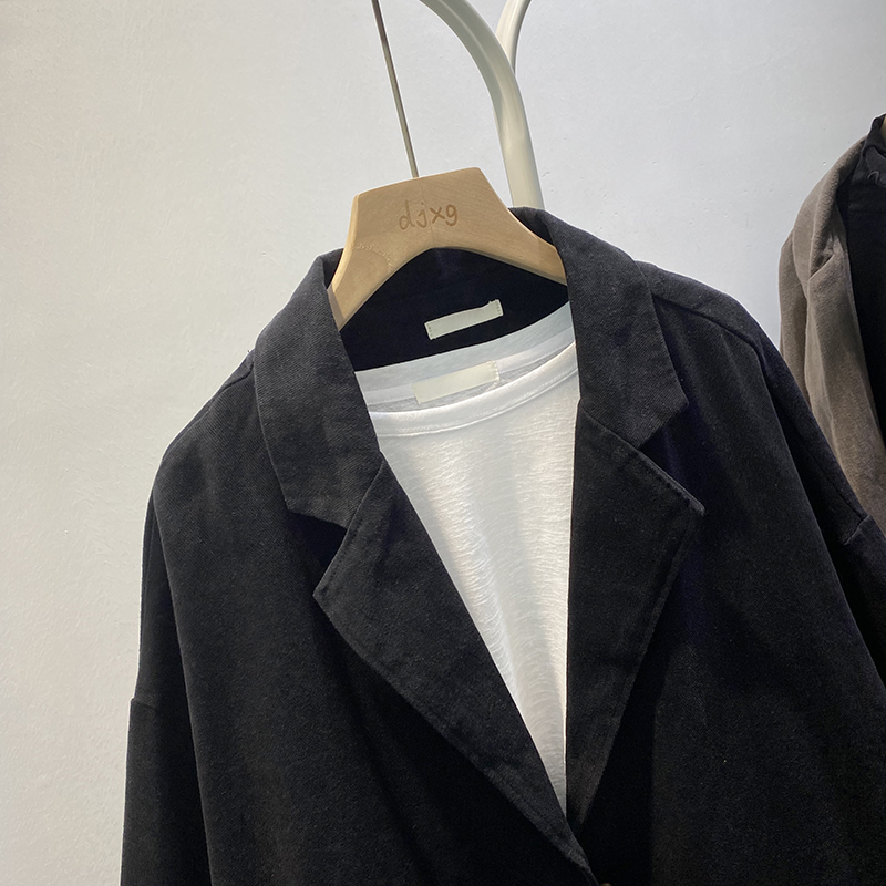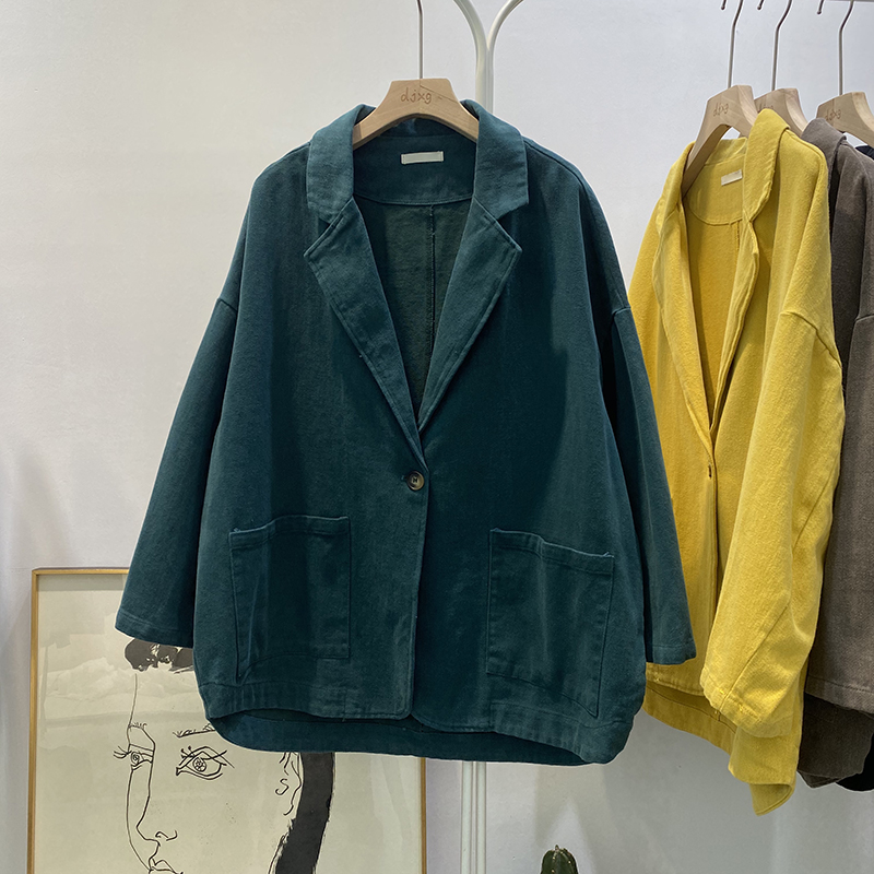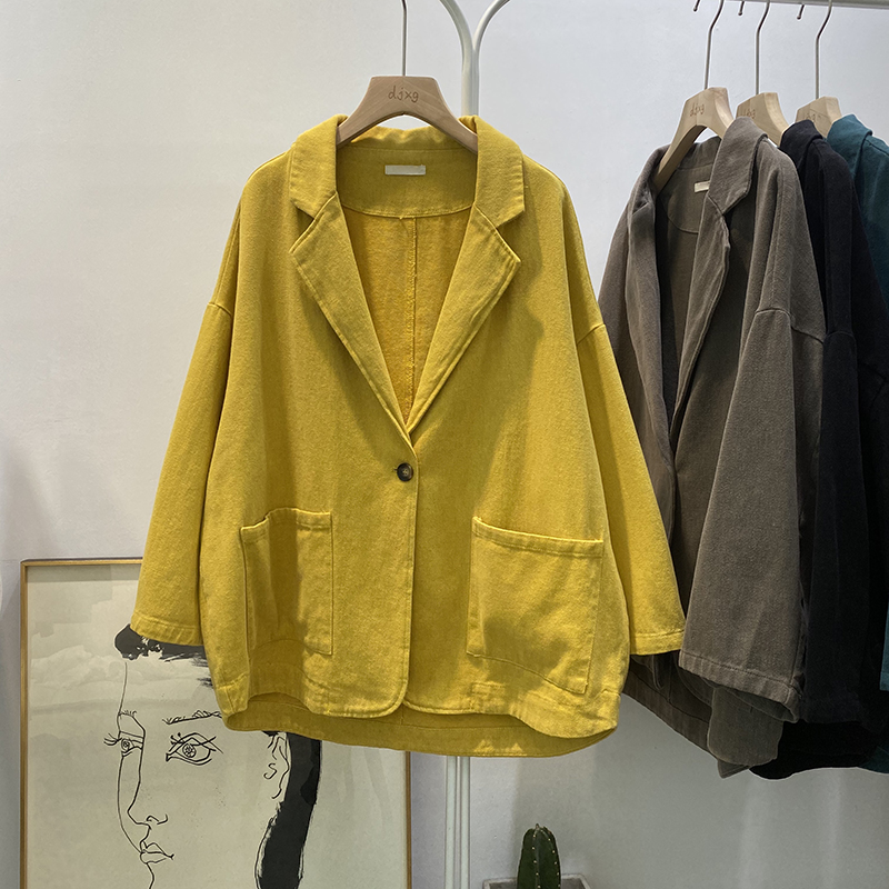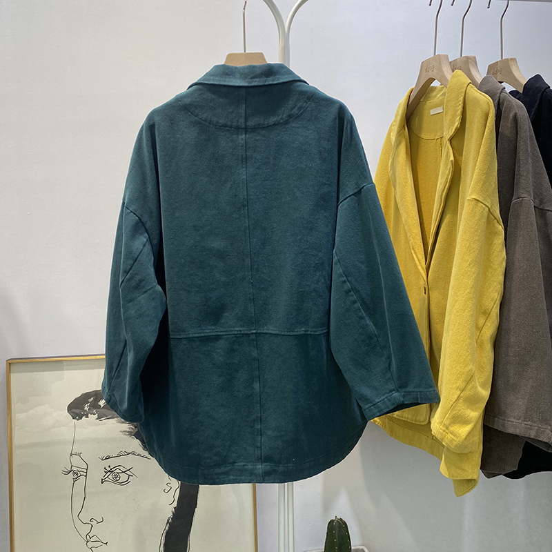 빈티지 트윌 코튼 재킷 여성용 긴팔 2024 가을 느슨한 작은 세트 V-넥 재킷 트렌디 재킷스토어 가기