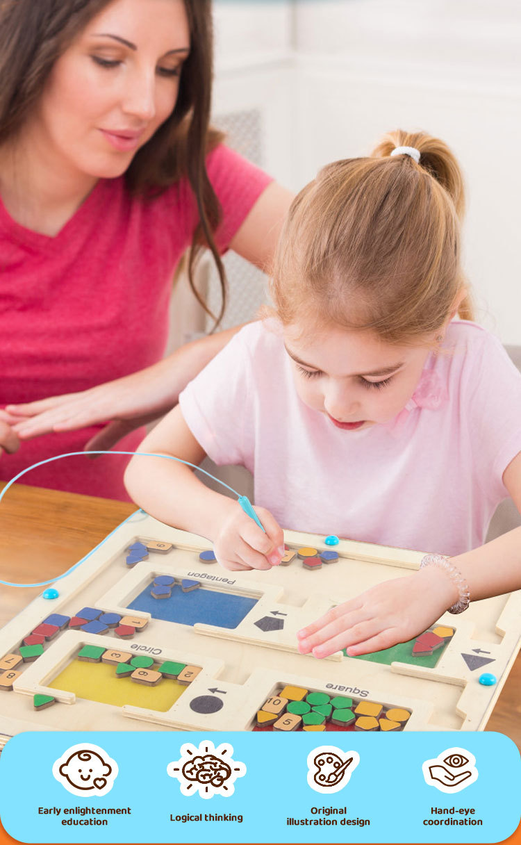 나무 조기 교육 장난감 어린이 4 색 몬테소리 논리적 사고 펜 운반 파워 컬러 기하학적 자기 구슬 보드스토어 가기