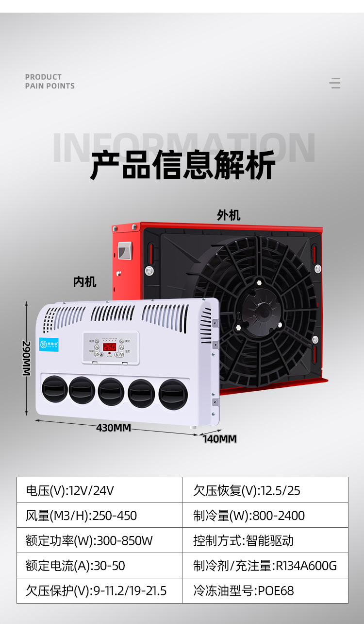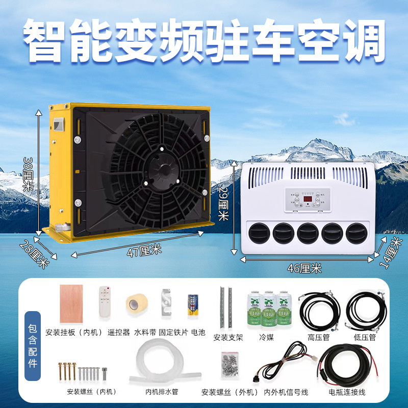 주차 전기 에어컨 자동차 24v 대형 트럭 숨겨진 버전 DC 인버터 12v 냉동 자동차 로더 업그레이드스토어 가기