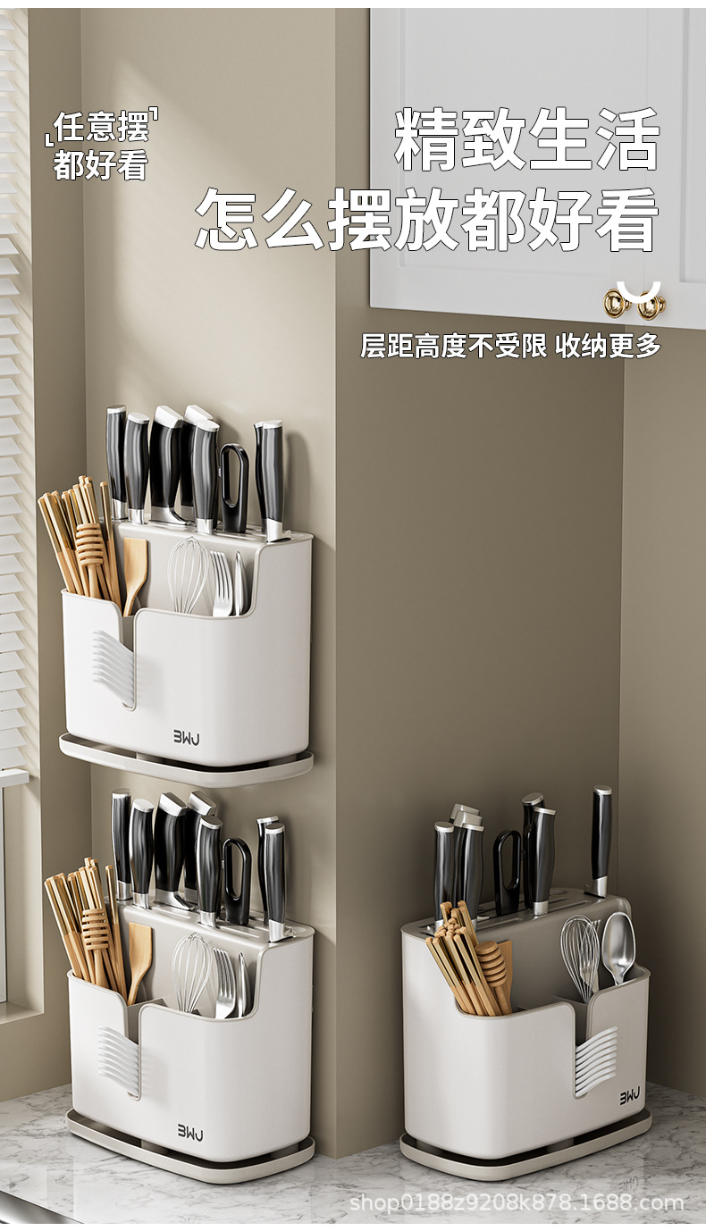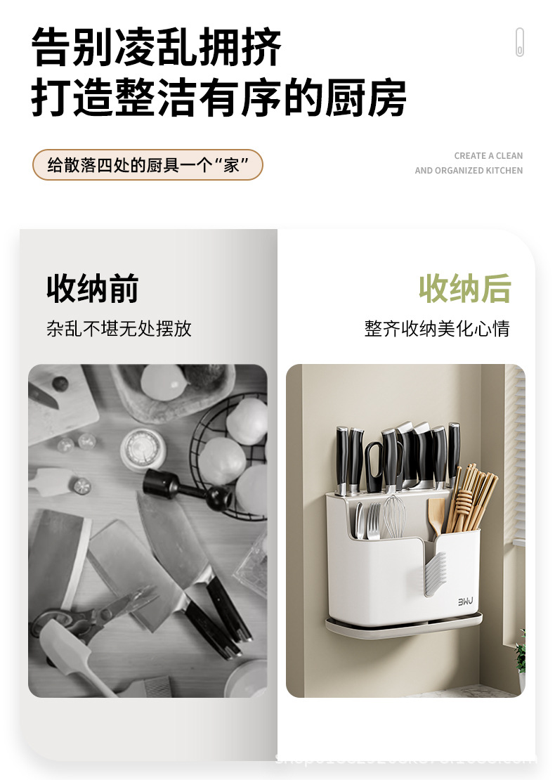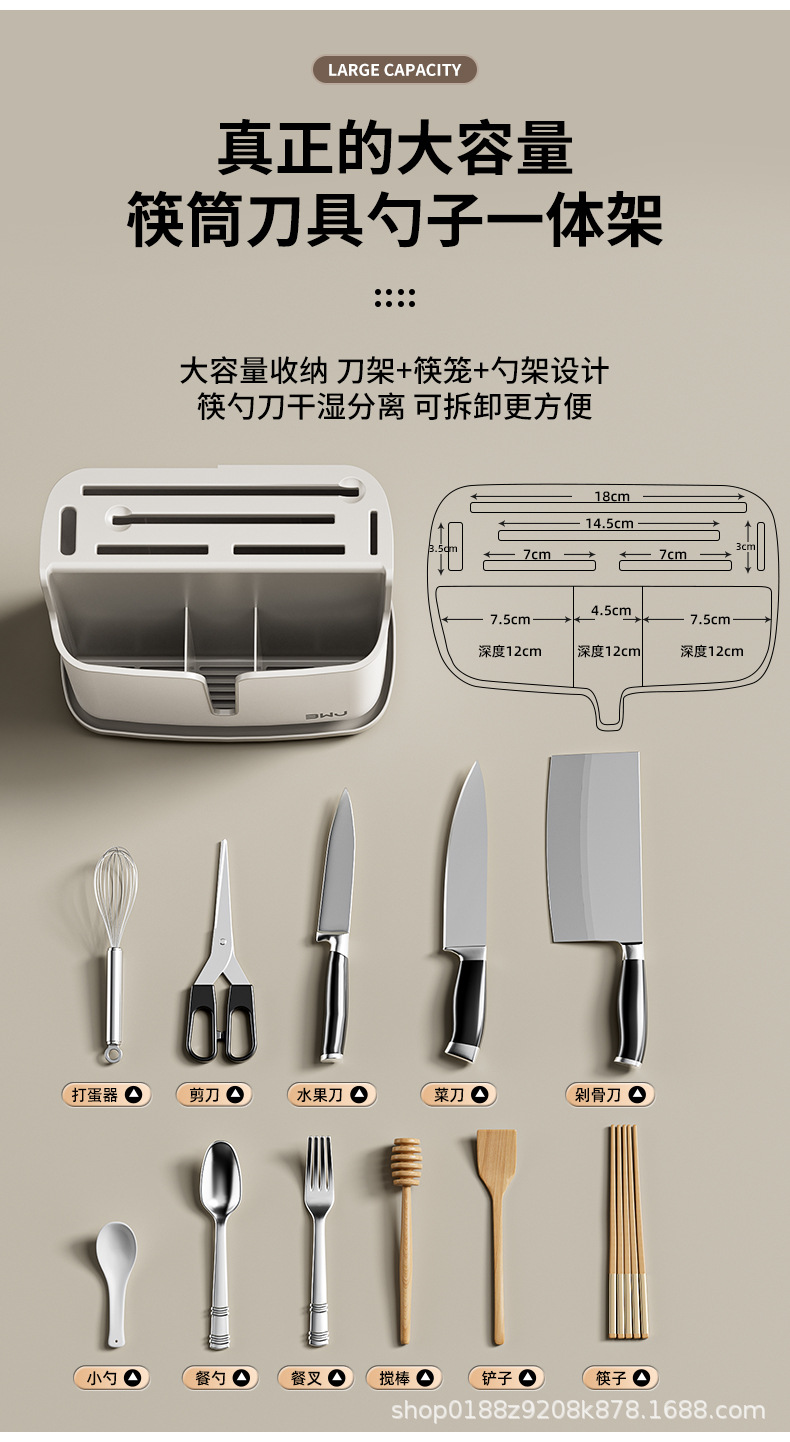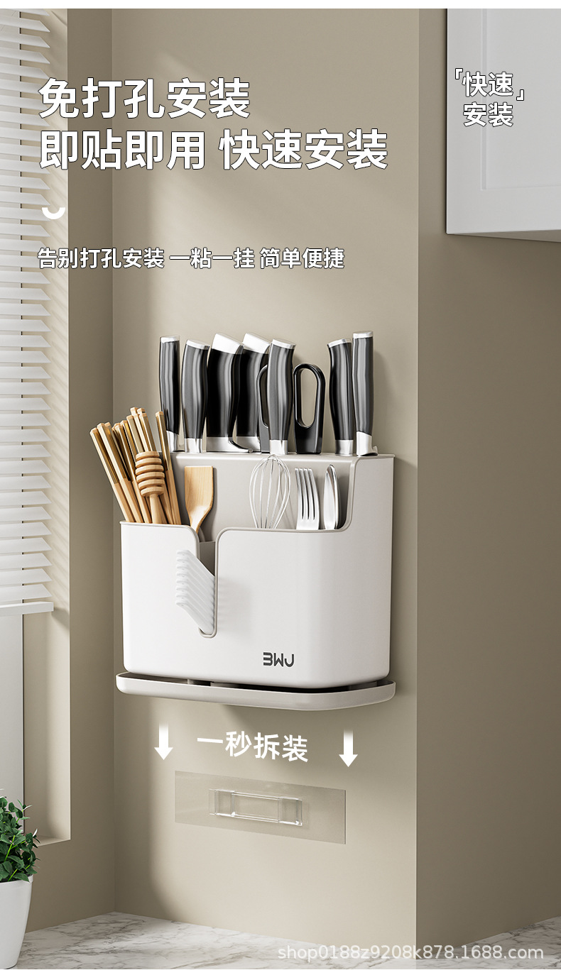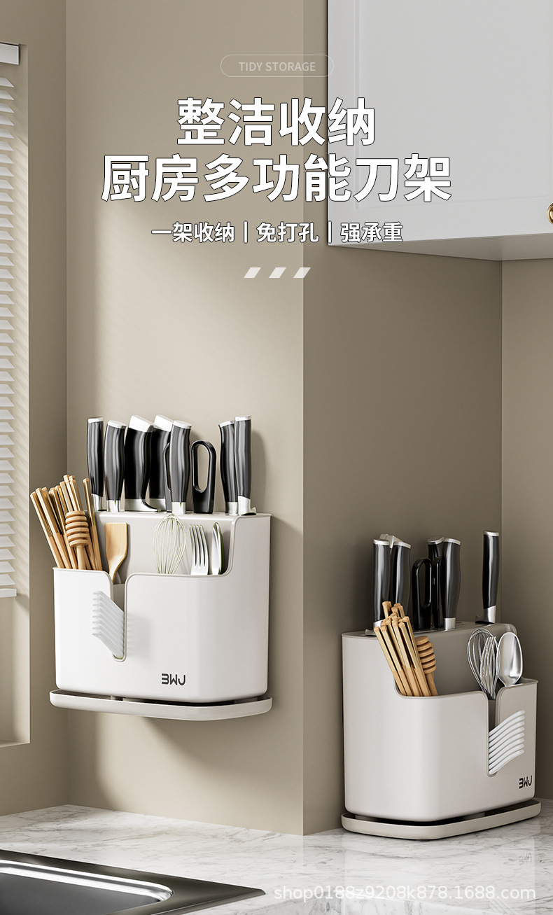 주방 젓가락 케이지 벽 매달린 칼 랙 젓가락 케이지 통합 스토리지 랙 다기능 젓가락 튜브 배수 보관 랙 바닥