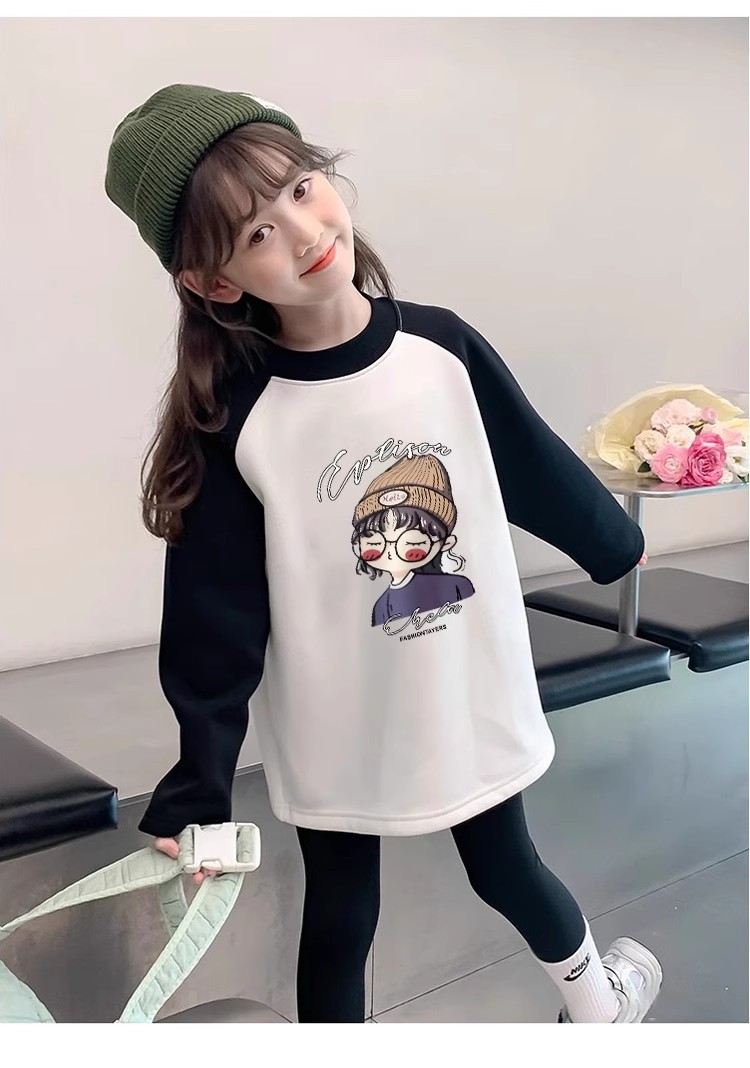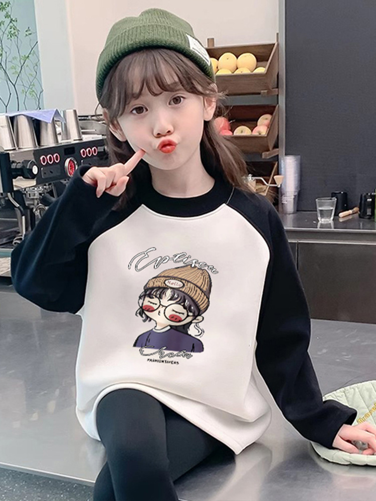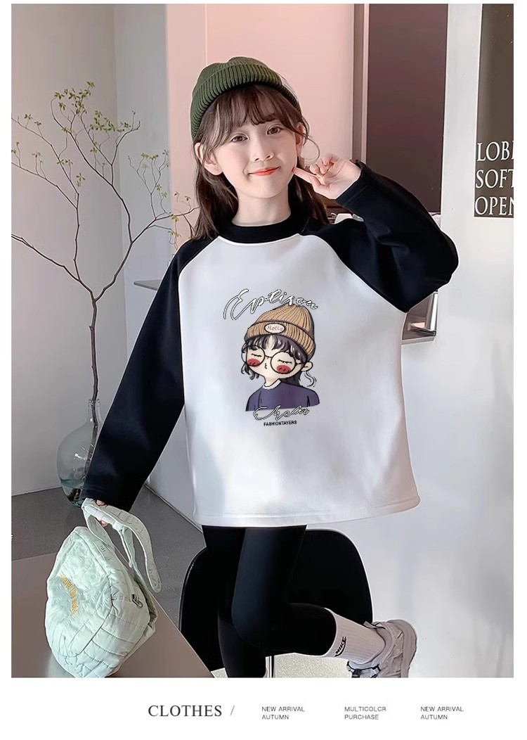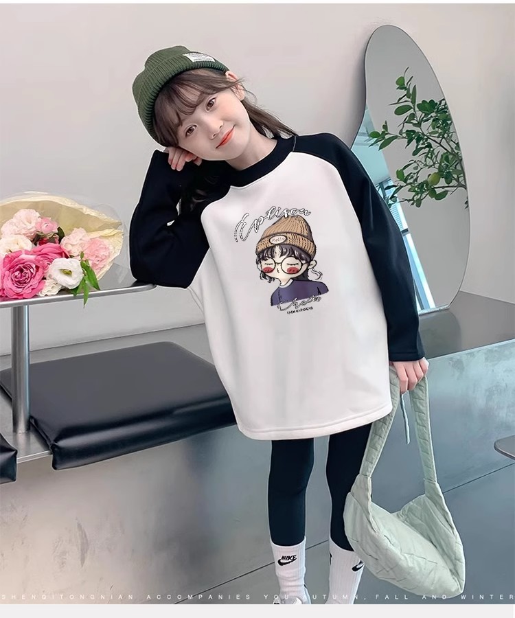 【纯棉】女童撞色长袖T恤2024秋季新款儿童洋气卡通小女孩百搭上스토어 가기
