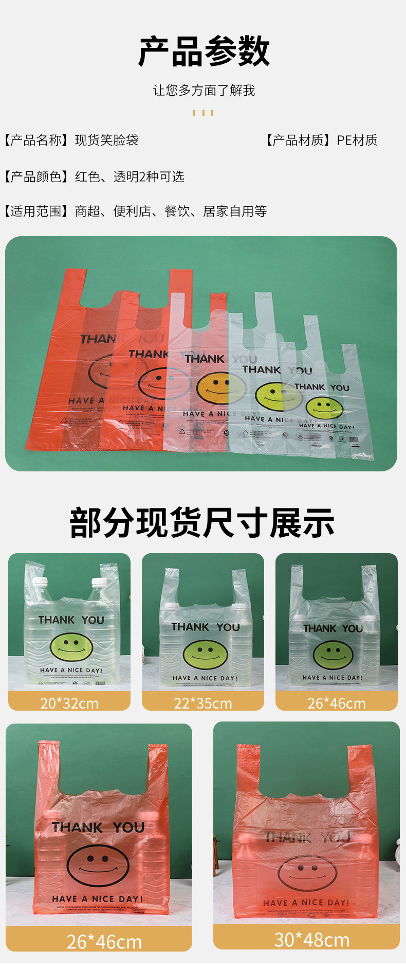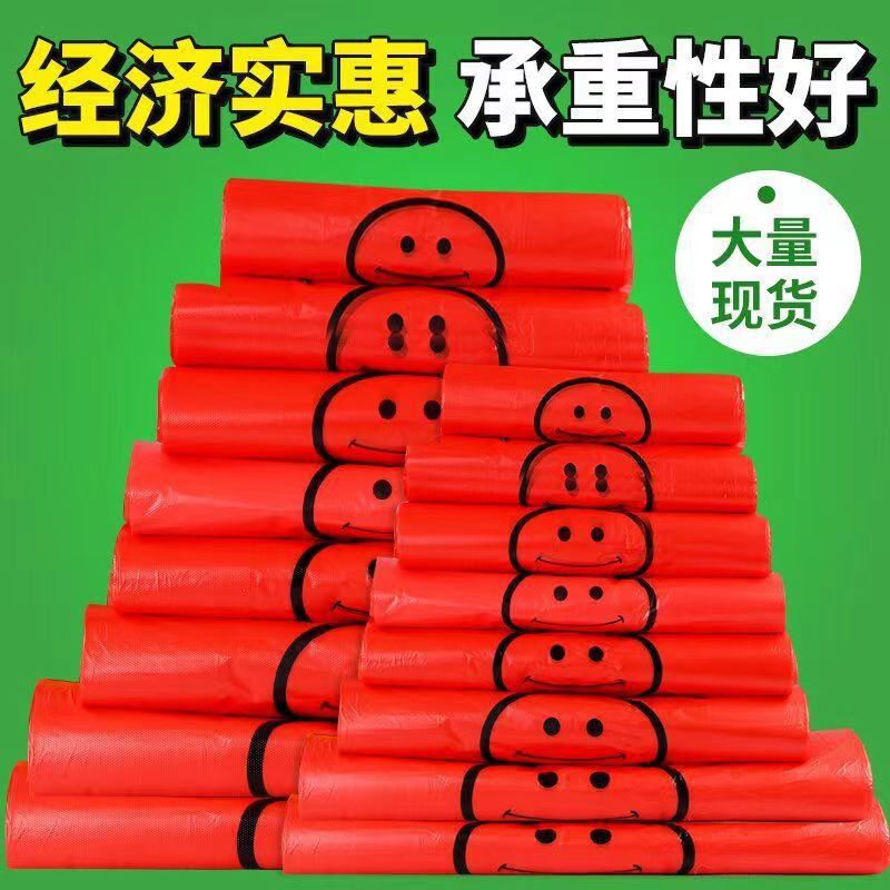 레드 웃는 얼굴 푸지 조끼 가방 슈퍼마켓 과일 쇼핑백 레드 푸지 가방 축제 웨딩 휴대용 포장 가방스토어 가기