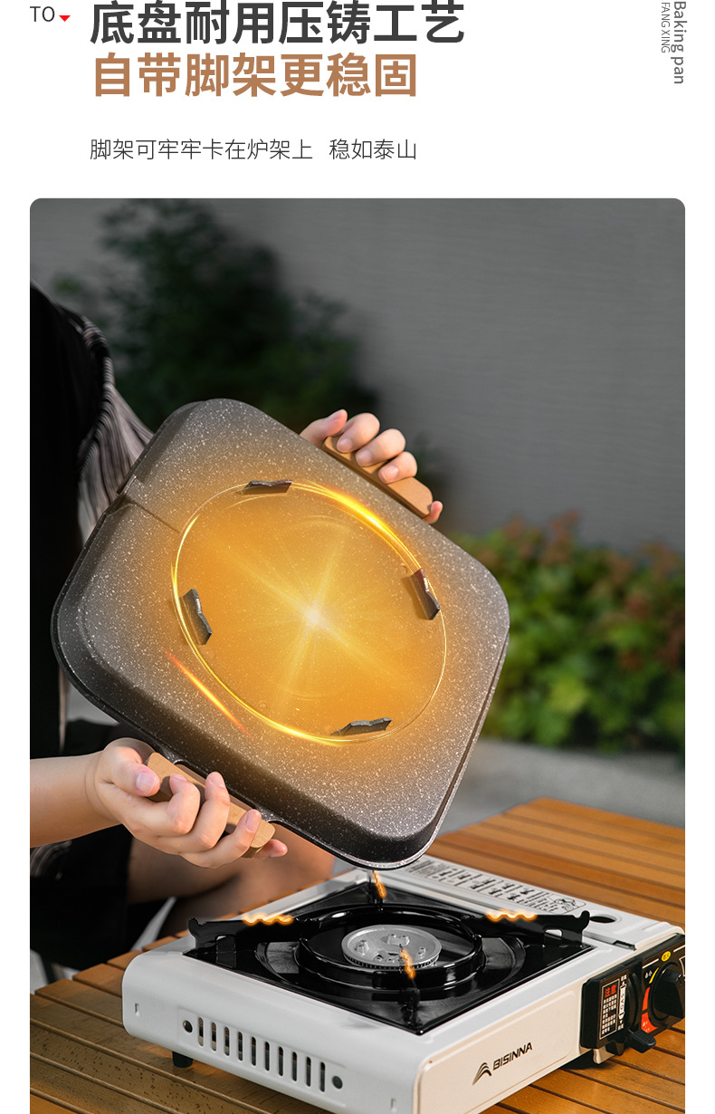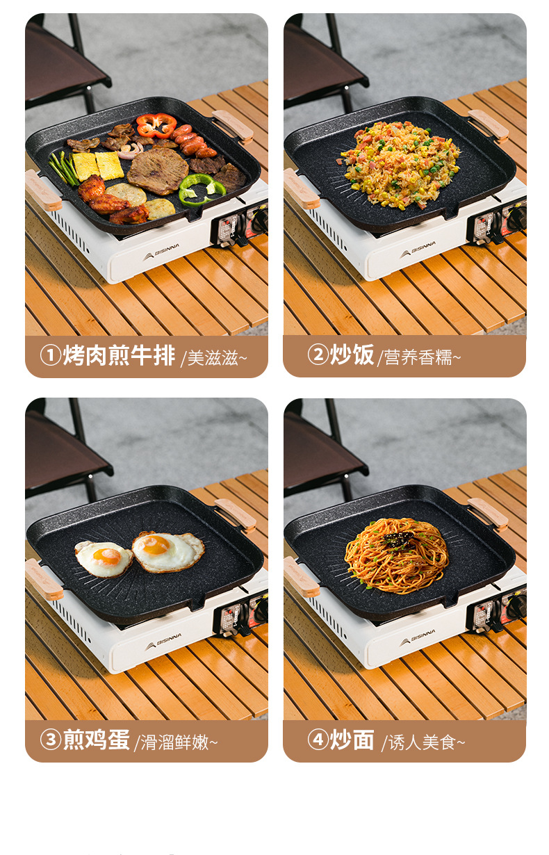 Beishan Wolf 플랫 바닥 바베큐 팬 카트릭스 캠핑 프라이팬 바베큐 플레이트 야외 비 스틱 프라이팬 프라이팬 미니 팬 오일 유출스토어 가기
