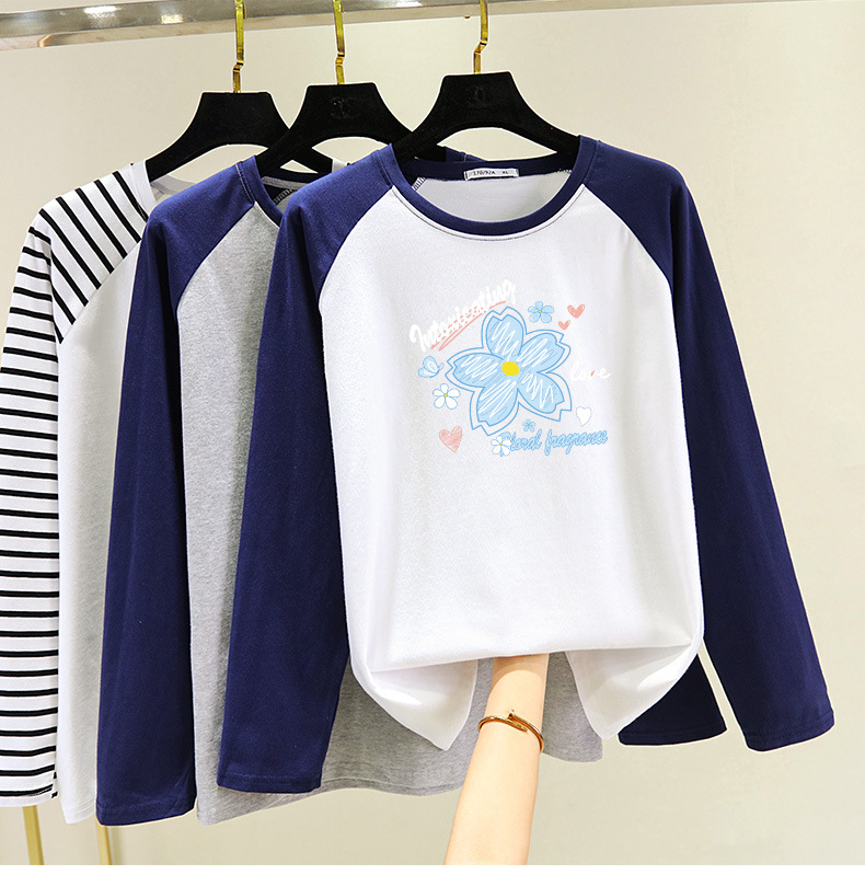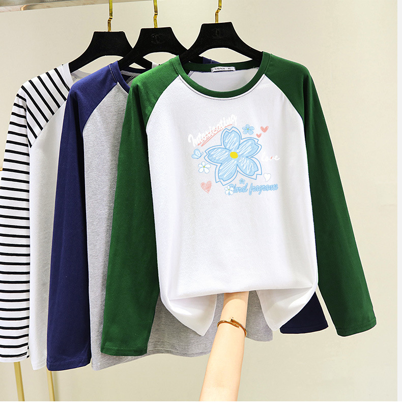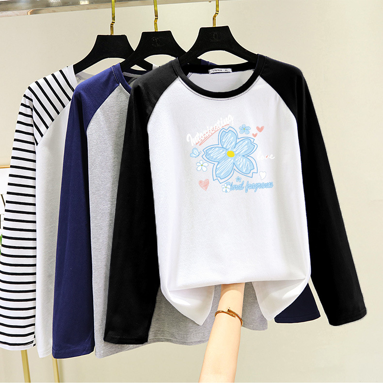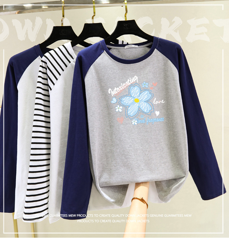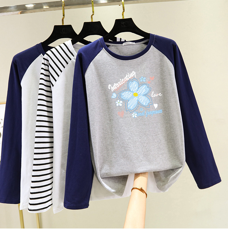 가을 플러스 사이즈 여성용 코튼 긴팔 티셔츠 여성용 통통한 소녀 어깨 소매 디자인 틈새 하이 엔드 패션 탑스토어 가기