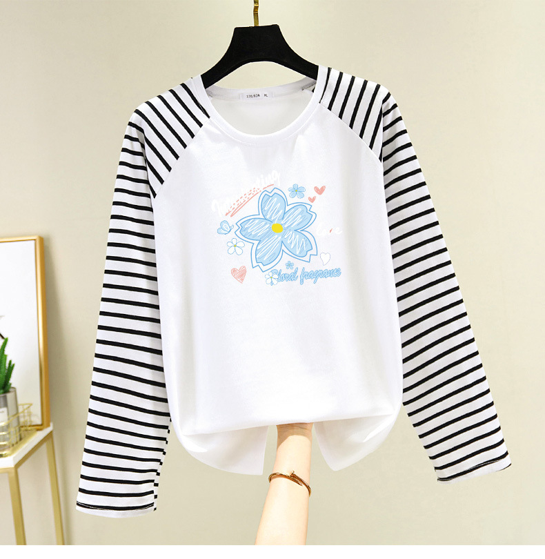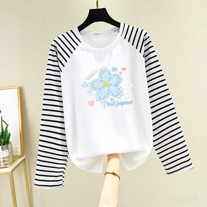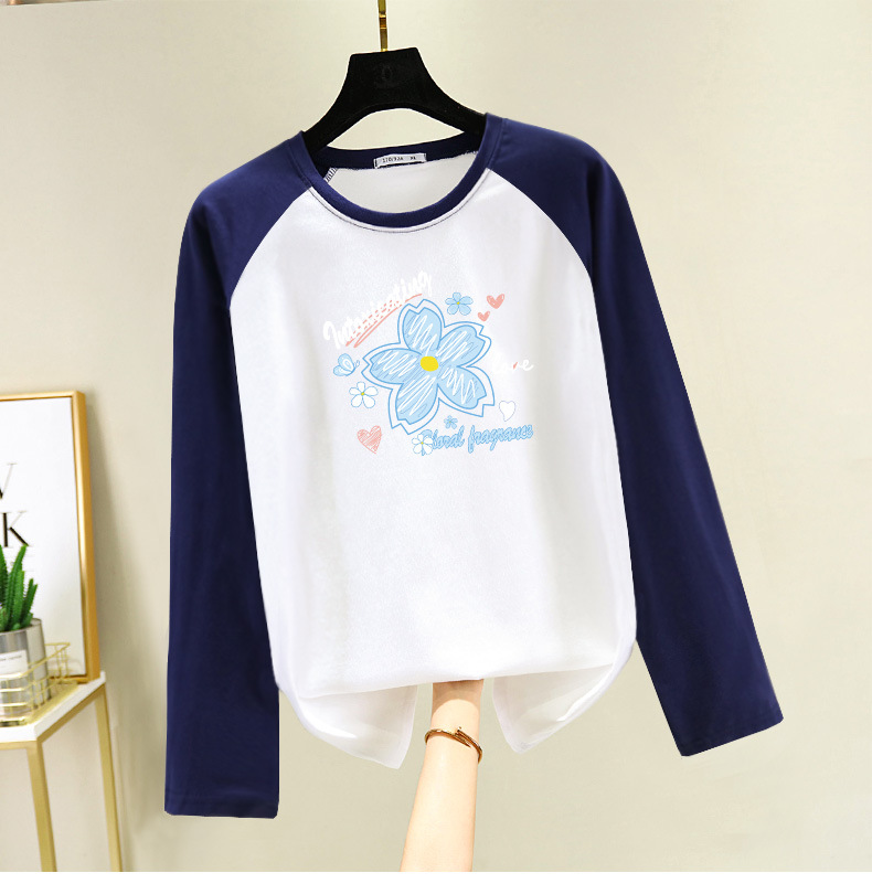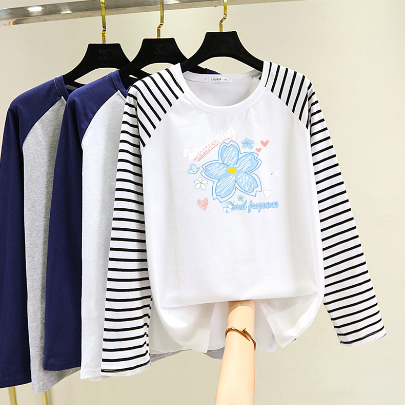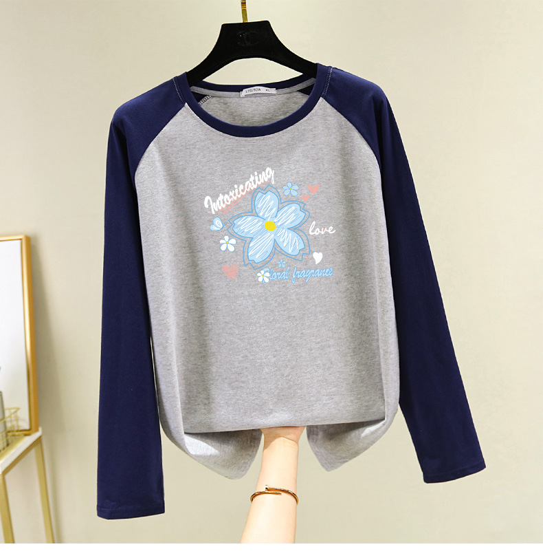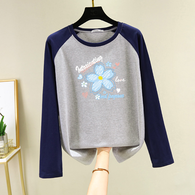 가을 플러스 사이즈 여성용 코튼 긴팔 티셔츠 여성용 통통한 소녀 어깨 소매 디자인 틈새 하이 엔드 패션 탑스토어 가기
