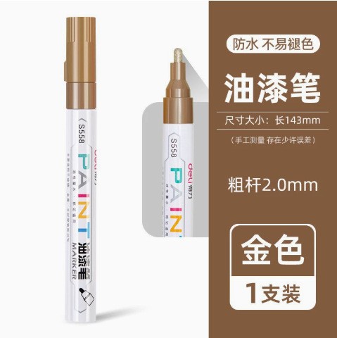 델리 S558 페인트 펜 골드 및 실버 블랙 마크 펜 타이어 수리 사인 회의 유리 2.0 두꺼운 머리 수리스토어 가기
