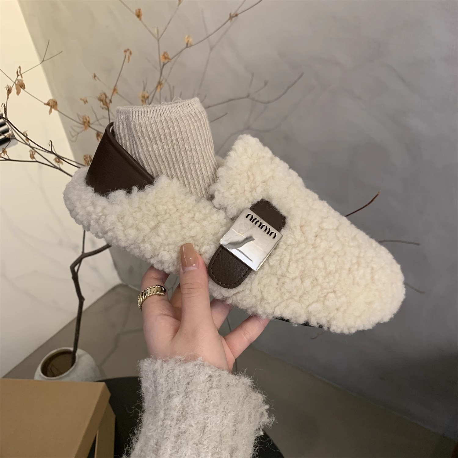 양고기 양모 신발 여성 2024 가을 새로운 한국 스타일 복고풍 플랫 슬립 온 신발 여성 캐주얼 신발