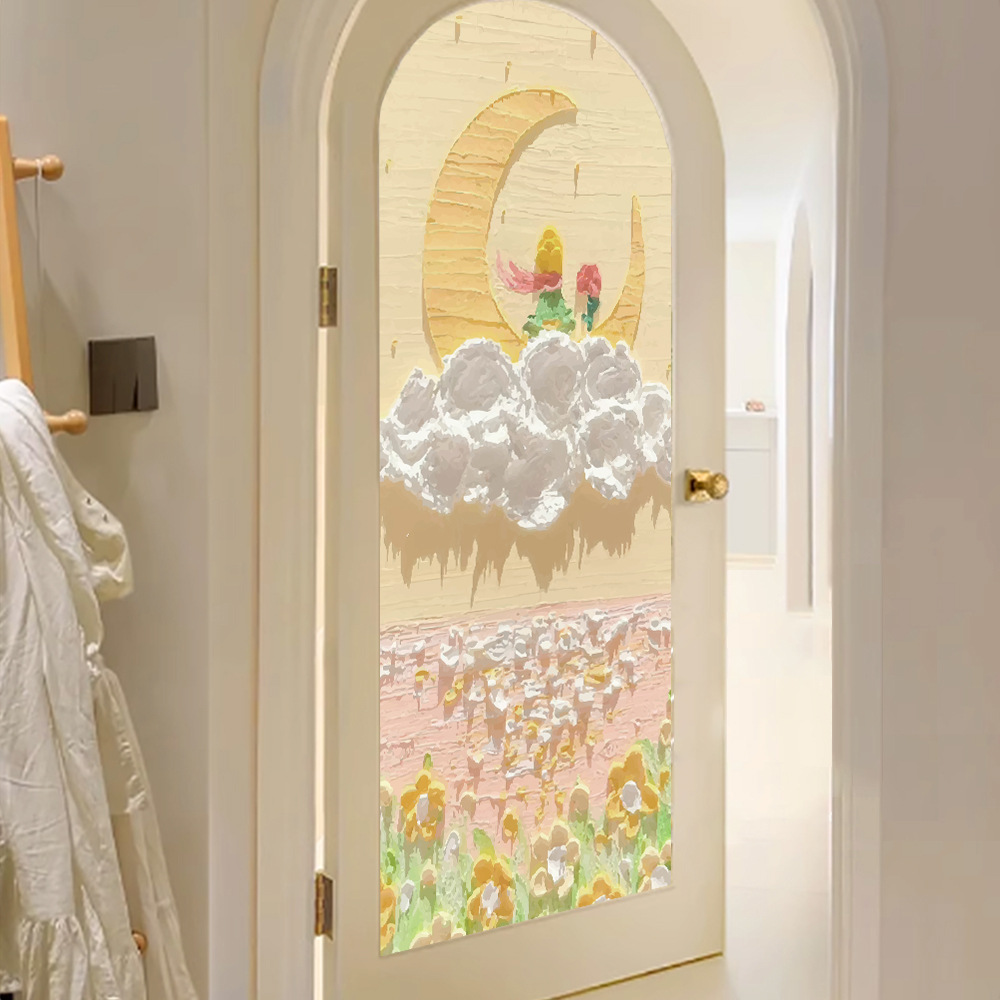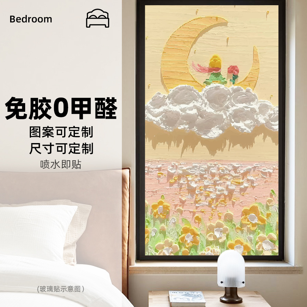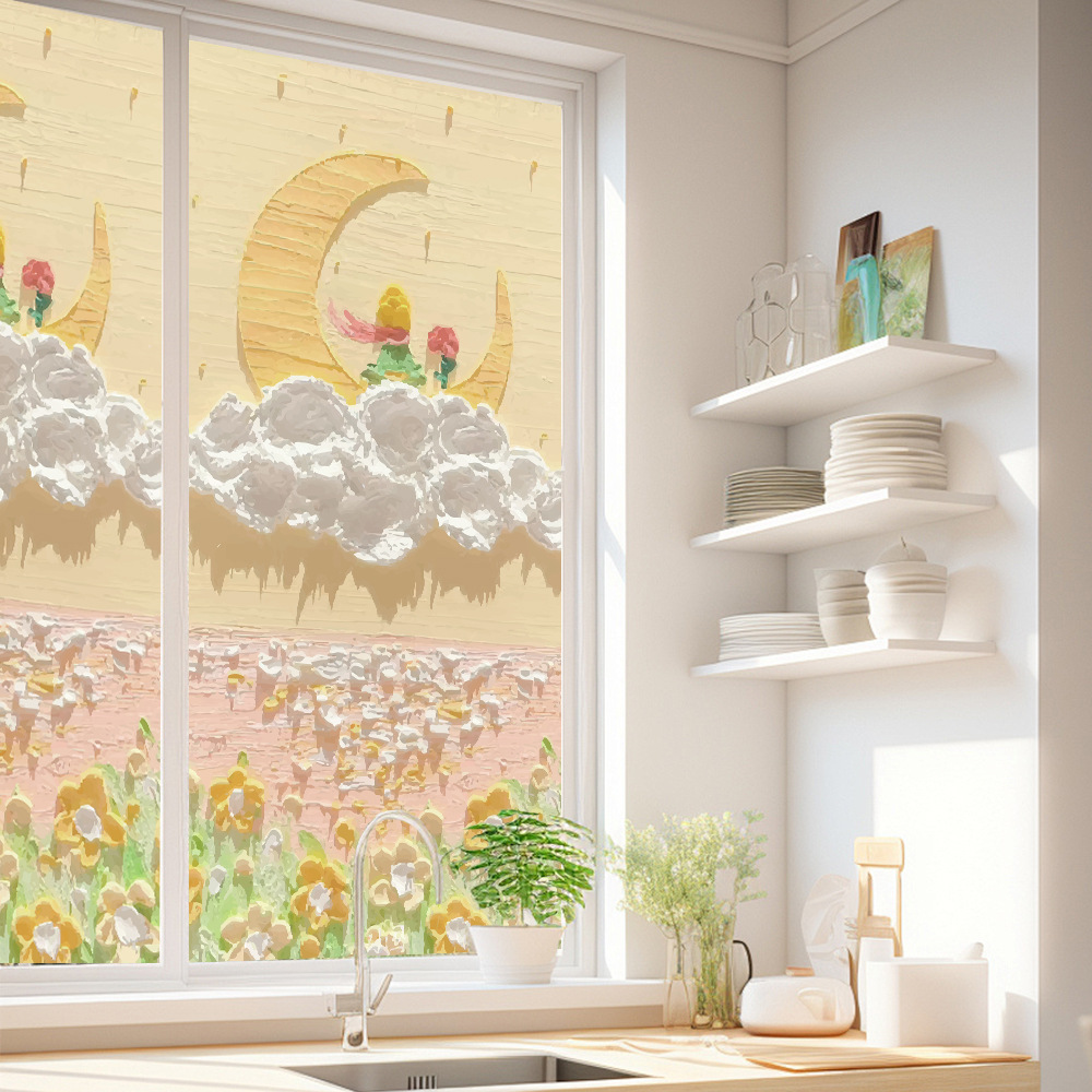 Yiyao BLT5118 만화 어린이 달 유리 스티커 욕실 유리 문 접착제-없는 정전기 스티커스토어 가기