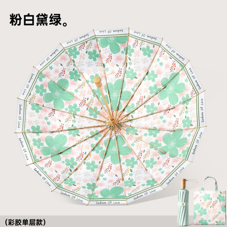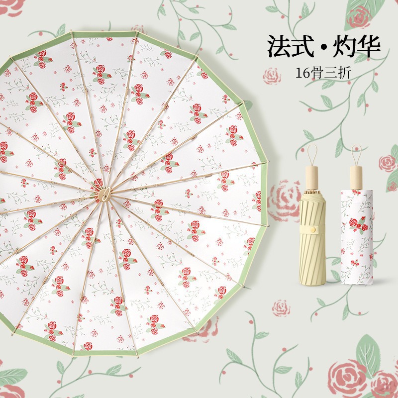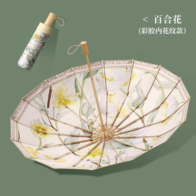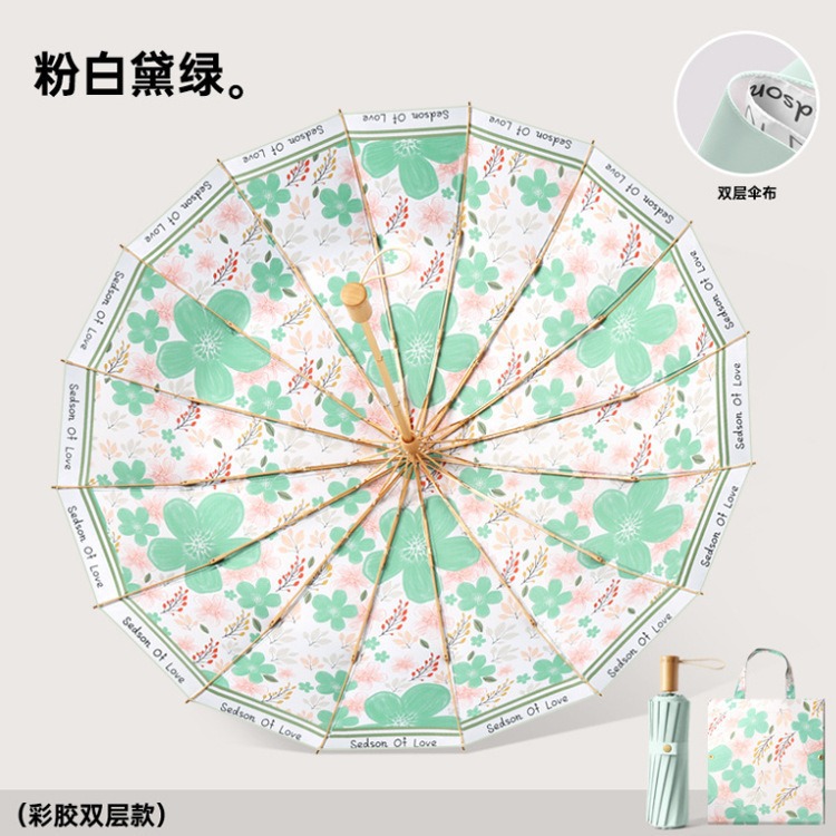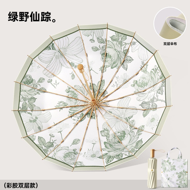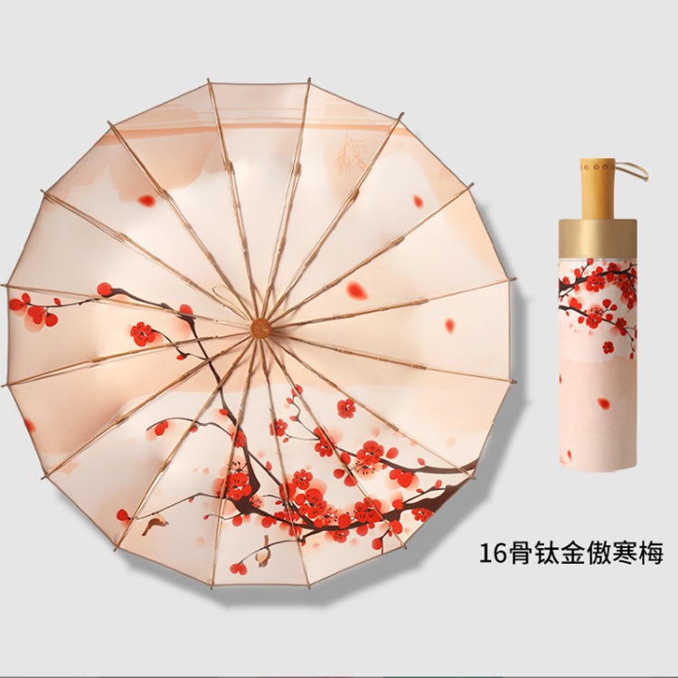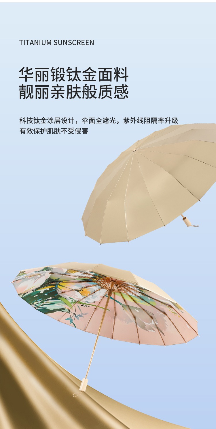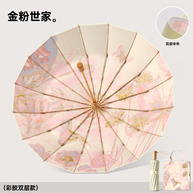 3 배 티타늄 자외선 차단제 16 뼈 접착제 선 스크린 접이식 우산 차양 우산 빈티지 나무 손잡이 선물 우산 공장 재고스토어 가기