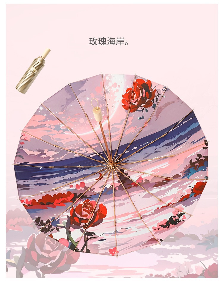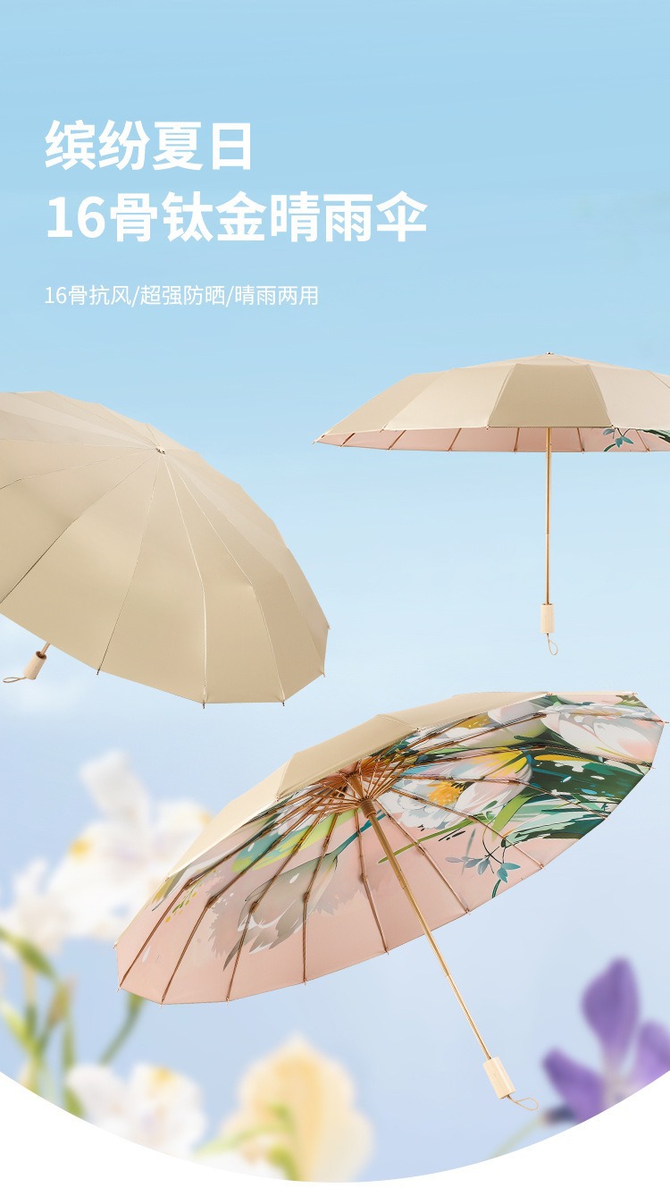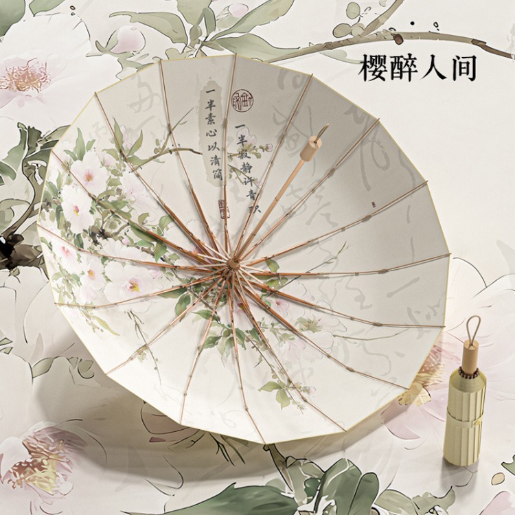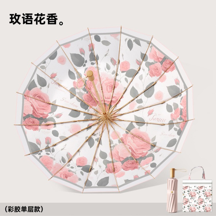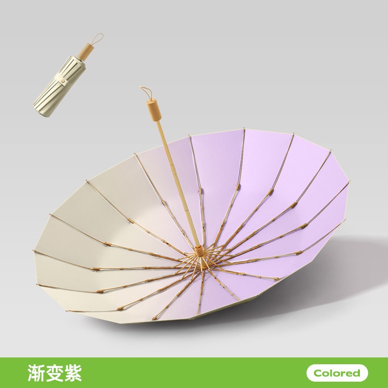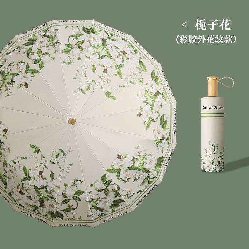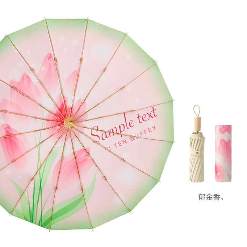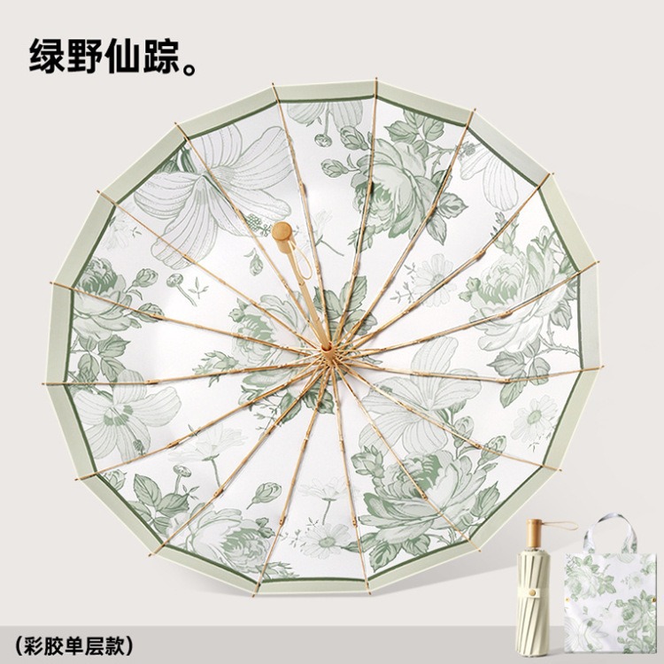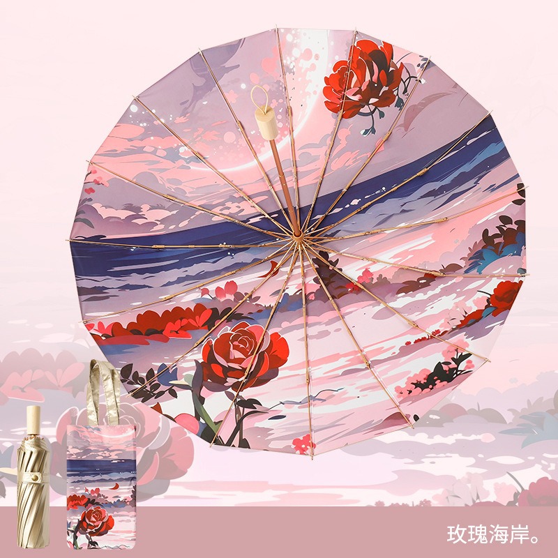 3 배 티타늄 자외선 차단제 16 뼈 접착제 선 스크린 접이식 우산 차양 우산 빈티지 나무 손잡이 선물 우산 공장 재고스토어 가기