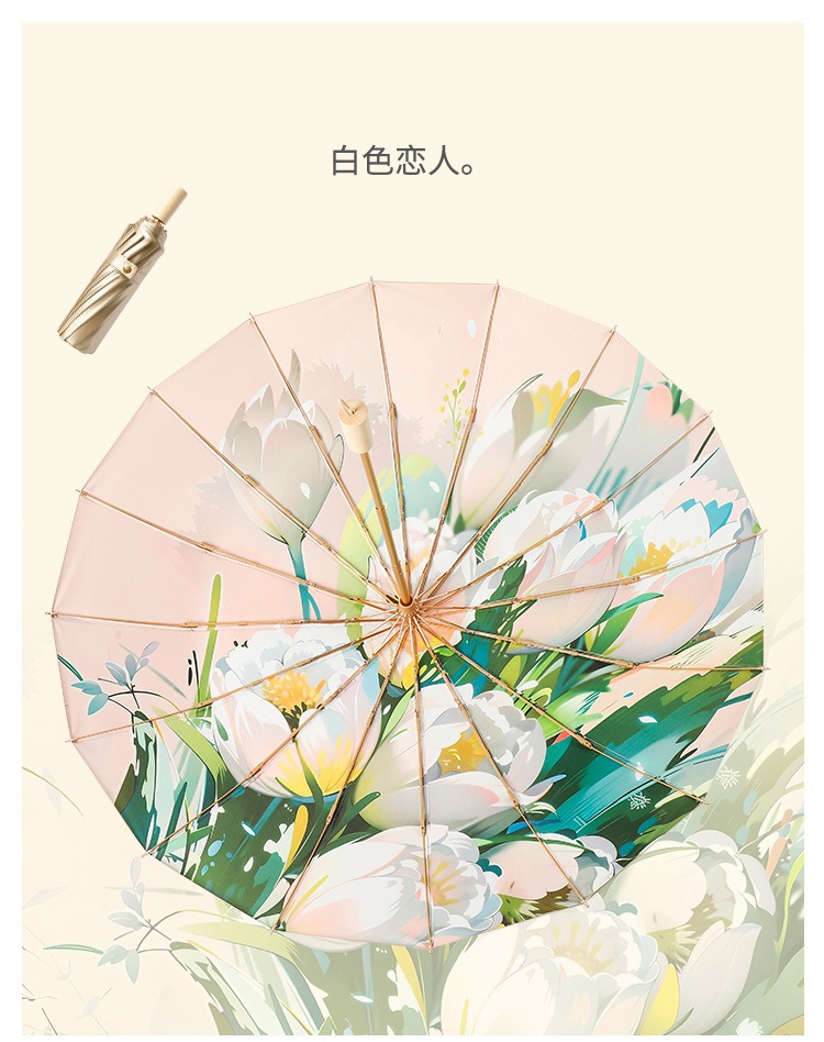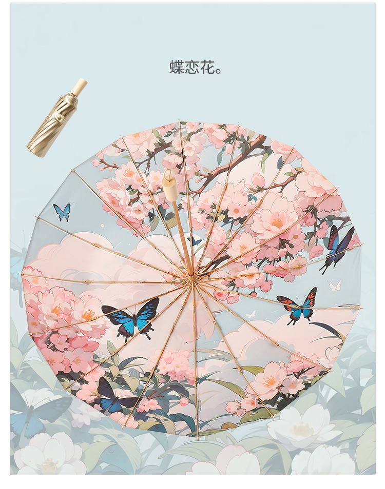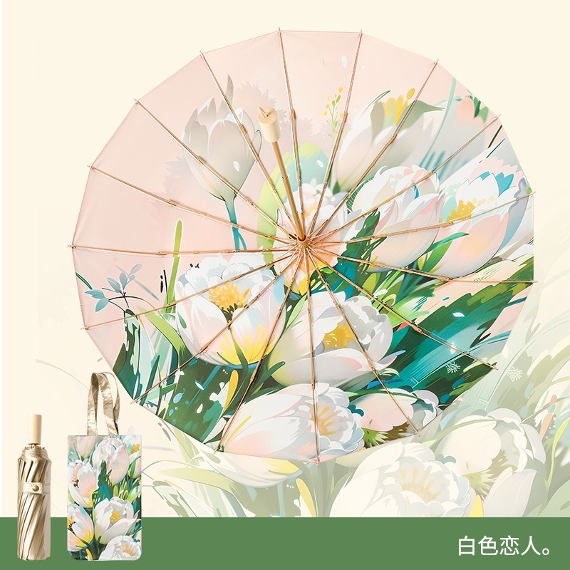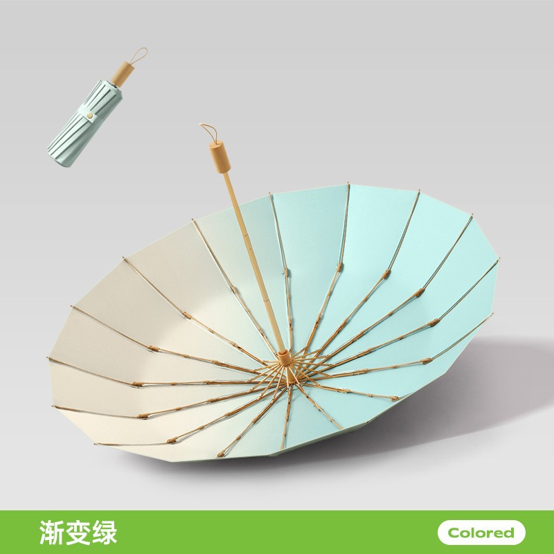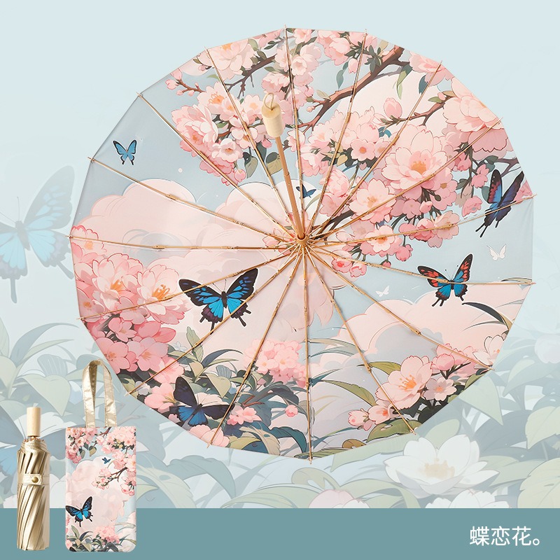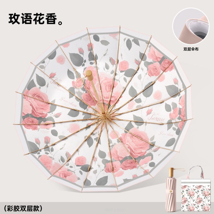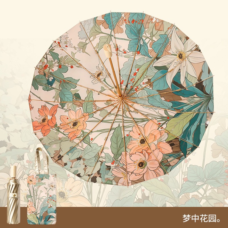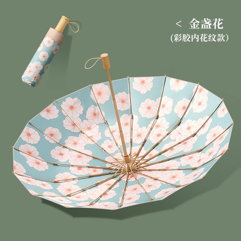 3 배 티타늄 자외선 차단제 16 뼈 접착제 선 스크린 접이식 우산 차양 우산 빈티지 나무 손잡이 선물 우산 공장 재고스토어 가기