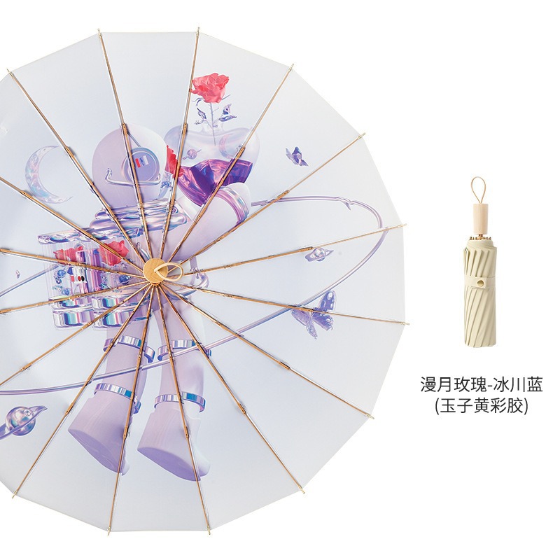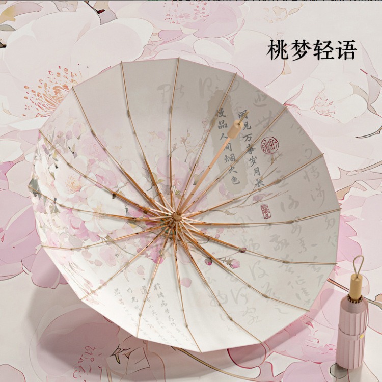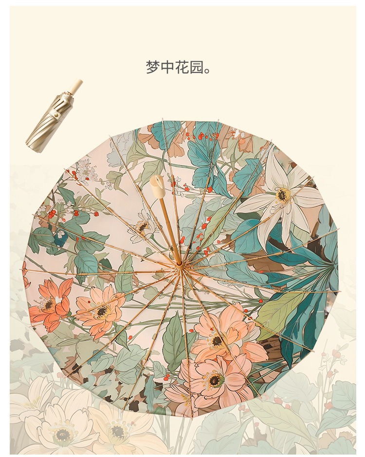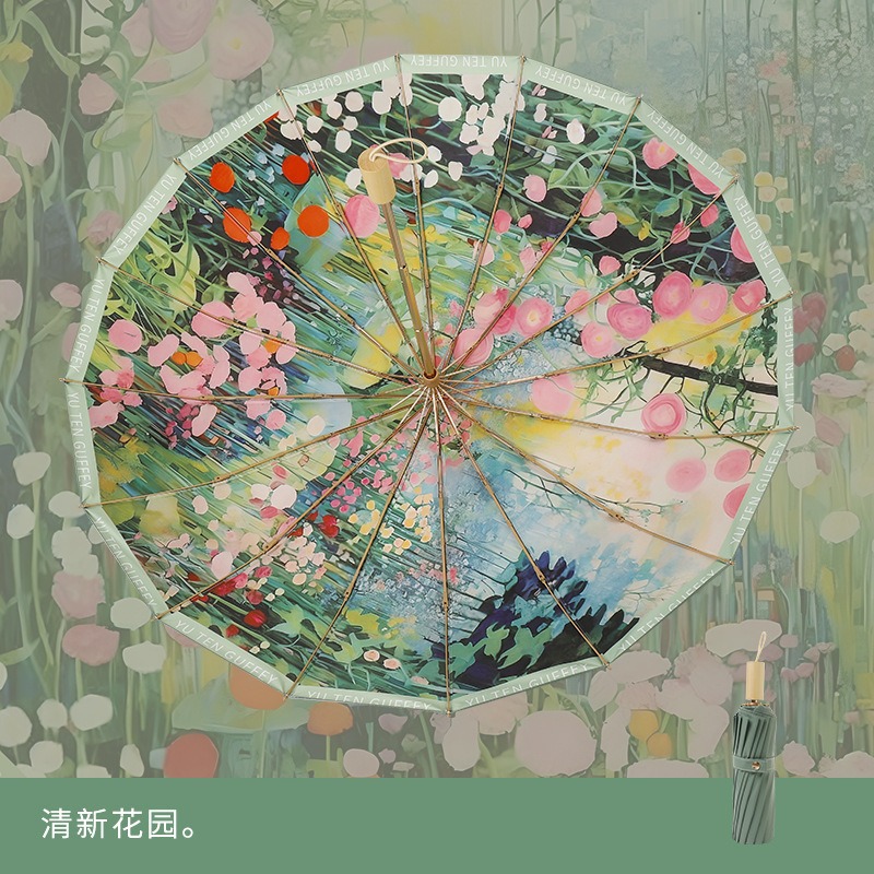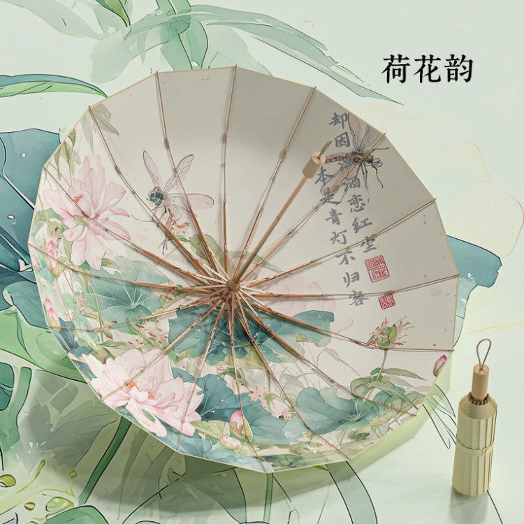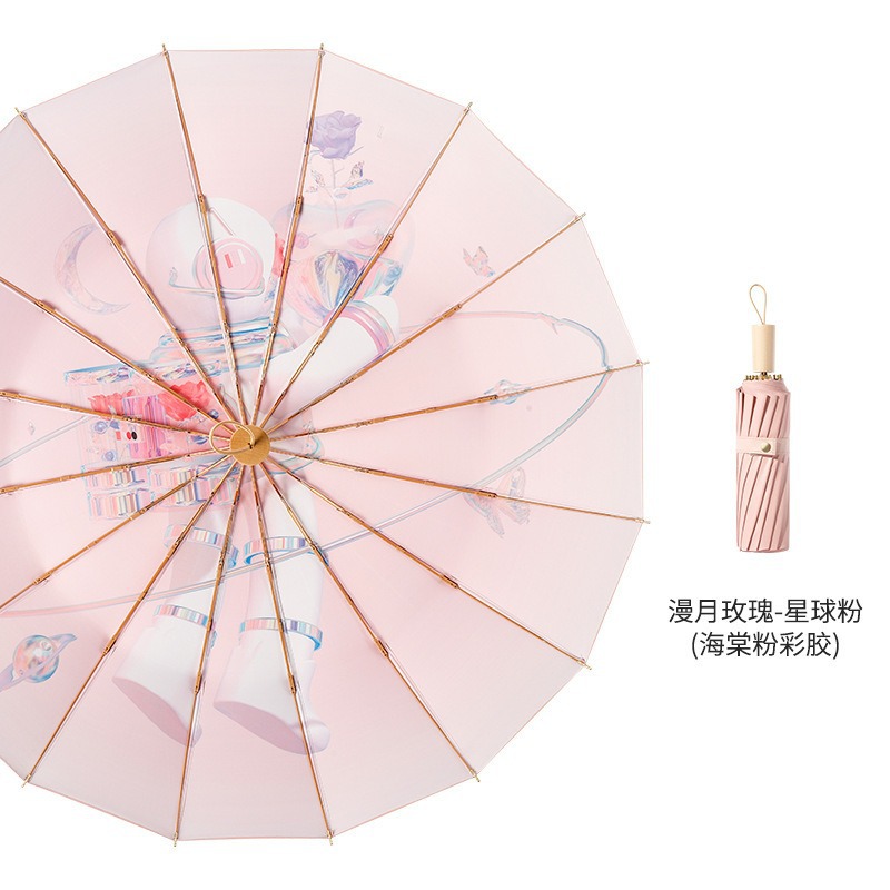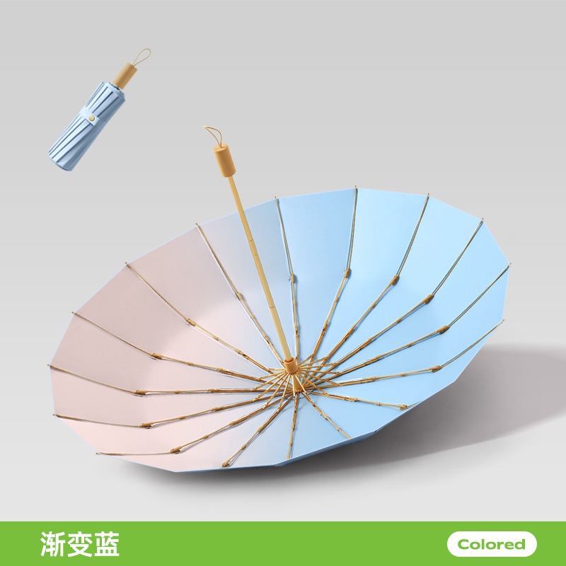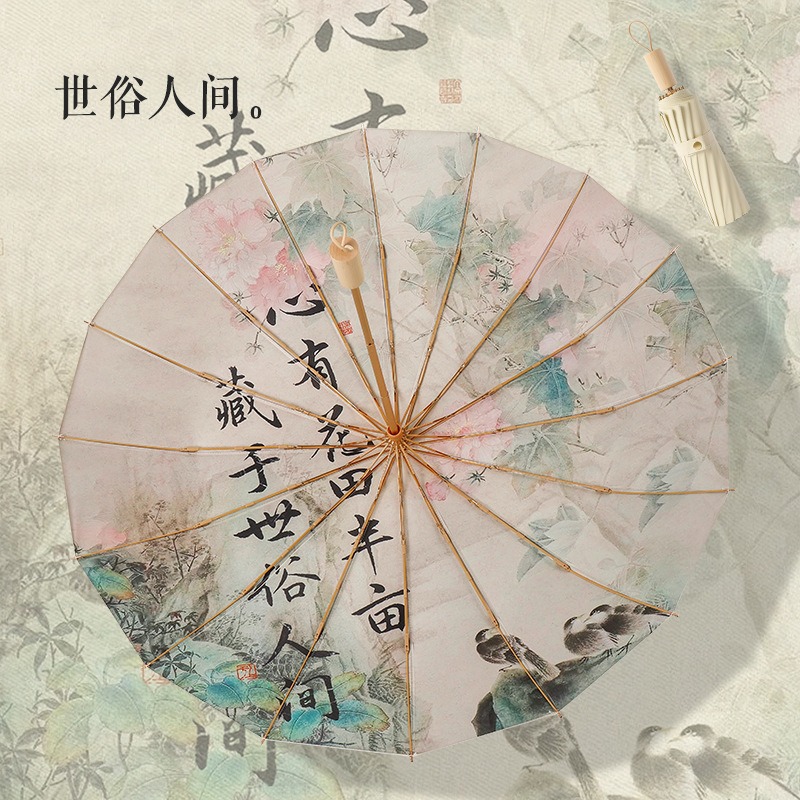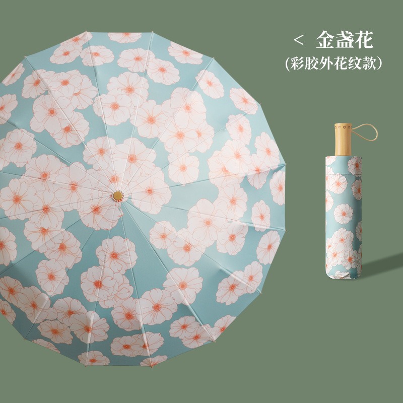 3 배 티타늄 자외선 차단제 16 뼈 접착제 선 스크린 접이식 우산 차양 우산 빈티지 나무 손잡이 선물 우산 공장 재고스토어 가기