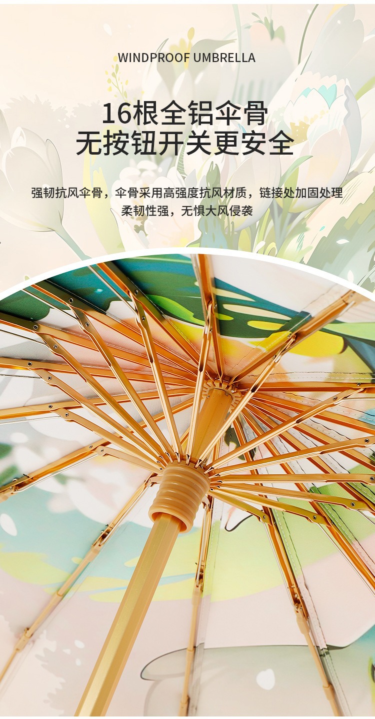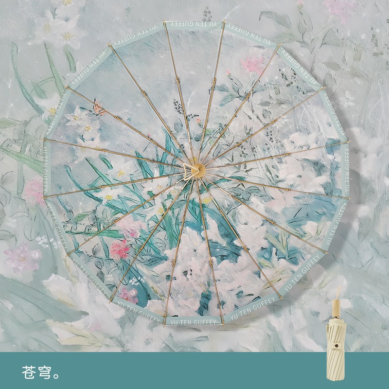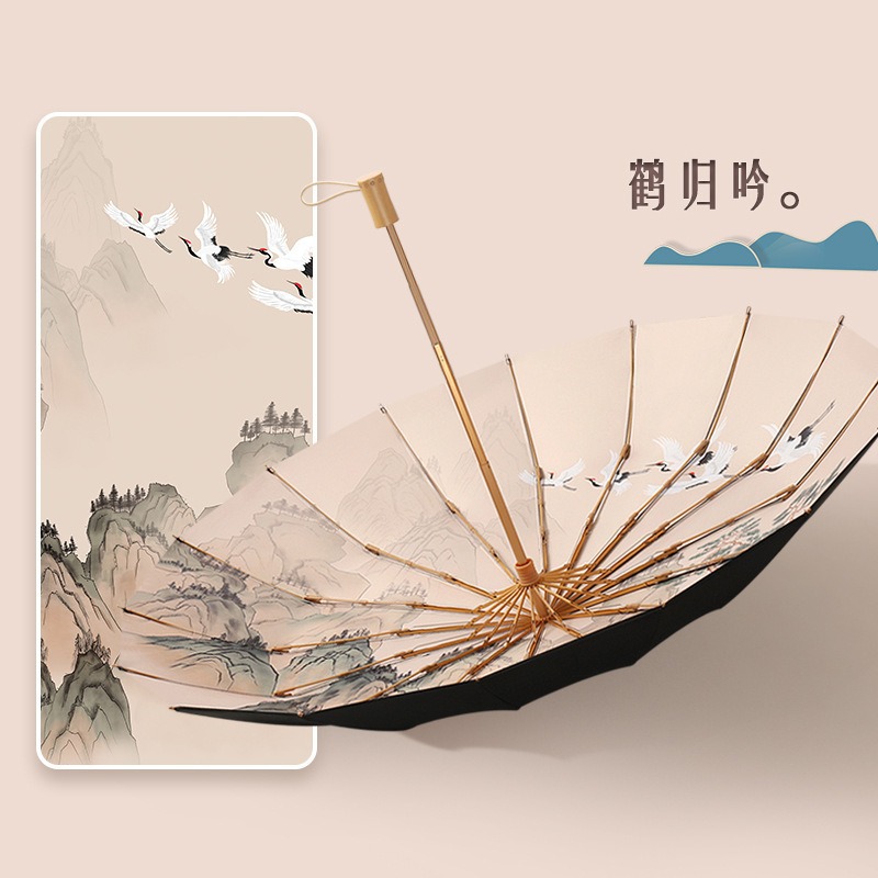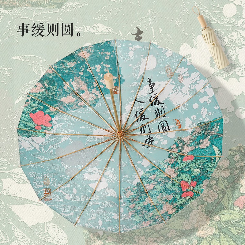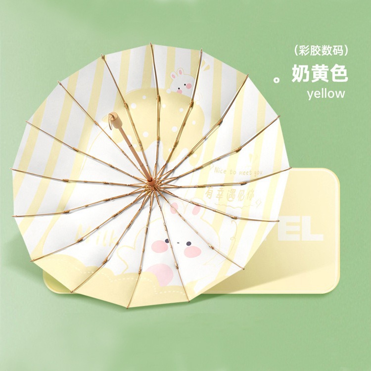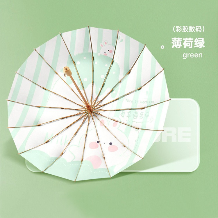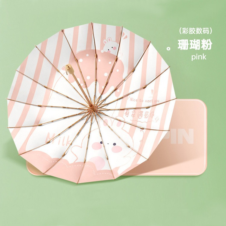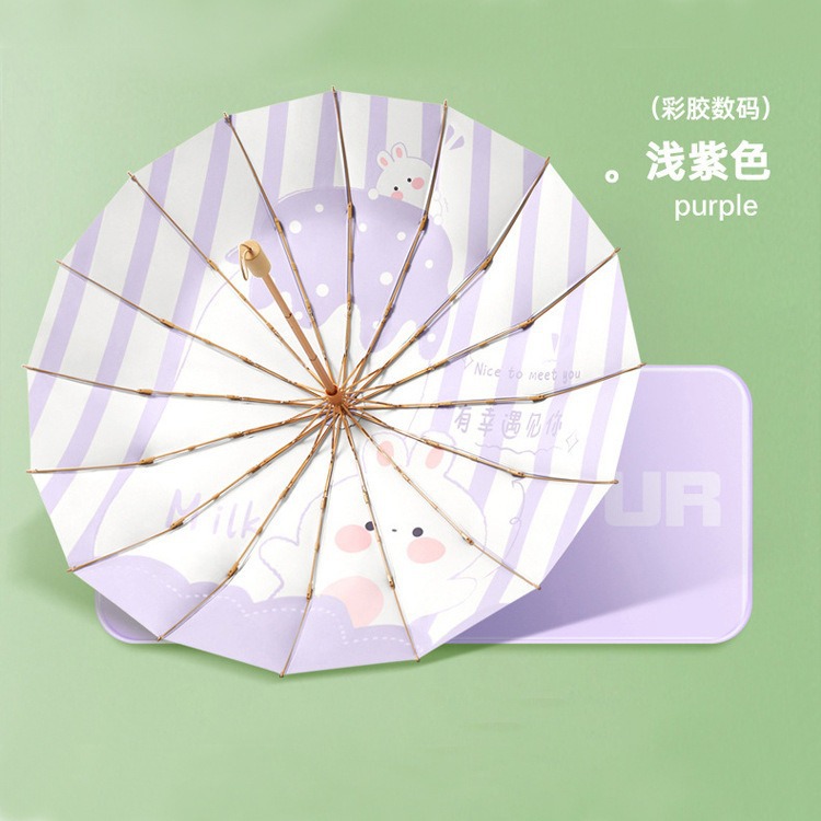 3 배 티타늄 자외선 차단제 16 뼈 접착제 선 스크린 접이식 우산 차양 우산 빈티지 나무 손잡이 선물 우산 공장 재고스토어 가기