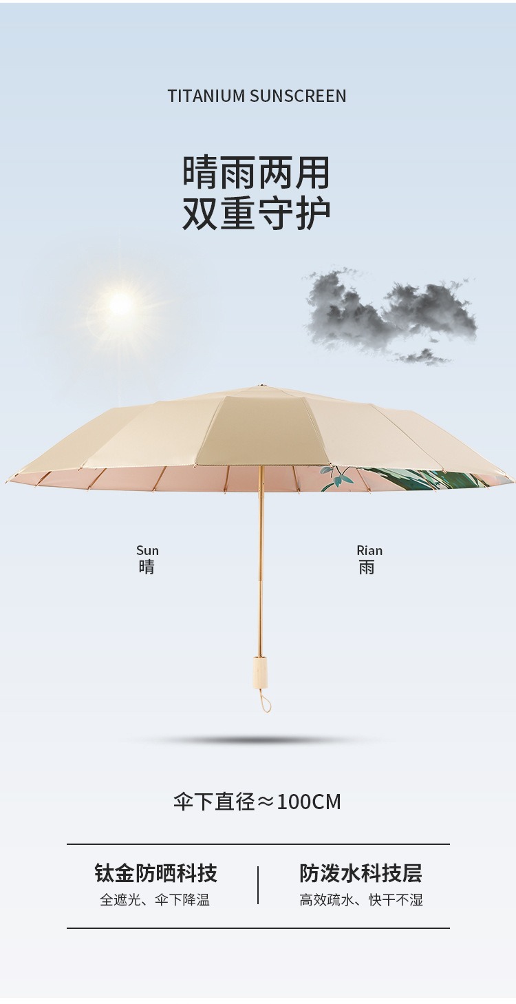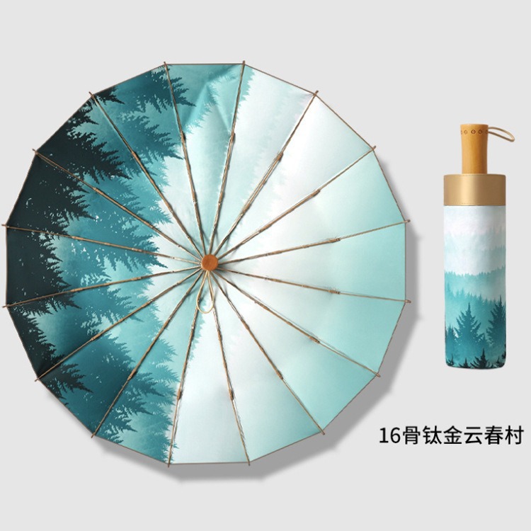 3 배 티타늄 자외선 차단제 16 뼈 접착제 선 스크린 접이식 우산 차양 우산 빈티지 나무 손잡이 선물 우산 공장 재고
