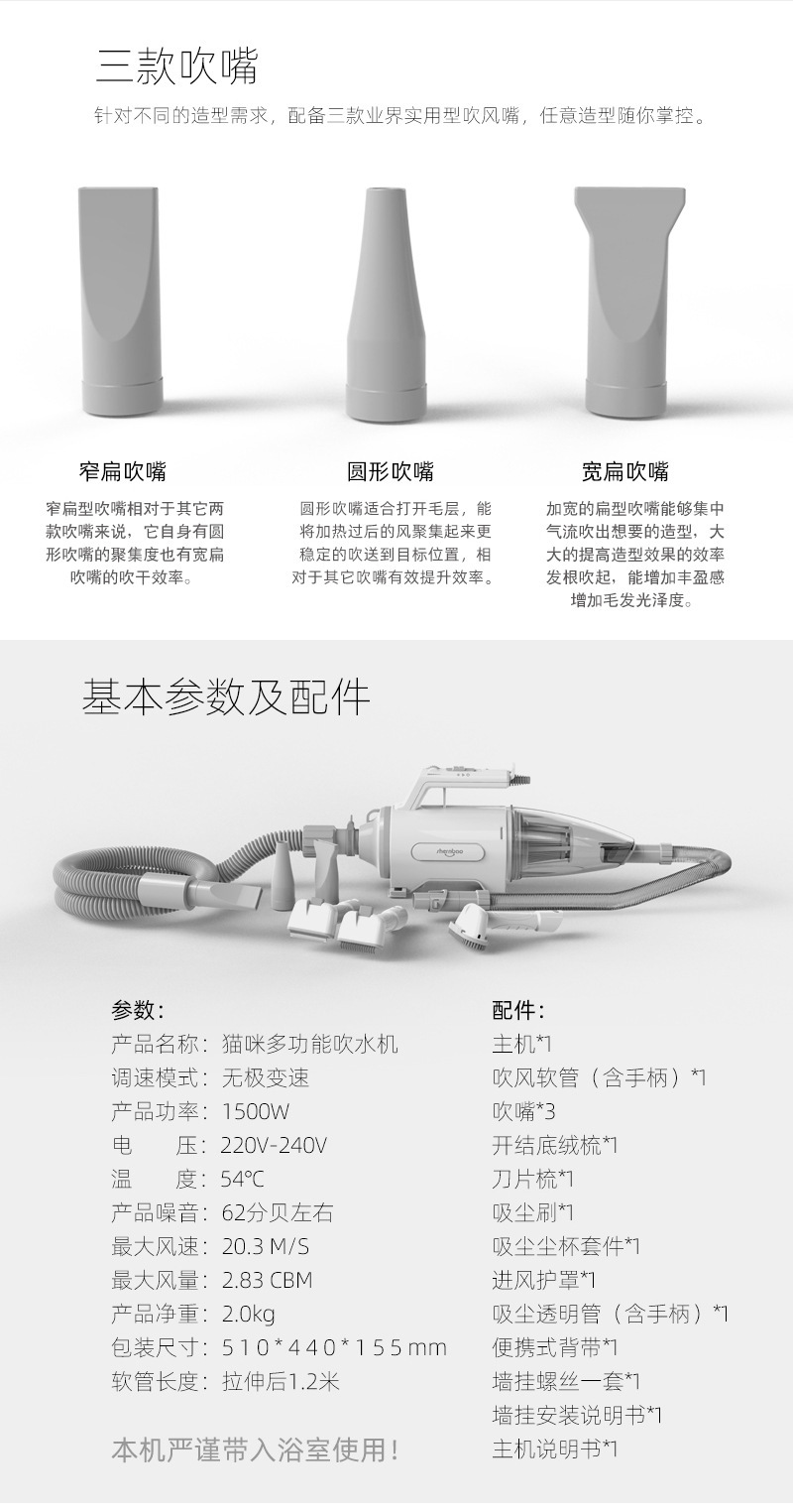 Shenbao 애완 동물 특수 고양이 개 음이온 물 송풍기 저소음 헤어 드라이어 흡입 올인원 기계 부는 머리를 빨 수 있습니다